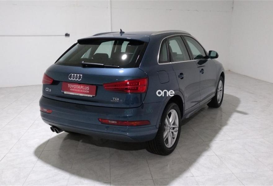 AUDI Q3, Diesel, año 2016, 28000 kilómetros, color Azul metalizado, precio 29500€. El precio publicitado incluye importe de la transferencia. Aceptamos su vehículo anterior como parte del pago.