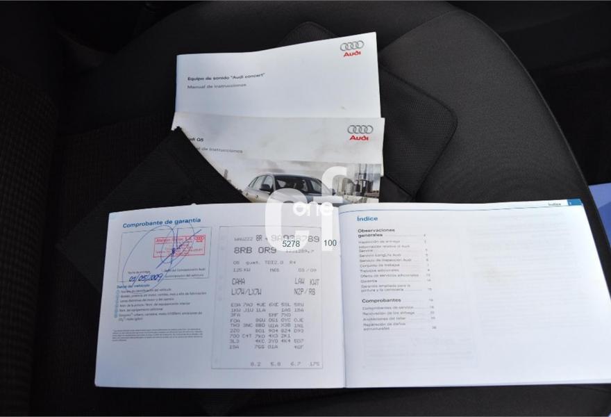 AUDI Q5, Diesel, año 2009, 152000 kilómetros, color Gris / Plata metalizado, precio 16900€. Audi music interface,Reposabrazos central delantero,Control Automático de Velocidad (Tempomat),Control de crucero adaptativo,Espejos retrovisores exteriores antideslumbrantes automáticos, plegables eléctricamente y con función de memoria,Tela Estepa Gris Luz (asientos normales),Sistema de control de presión de los neumáticos,Sensor de luces y lluvia,Espejos retrovisores exteriores antideslumbrantes utomáticos y plegables eléctricamente,Pintura metalizada,Plata Hielo (metalizado),Fijación para asientos infantiles ISOFIX y desactivador airbag del acompañante. Climatizador digital