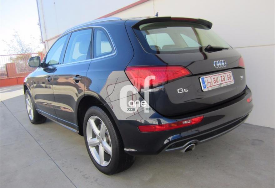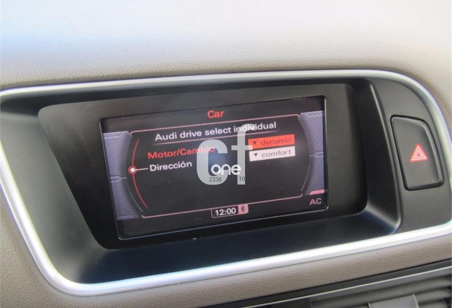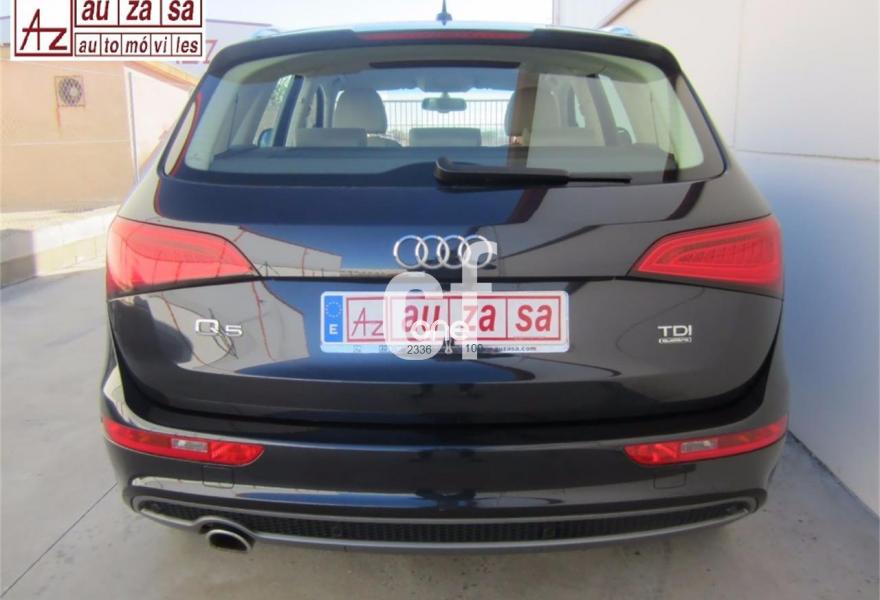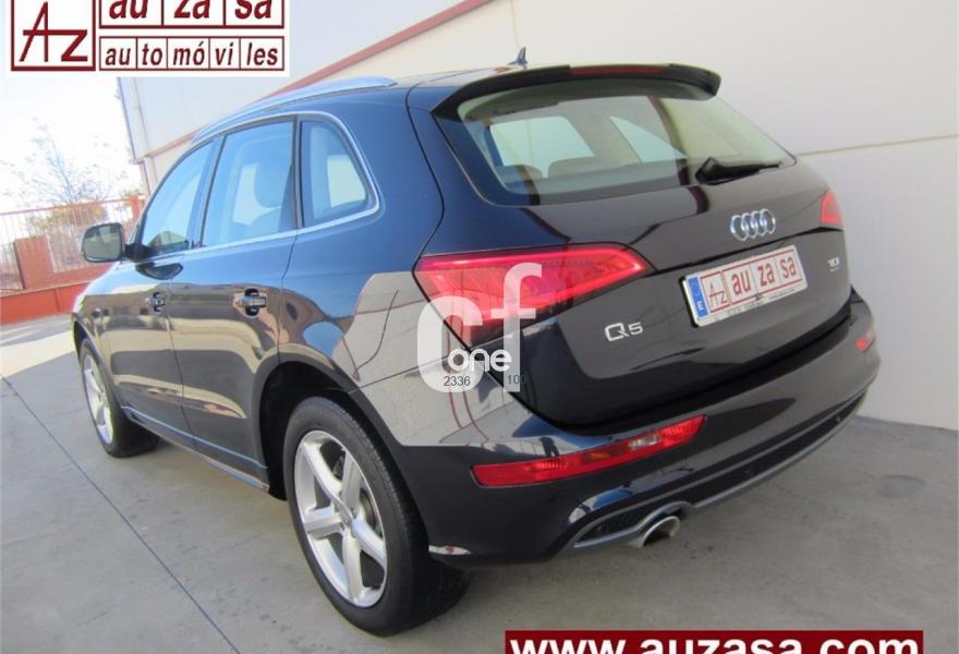 AUDI Q5, Diesel, año 2013, 80000 kilómetros, color Negro metalizado, precio 24600€. Audi drive select,Asientos delanteros con regulación eléctrica,Banqueta trasera plus,Inserciones interiores en aluminio mate cepillado,Audi music interface,Cargador de CD + Reproductor DVD,MMI navegación plus,Teléfono Audi Bluetooth GSM,Climatizador de confort de 3 zonas,Espejo retrovisor interior antideslumbrante automático con sensor de luces y lluvia,Espejos retrovisores exteriores antideslumbrantes automáticos, plegables eléctricamente y con función de memoria,Paquete deportivo S line,Paquete exterior S line,Paquete portaobjetos,Portón del maletero de accionamiento automático,Sistema de alarma antirrobo,Sistema de control de presión de los neumáticos,Techo panorámico de cristal,Espejos retrovisores exteriores antideslumbrantes utomáticos y plegables eléctricamente,Llantas de aleación 8J x 19 diseño de 5 brazos con neumáticos 235/55 R 19 (Audi exclusive),Pintura efecto perla,Pintura metalizada,Airbags laterales traseros,Audi hold assist,Audi parking system APS trasero,Fijación para asientos infantiles ISOFIX y desactivador airbag del acompañante. NACIONAL - Procedente directamente de Concesión oficial AUDI.