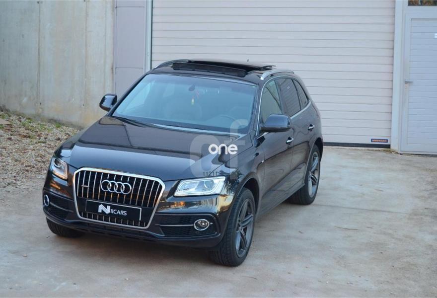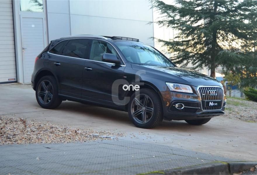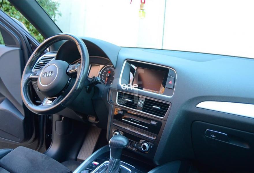 AUDI Q5, Diesel, año 2014, 60000 kilómetros, color Gris / Plata metalizado, precio 35900€. Asientos delanteros calefactables,Inserciones interiores en aluminio mate cepillado,Tapicería de Alcantara perforada/cuero color negro S line,MMI navegación plus,Teléfono Audi Bluetooth GSM con auricular inalámbrico y apoyabrazos central delantero,Espejo retrovisor interior antideslumbrante automático con sensor de luces y lluvia,Paquete deportivo S line,Paquete exterior S line,Portón del maletero de accionamiento automático,Techo panorámico de cristal,Gris Lava (efecto perla),Llantas de aleación 8,5Jx20 diseño 5 radios segmentados en óptica titanio con neumáticos 255/45 R20 (Audi exclusive),Pintura efecto perla,Suspensión deportiva S line,Audi parking system APS delantero y trasero. Impecable,V6 3.0 tdi 245 cv aut. quattro,revisiones en concesionario oficial, historial de mantenimiento,