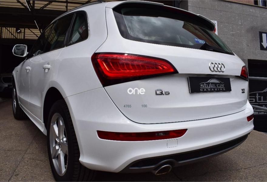 AUDI Q5, Diesel, año 2014, 60000 kilómetros, color Blanco , precio 31950€. Paquete Cuero Milano,Equipo de sonido Audi Sound system,Climatizador de confort de 3 zonas,Cuero Milano Negro - Asientos Confort,Luz adaptativa "dynamic adaptive light",Techo panorámico de cristal,Suspensión deportiva S line,Paquete exterior S line. ¡¡NUEVO HORARIO EN STYLE CAR CANARIAS PARA NUESTROS CLIENTES (NO CERRAMOS A MEDIODÍA)!! --------- Amplias posibilidades de financiación, valoramos su vehículo sin compromiso, disponemos de un amplio stock de vehículos siempre en constante renovación, todos nuestros vehículos están completamente revisados y reacondicionados minuciosamente, antes de llegar a nuestra exposición, trasladamos vehículos a cualquier punto del Archipiélago. Trato profesional con años de experiencia en el sector. Venga a visitarnos a nuestras nuevas instalaciones STYLE CAR CANARIAS, situada C/Diego Vega Sarmiento Nº34 (POLÍGONO INDUSTRIAL MILLER BAJO).