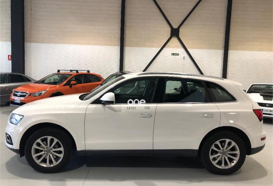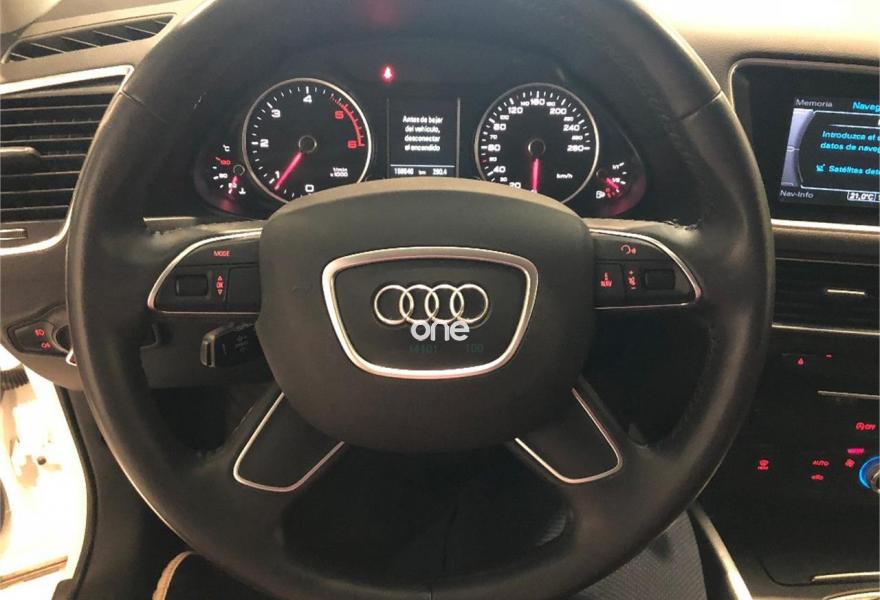 AUDI Q5, Diesel, año 2016, 150000 kilómetros, color Blanco , precio 27100€. Sistema de alarma antirrobo+llave confort,Inserciones interiores en aluminio mate cepillado,Pomo de la palanca de cambio manual en aluminio,Revestimiento interior del techo en Negro,Tapicería en tela Estepa,MMI navegación,Preinstalación de teléfono móvil con kit manos libres (Bluetooth),Teléfono Audi Bluetooth GSM,Compartimento portaobjetos bajo el suelo del maletero,Espejos retrovisores exteriores antideslumbrantes automáticos, plegables eléctricamente y con función de memoria,Set fijación para el maletero,Blanco Ibis,Espejos retrovisores exteriores antideslumbrantes automáticos y plegables eléctricamente,Pintura Blanco Ibis,Audi parking system APS delantero y trasero,Control de crucero adaptativo,Fijación para asientos infantiles ISOFIX y desactivador airbag del acompañante.