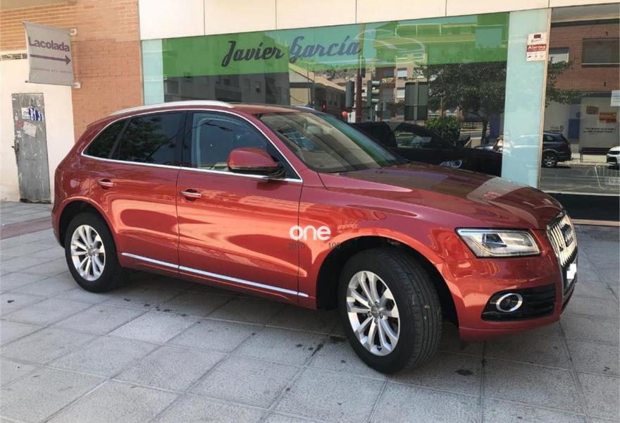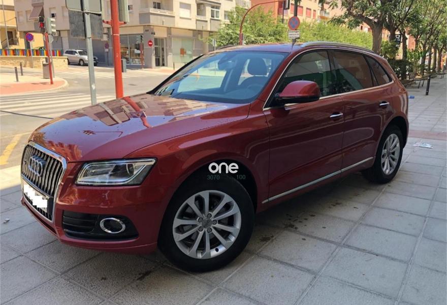 AUDI Q5, Diesel, año 2015, 62000 kilómetros, color Granate , precio 29900€. Sensores de aparcamiento, cambio de carril, climatizador bi-zona, función Start-Stop, radio cD, bluetooth, volante multifunción, navegador con pantalla, elevalunas eléctricos, cierre centralizado, llantas de aleación, freno de mano eléctrico, lunas traseras tintadas, interior en perfecto estado, chapa y pintura impecable, todas las revisiones al día.