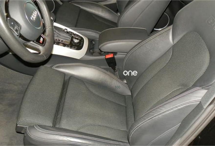Tapicería tela sprint/cuero negro (Sólo con S Line) Parte central del asiento y revestimiento del panel central de las puertas en tela Sprint, los laterales del asiento en cuero, logotipo S line estampado en el respaldo de los asientos delanteros, 528€