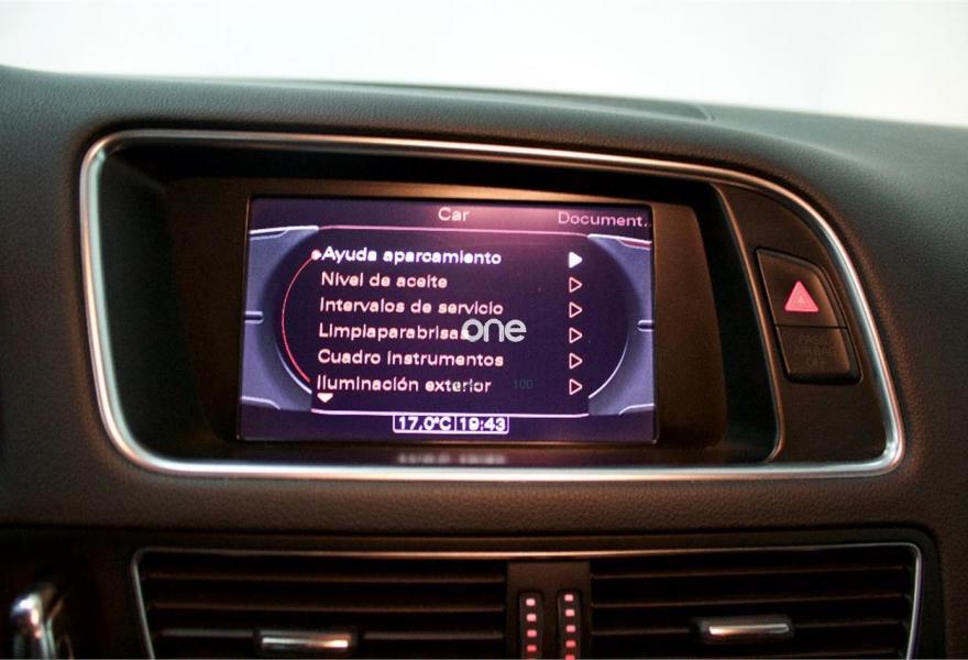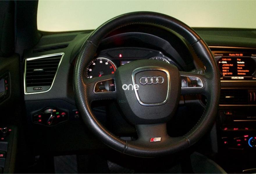 AUDI Q5, Gasolina, año 2011, 89999 kilómetros, color Gris / Plata metalizado, precio 18999€. Alfombrilla reversible para el suelo del maletero (Velours/goma),Asiento acompañante abatible,Asiento del conductor con regulación eléctrica,Asientos delanteros con regulación eléctrica,Asientos delanteros con regulación lumbar eléctrica,Banqueta trasera plus,Paquete Cuero Milano,Tapicería de cuero plus Audi exclusive con asientos deportivos,Cargador de CD + Reproductor DVD,Volante de cuatro radios multifuncional con levas para el cambio multitronic/tiptronic,Teléfono Audi Bluetooth GSM,Alcantara / Cuero Negro - Costuras Negro (S line),Audi exclusive line,Control de crucero adaptativo,Espejo retrovisor interior antideslumbrante automático con sensor de luces y lluvia,Lavafaros,MMI navegación,Posavasos climatizado,Paquete exterior S line,Gris Cuarzo (metalizado),Llantas de aleación 8J x 18 diseño de 10 radios "Diseño-V" con neumáticos 235/60 R 18,Suspensión deportiva S line. VEHICULO NACIONAL DE DICIEMBRE DE 2010