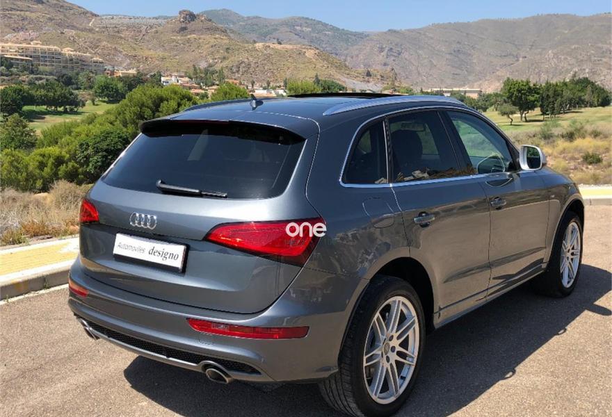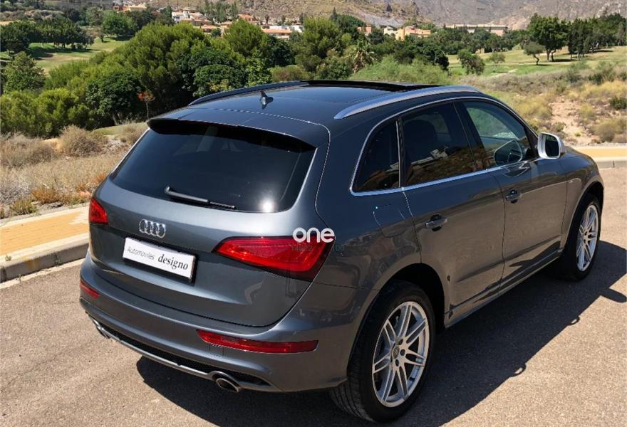 AUDI Q5, Diesel, año 2013, 135000 kilómetros, color Gris / Plata (PLOMO) metalizado, precio 27999€. Audi drive select,Audi side assist + Audi lane assist,Paquete de Asistencia,Alfombrillas en color especial Audi exclusive,Asientos delanteros calefactables,Asientos delanteros con regulación eléctrica,Cúpula del cuadro de instrumentos en cuero con costuras en contraste,Inserciones Audi exclusive,Inserciones en madera de raíz de nogal marrón brillante,Revestimiento interior del techo en Alcantara negro con costuras de contraste Audi exclusive,Tapicería de Alcantara perforada/cuero color negro S line,Tapicería de cuero Audi exclusive cuero Valcona con asientos confort climatizados,Tapicería de Alcantra/cuero Audi exclusive con asientos deportivos,Tapicería de cuero napa Audi exclusive con asientos deportivos,Tapicería de cuero Nappa Audi exclusive S line,Tapicería de cuero plus napa Audi exclusive con asientos deportivos,Audi music interface,Cargador de CD's,Equipo de sonido Bang & Olufsen,MMI navegación,MMI navegación plus,Volante deportivo de tres radios multifuncional,Control de crucero adaptativo,Cuero Milano Marrón Castaño - Asientos Confort,Cuero Napa Marrón Castaño - Asientos deportivos,Dirección dinámica,Elementos de control en cuero Audi exclusive,Espejo retrovisor interior antideslumbrante automático con sensor de luces y lluvia,Espejos retrovisores exteriores antideslumbrantes automáticos, plegables eléctricamente y con función de memoria,Faros inteligentes "smart beam",Paquete deportivo S line,Llave de confort "advanced key",Paquete exterior S line,Portón del maletero de accionamiento automático,Set fijación para el maletero,Sistema de alarma antirrobo,Sistema de control de presión de los neumáticos,Techo panorámico de cristal,Cristales tintados oscuros,Espejos retrovisores exteriores antideslumbrantes utomáticos y plegables eléctricamente,Gris Daytona (efecto perla),Llantas de aleación 8,5J x 20 diseño de 5 brazos antracita pulidas parcialmente con neumáticos 245 / 45 R 20,Marrón Maya (metalizado),Pintura metalizada,Pintura gris Daytona efecto perla Audi exclusive,Amortiguación regulable "damper control",Volante deportivo de tres radios multifuncional con levas para el cambio S tronic,Suspensión deportiva S line,Airbags laterales traseros,Fijación para asientos infantiles ISOFIX y desactivador airbag del acompañante,Audi parking system APS delantero y trasero con cámara de visión trasera. AUDI Q5 3.0 TDI 245CV EXCLUSIVO, RESTILING,PAQUETE AERODINAMICO S LINE INTERIOR E EXTERIOR,LLANTA 20 S LINE,TECHO PANORAMICO ABATIBLE,PORTON TRASERO ELECTRICO,FAROS BIXENON DIRECIONABLES CON LED Y LARGAS AUTOMATICAS,PARTRONIC DELANTERO Y TRASERO CON CAMARA DE VISION TRASERA,ASIENTOS EN CUERO EXCLUSIVO MARRON CON COSTURA BEIG ELECTRICOS Y CALEFACTABLES,APERTURA Y ARRANQUE SIN LLAVE,SONIDO BANG Y OLUFSEN,SISTEMA AUDI DRIVER SELECT,CAMBIO AUTOMATICO S TRONIC CON LEVAS TIPO F1,ESPEJOS ABATIBLES FOTOSENSIBLES,VELOCIDAD DE CRUCERO,NAVEGACION EN 3D,SISTEMA AYUDA A LA CUESTA,ABSOLUTAMENTE TODOS LOS EXTRAS POSIBLES,VEHICULO EN UNAS CONDICIONE ESPECTACULARES DE RESTRENO,SE ENTREGA TRASFERIDO GARANTIZADO Y A CUALQUIER PUNTO DE ESPAÑA.