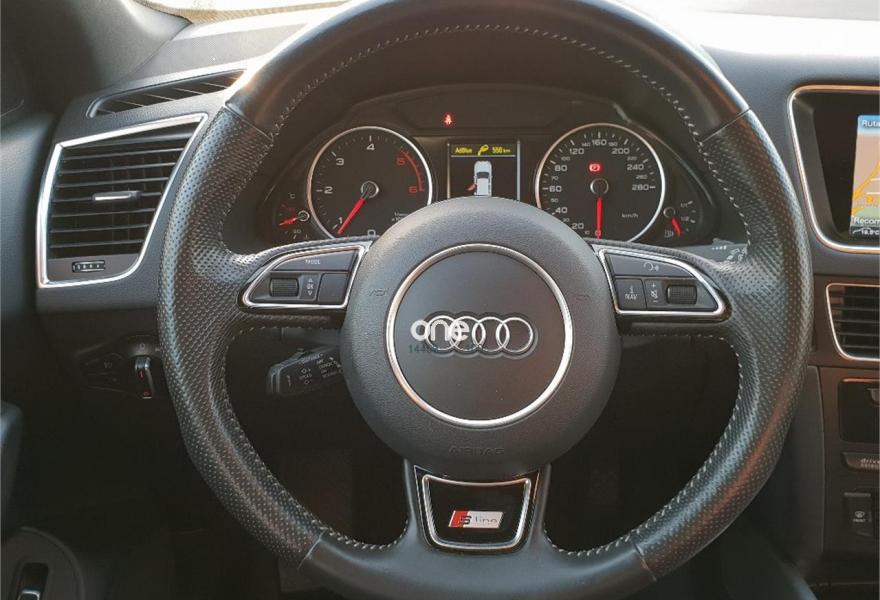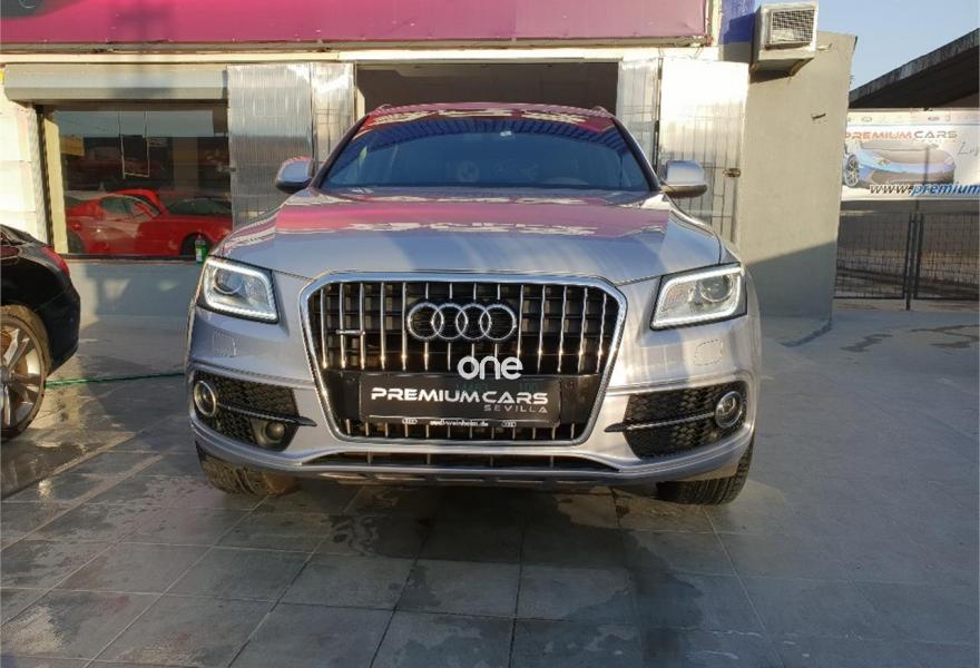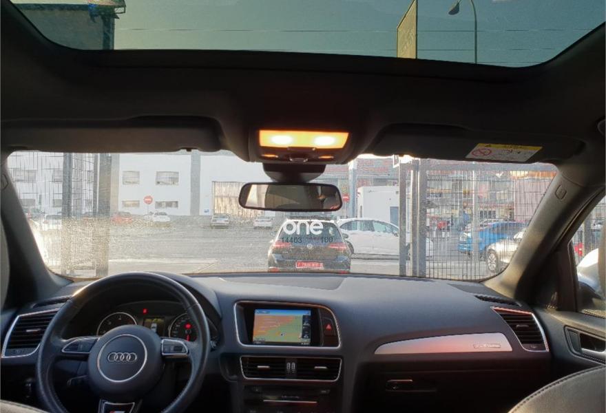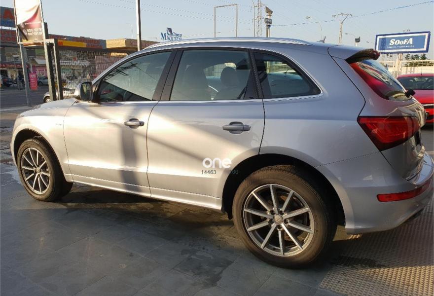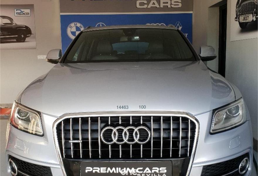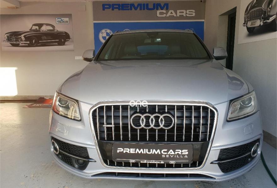 AUDI Q5, Diesel, año 2014, 83000 kilómetros, color Gris / Plata metalizado, precio 27999€. Audi drive select,Audi side assist + Audi lane assist,Paquete de Asistencia,Asiento del conductor con regulación eléctrica,Asientos delanteros calefactables,Banqueta trasera plus,Inserciones Audi exclusive,Inserciones en aluminio Dimension,Inserciones en lacado piano negro,Inserciones interiores en aluminio mate cepillado,Paquete Cuero Napa,Paquete Sport Alcantara,Pomo de la palanca de cambio manual en aluminio,Revestimiento interior del techo en Negro,Tapicería de Alcantara perforada/cuero color negro S line,Tapicería de Alcantra/cuero Audi exclusive con asientos deportivos,Audi music interface,Cargador de CD + Reproductor DVD,Cargador de CD's,MMI navegación,MMI navegación plus,Preinstalación de teléfono móvil con kit manos libres (Bluetooth),Radio digital DAB,Radio Symphony,Receptor de TV analógico y digital y radio digital(DAB),Volante deportivo de tres radios multifuncional,Alcantara / Cuero Negro - S line,Aro del volante en cuero Audi exclusive,Compartimento portaobjetos bajo el suelo del maletero,Control de crucero adaptativo,Dirección dinámica,Elementos de control en cuero Audi exclusive,Espejo retrovisor interior antideslumbrante automático con sensor de luces y lluvia,Espejos retrovisores exteriores antideslumbrantes automáticos, plegables eléctricamente y con función de memoria,Llave de confort "advanced key",Luz adaptativa "dynamic adaptive light",Paquete Cuero 1,Paquete Cuero 2,Paquete deportivo S line,Paquete exterior S line,Paquete portaobjetos,Portón del maletero de accionamiento automático,Posavasos climatizado,Sistema de alarma antirrobo,Techo panorámico de cristal,Gris Daytona (efecto perla),Llantas de aleación ligera 8,5J x 20 diseño de 7 radios dobles con neumáticos 255/45 R 20 (Audi exclusive),Pintura metalizada,Pintura gris Daytona efecto perla Audi exclusive,Suspensión deportiva S line,Audi hold assist,Audi parking system APS delantero y trasero,Audi parking system APS trasero,Fijación para asientos infantiles ISOFIX y desactivador airbag del acompañante.