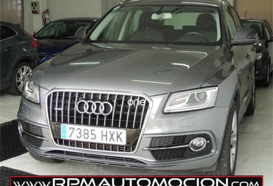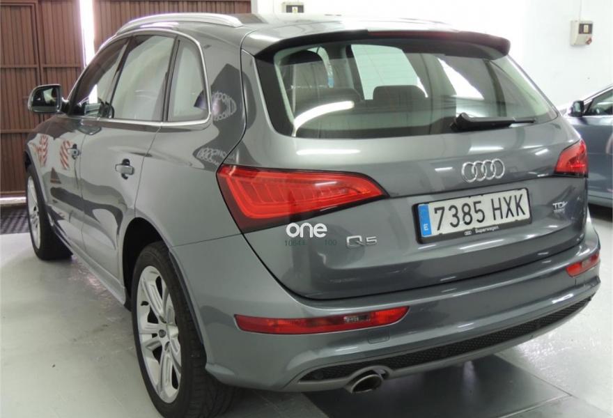 AUDI Q5, Diesel, año 2014, 101000 kilómetros, color Gris / Plata (Gris lava (efecto perla)) metalizado, precio 22990€. Audi drive select,Asientos delanteros con regulación eléctrica,Banqueta trasera plus,Espejos retrovisores exteriores antideslumbrantes automáticos, plegables eléctricamente y con función de memoria,Paquete exterior S line,Tela Micron Negro - Asientos Deportivos,Gris Lava (efecto perla),Llantas de aleación 8,5Jx20 diseño 5 radios dobles offroad con neumáticos 255/45 R20 (Audi exclusive),Tornillos antirrobo ruedas,Audi parking system APS trasero,Fijación para asientos infantiles ISOFIX y desactivador airbag del acompañante. Matriculado en 05/2014, NACIONAL, con 101000km GARANTIZADOS, UN SOLO PROPIETARIO y con mantenimiento al día.