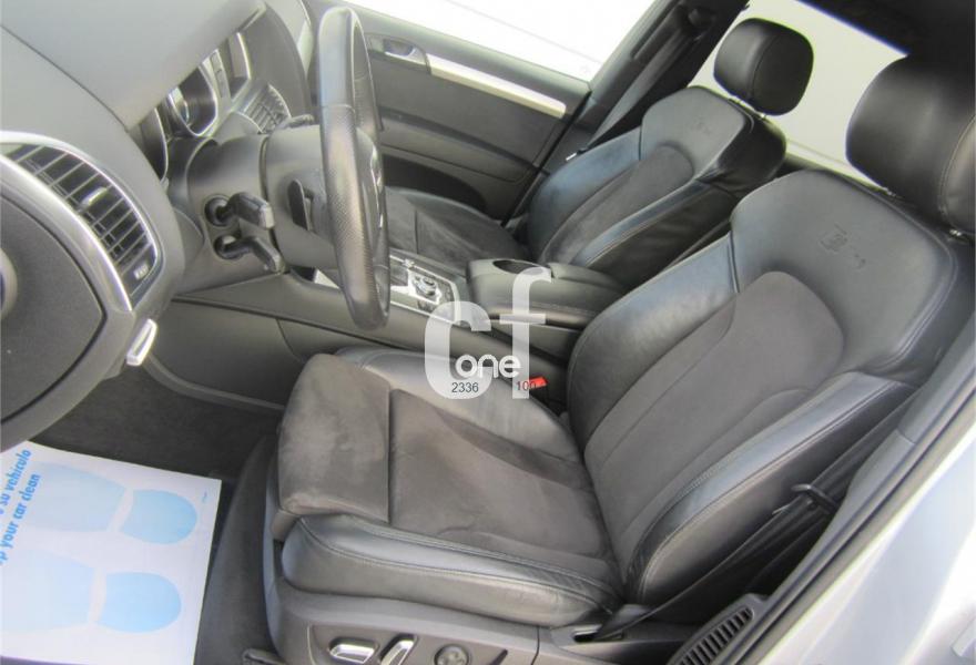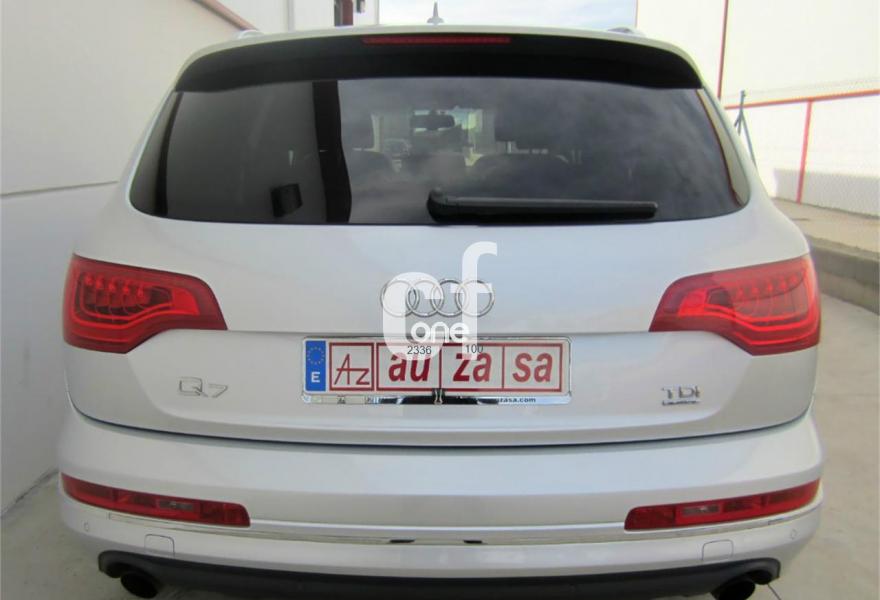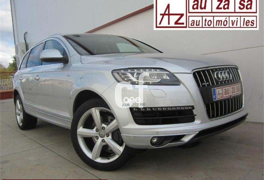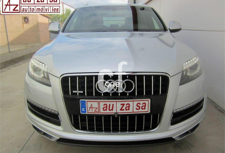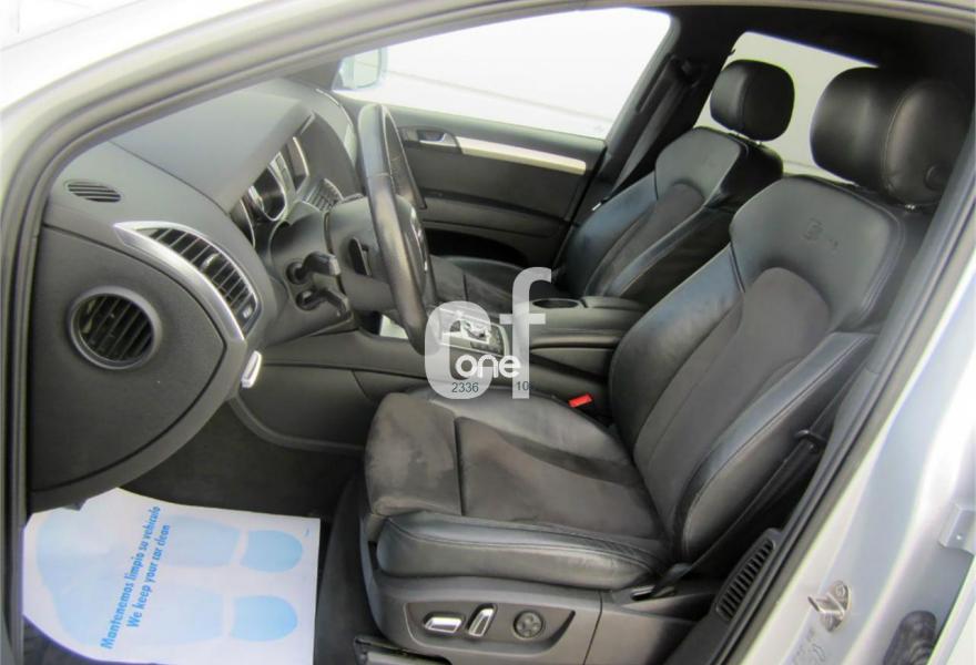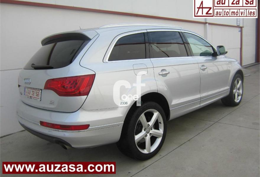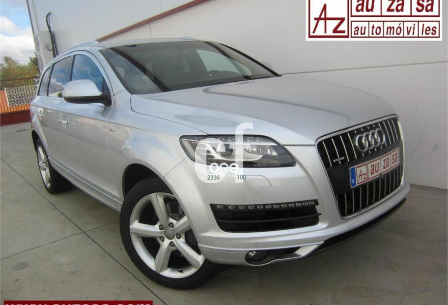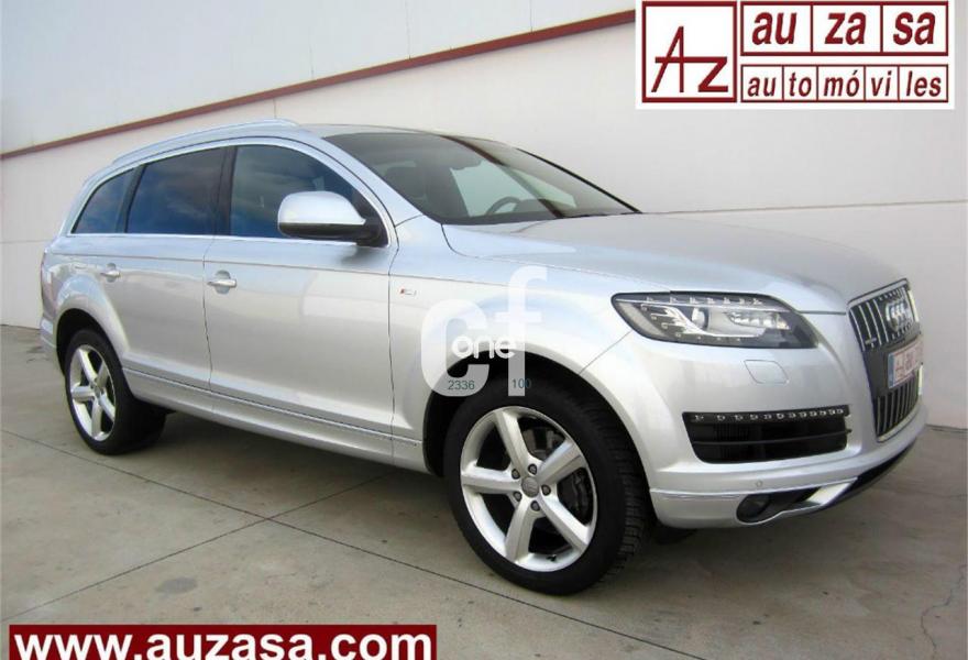 AUDI Q7, Diesel, año 2011, 115000 kilómetros, color Gris / Plata (S-LINE) metalizado, precio 30500€. Cristales con laminado doble y tintado oscuro,Asientos delanteros calefactables,Inserciones interiores en aluminio cepillado mate,Regulación longitudinal 2ª fila de asientos,Tapicería de cuero Verano color negro S line,Intercambiador de CD,MMI Navigation con DVD,MMI Navigation plus,Preinstalación de teléfono móvil con kit de manos libres (Bluetooth) en el apoyabrazos central delantero de confort,Radio Digital DAB,Teléfono Audi Bluetooth GSM,Alcantara/Cuero Negro - Asientos Deportivos - Moqueta Velours,Control de presión de los neumáticos,Nevera,Paquete cuero,Paquete portaobjetos,Retrovisor interior con regulación anti-deslumbramiento automática con brújula,Retrovisores exteriores plegables eléctricamente con función memoria,3ª fila de asientos en cuero (7 plazas),Espejos retrovisores exteriores antideslumbrantes automáticos y plegables eléctricamente,Paquete exterior S line,Llantas de aleación 9J x 20 diseño de 5 brazos en óptica titanio con neumáticos 275/45 R 20 (Audi exclusive),Pintura metalizada,Audi parking system plus,Fijación para asientos infantiles ISOFIX y desactivador del airbag del acompañante. Como nuevo - PROCEDENTE DIRECTAMENTE DE RED OFICIAL AUDI ESPAÑA.