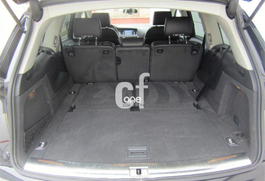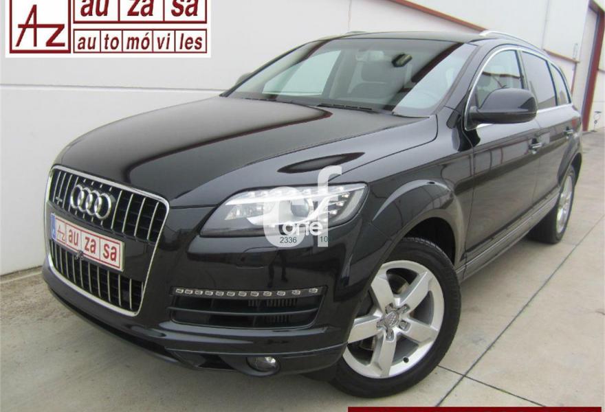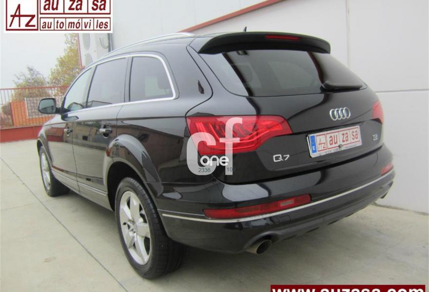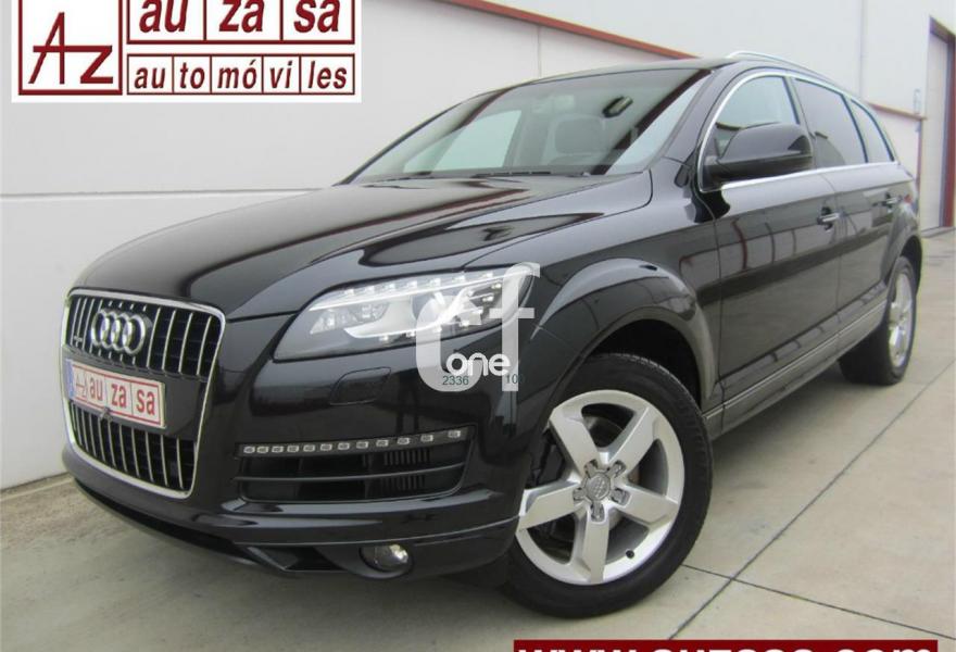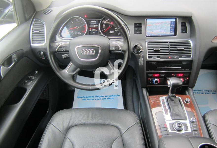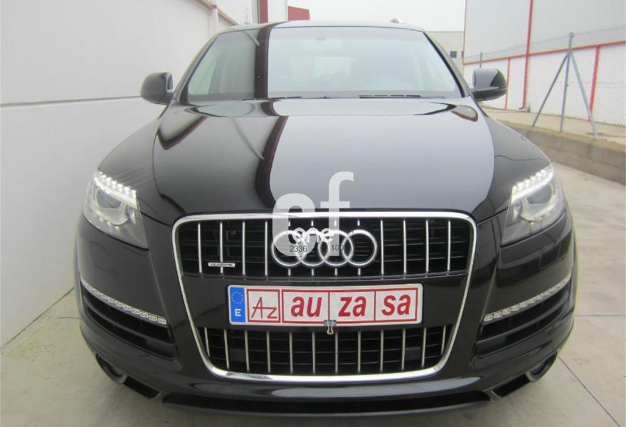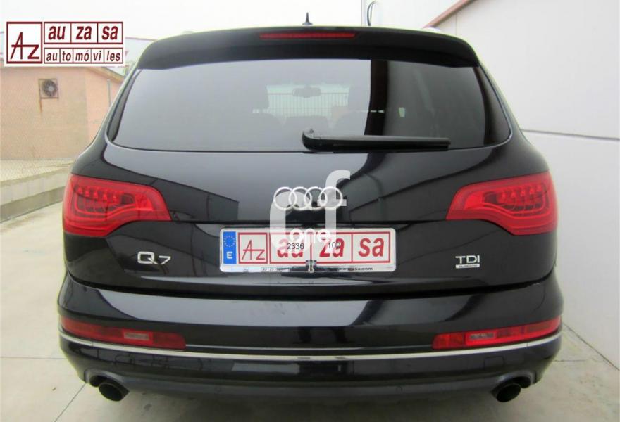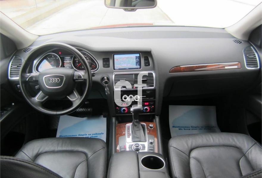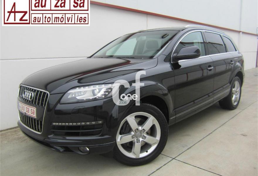 AUDI Q7, Diesel, año 2012, 131000 kilómetros, color Negro metalizado, precio 32900€. Inserciones en madera Audi exclusive,Regulación longitudinal 2ª fila de asientos,Intercambiador de CD con MMI navegación plus,MMI navegación 3G plus,MMI navegación con DVD,Preinstalación de teléfono móvil con kit de manos libres (Bluetooth) en el apoyabrazos central delantero de confort,Radio Digital DAB,3ª fila de asientos en cuero (7 plazas),Climatizador de confort de cuatro zonas,Control de presión de los neumáticos,Cortinilla manual en luneta posterior y en las ventanillas traseras,Faros inteligentes "smart beam",Nevera,Paquete cuero advanced,Paquete portaobjetos,Portón del maletero de accionamiento automático,Cristales con laminado doble,Cristales tintados oscuros,Espejos retrovisores exteriores antideslumbrantes automáticos y plegables eléctricamente,Pintura metalizada,Audi parking system plus,Fijación para asientos infantiles ISOFIX y desactivador del airbag del acompañante,Suspensión neumática adaptativa con tarado Sline. TOTALMENTE NUEVO. RE-ESTRENO AUDI. Nacional.