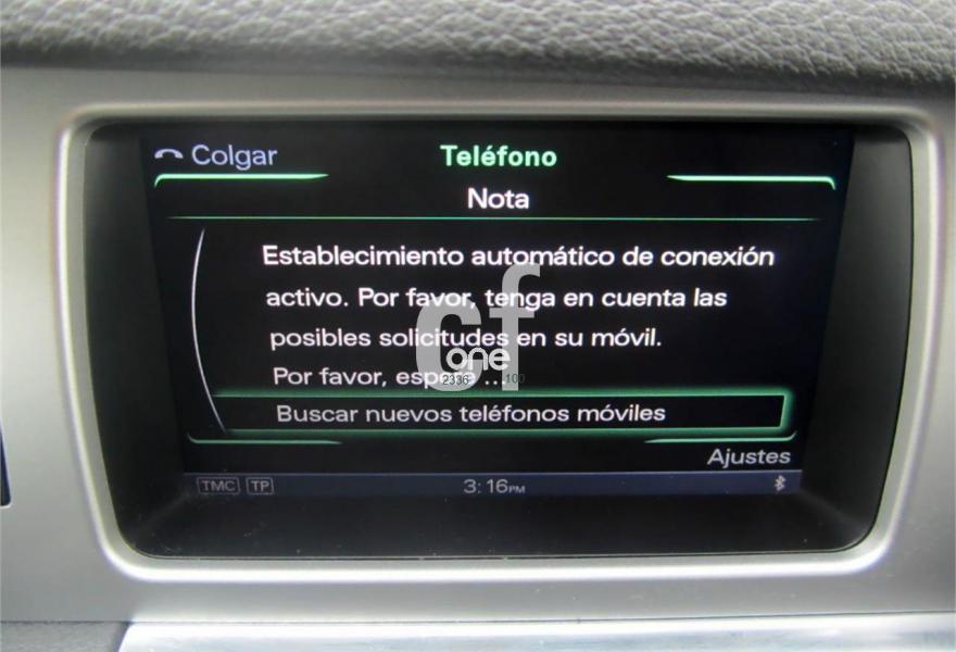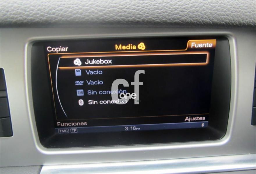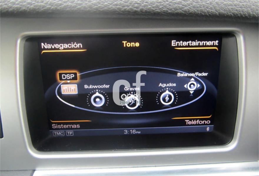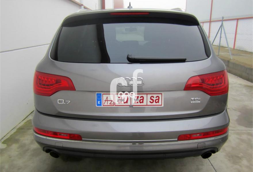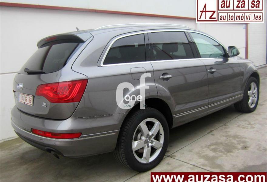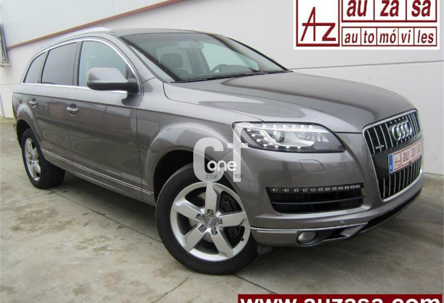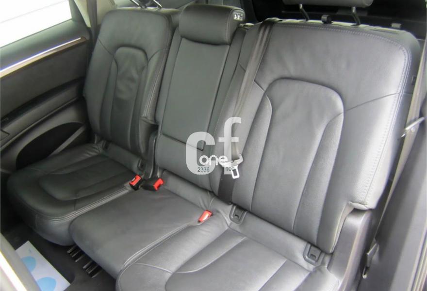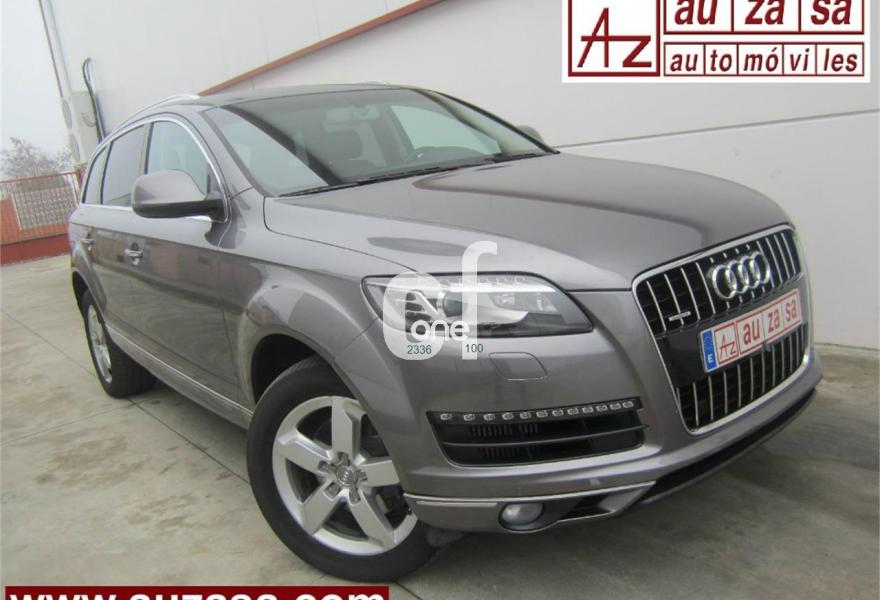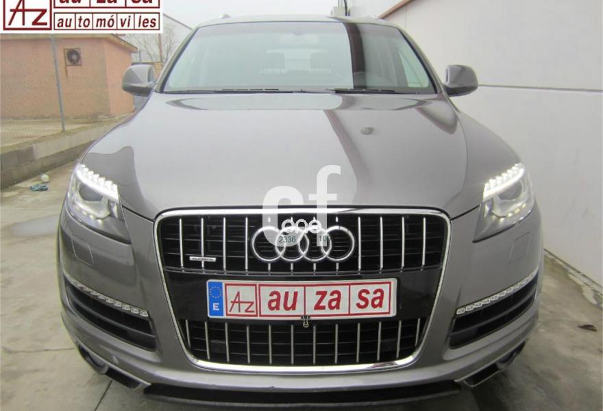AUDI Q7, Diesel, año 2012, 114000 kilómetros, color Gris / Plata (GRIS PLOMO metalizado) metalizado, precio 32900€. Cristales con laminado doble y tintado oscuro,Inserciones en madera Audi exclusive,Regulación longitudinal 2ª fila de asientos,Equipo audiovisual "RSE Plus",Equipo audiovisual "RSE" para asientos traseros,Intercambiador de CD con MMI navegación plus,MMI navegación 3G plus,MMI navegación con DVD,Preinstalación de teléfono móvil con kit de manos libres (Bluetooth) en el apoyabrazos central delantero de confort,Radio Digital DAB,Teléfono Audi Bluetooth GSM,3ª fila de asientos en cuero (7 plazas),Climatizador de confort de cuatro zonas,Control de presión de los neumáticos,Cortinilla manual en luneta posterior y en las ventanillas traseras,Faros inteligentes "smart beam",Luz adaptativa "dynamic adaptive light",Paquete cuero advanced,Paquete portaobjetos,Portón del maletero de accionamiento automático,Preparación para equipo Rear Seat Enterntainment,Espejos retrovisores exteriores antideslumbrantes automáticos y plegables eléctricamente,Pintura metalizada,Audi parking system plus con cámara visión trasera,Fijación para asientos infantiles ISOFIX y desactivador del airbag del acompañante. Nuevo MOTOR 245 cv MOD.2012. (Mejor Motor + menor consumo)