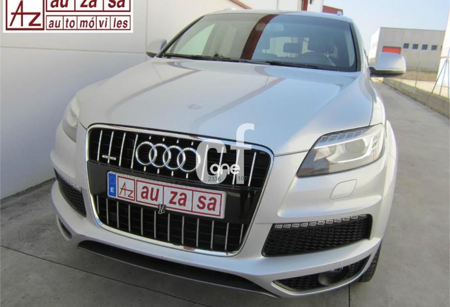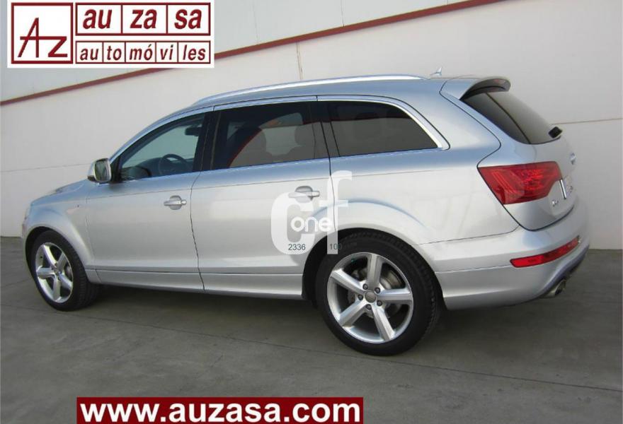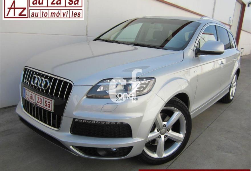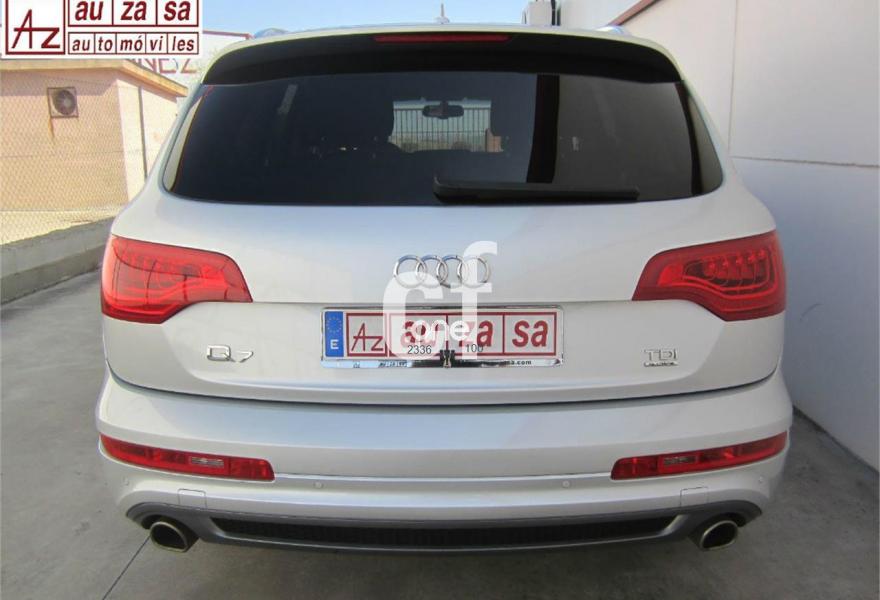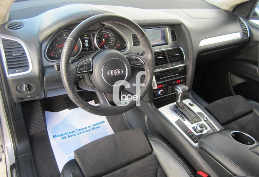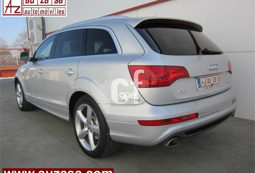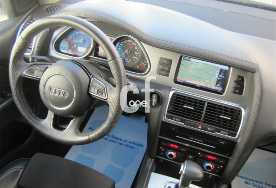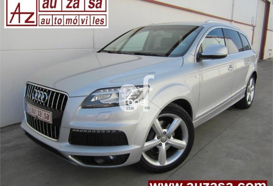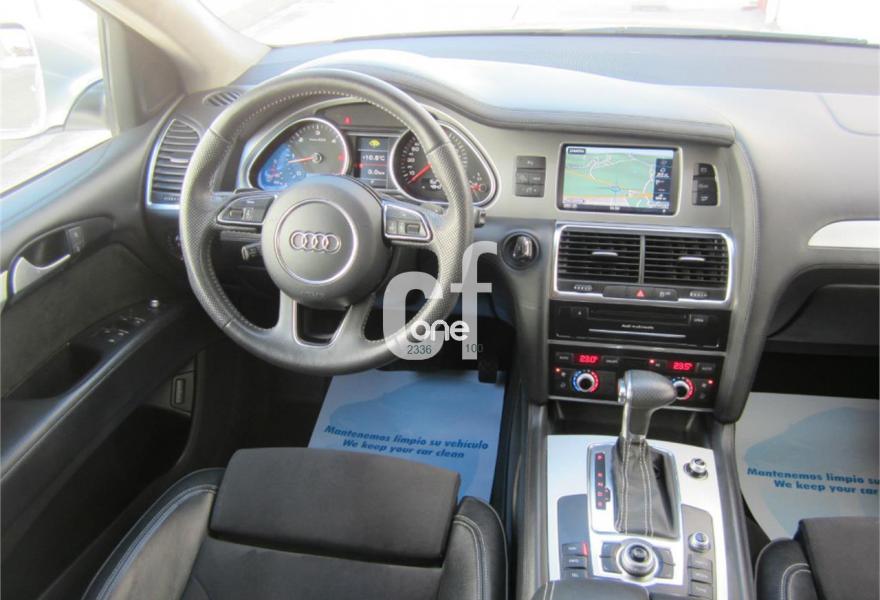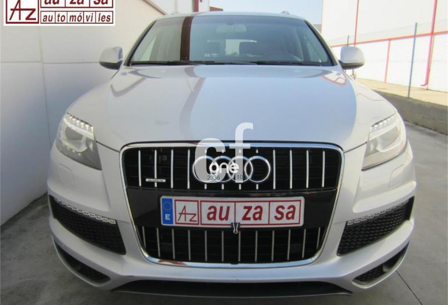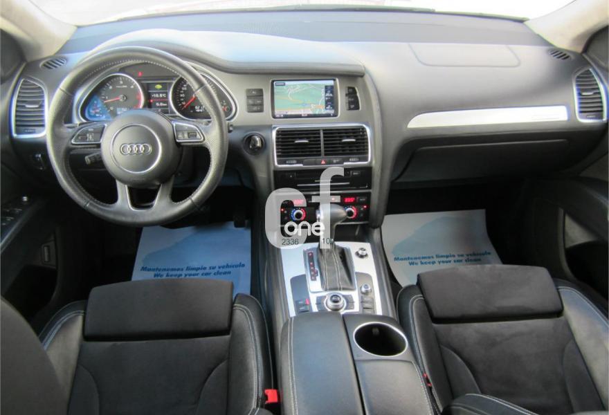 AUDI Q7, Diesel, año 2013, 48000 kilómetros, color Gris / Plata (S-Line PLUS + Susp.Neumática) metalizado, precio 37600€. Cristales con laminado doble y tintado oscuro,Paquete Premium,Parasoles dobles de confort,Regulación longitudinal 2ª fila de asientos,Revestimiento interior del techo en Alcantara color negro con costuras de contraste,Tapicería de cuero Verano color negro S line,MMI navegación 3G plus,Teléfono Audi Bluetooth GSM,3ª fila de asientos en cuero (7 plazas),Alcantara/Cuero Negro - Asientos Deportivos - Moqueta Velours,Climatizador de confort de cuatro zonas,Control de presión de los neumáticos,Cortinilla manual en luneta posterior y en las ventanillas traseras,MMI navegación,Nevera,Paquete cuero advanced,Paquete exterior S line,Paquete portaobjetos,Preinstalación de teléfono móvil con kit de manos libres (Bluetooth) en el apoyabrazos central delantero de confort,Cristales tintados oscuros,Espejos retrovisores exteriores antideslumbrantes automáticos y plegables eléctricamente,Llantas de aleación 9J x 20 diseño de 5 brazos en óptica titanio con neumáticos 275/45 R 20 (Audi exclusive),Pintura metalizada,Suspensión neumática adaptativa con tarado Sline,Audi parking system plus,Fijación para asientos infantiles ISOFIX y desactivador del airbag del acompañante. TOTALMENTE NUEVO.