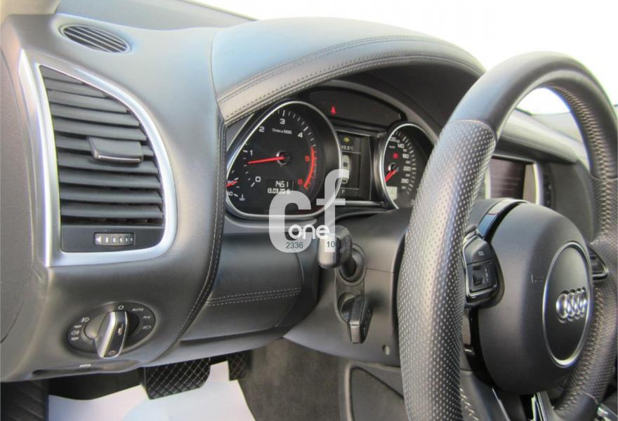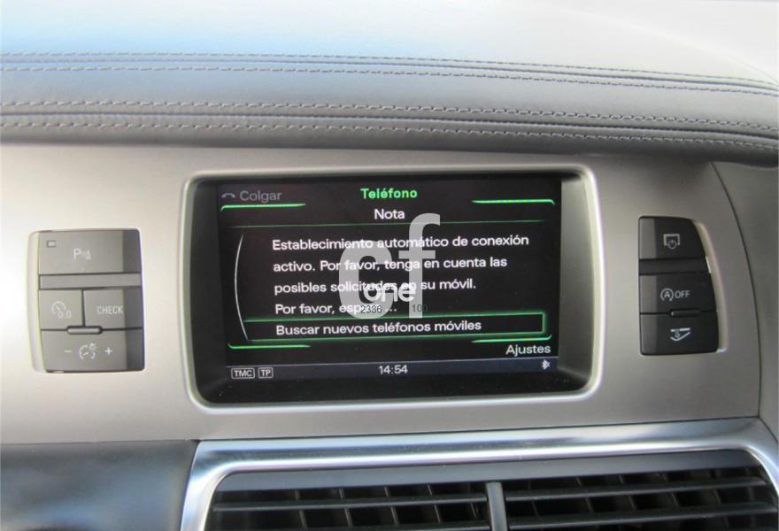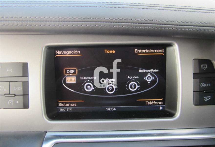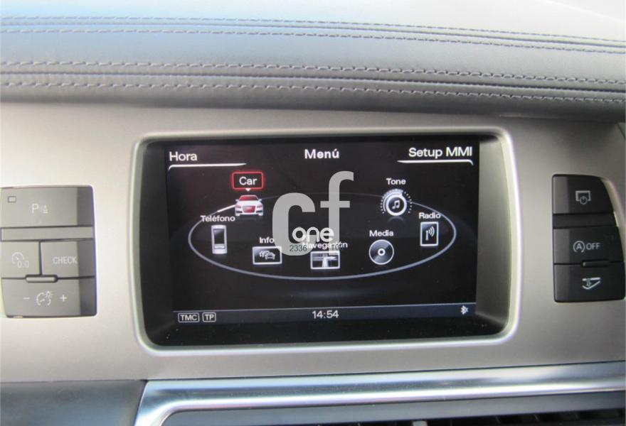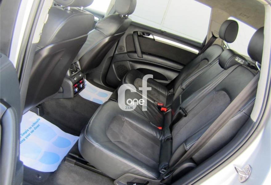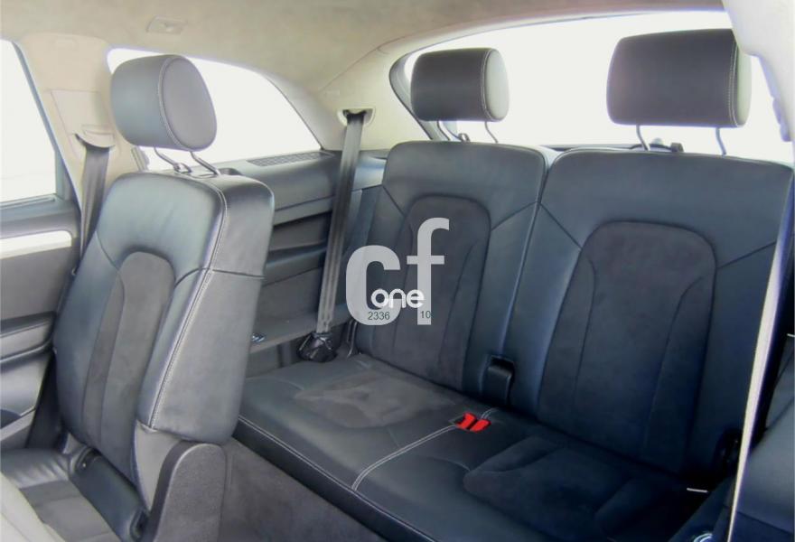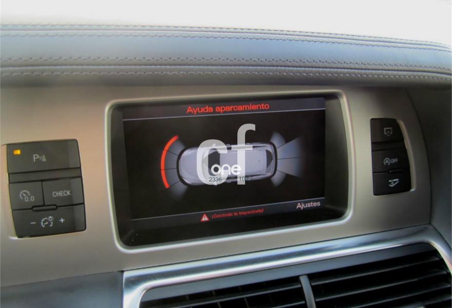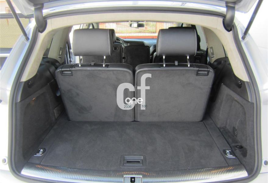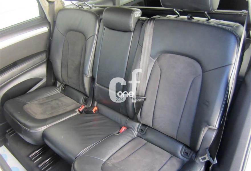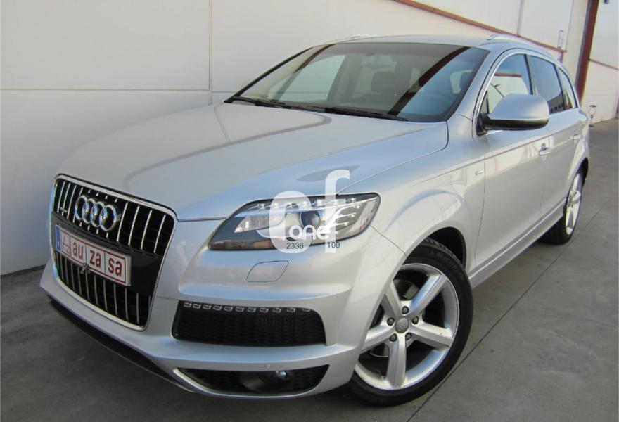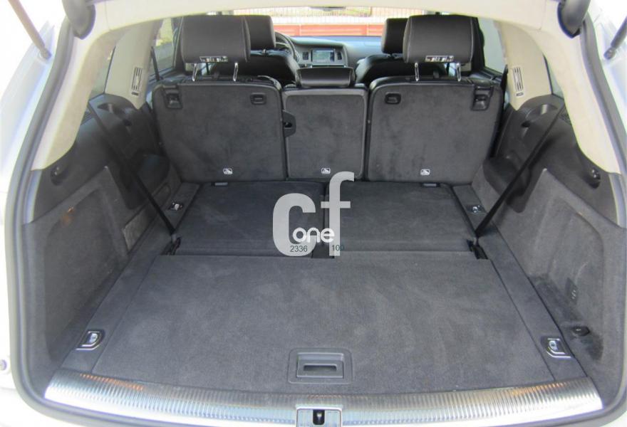 AUDI Q7, Diesel, año 2013, 48000 kilómetros, color Gris / Plata (S-Line PLUS + Susp.Neumática) metalizado, precio 37600€. Cristales con laminado doble y tintado oscuro,Paquete Premium,Parasoles dobles de confort,Regulación longitudinal 2ª fila de asientos,Revestimiento interior del techo en Alcantara color negro con costuras de contraste,Tapicería de cuero Verano color negro S line,MMI navegación 3G plus,Teléfono Audi Bluetooth GSM,3ª fila de asientos en cuero (7 plazas),Alcantara/Cuero Negro - Asientos Deportivos - Moqueta Velours,Climatizador de confort de cuatro zonas,Control de presión de los neumáticos,Cortinilla manual en luneta posterior y en las ventanillas traseras,MMI navegación,Nevera,Paquete cuero advanced,Paquete exterior S line,Paquete portaobjetos,Preinstalación de teléfono móvil con kit de manos libres (Bluetooth) en el apoyabrazos central delantero de confort,Cristales tintados oscuros,Espejos retrovisores exteriores antideslumbrantes automáticos y plegables eléctricamente,Llantas de aleación 9J x 20 diseño de 5 brazos en óptica titanio con neumáticos 275/45 R 20 (Audi exclusive),Pintura metalizada,Suspensión neumática adaptativa con tarado Sline,Audi parking system plus,Fijación para asientos infantiles ISOFIX y desactivador del airbag del acompañante. TOTALMENTE NUEVO.