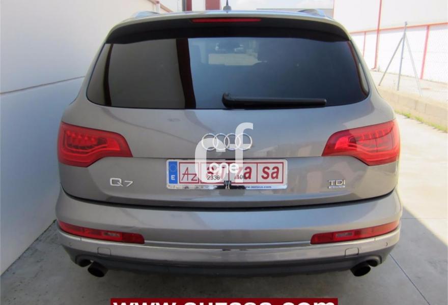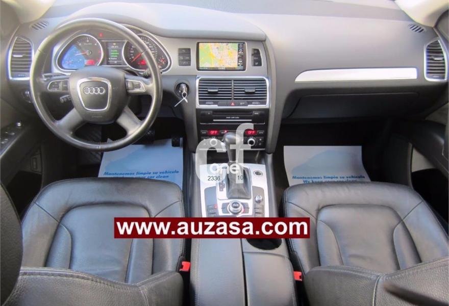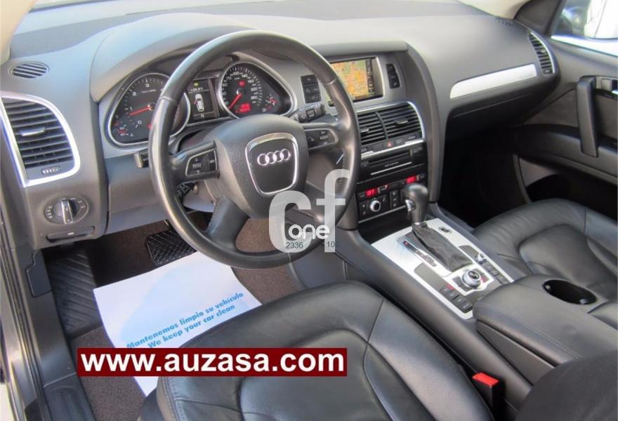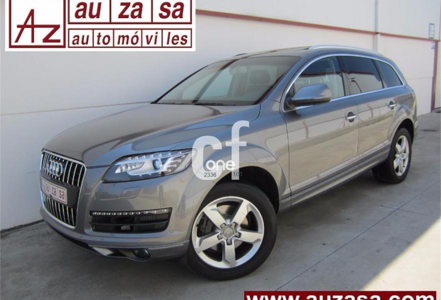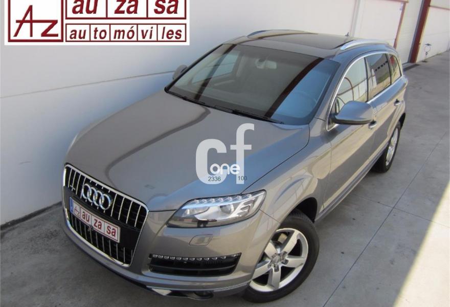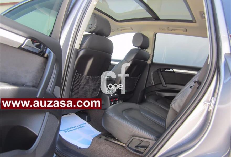 AUDI Q7, Diesel, año 2011, 109000 kilómetros, color Gris / Plata (GRIS PLOMO -Techo solar) metalizado, precio 28000€. Asientos delanteros calefactables,MMI Navigation con DVD,MMI Navigation plus,Preinstalación de teléfono móvil con kit de manos libres (Bluetooth) en el apoyabrazos central delantero de confort,Teléfono Audi Bluetooth GSM,Climatizador de confort de 4 zonas,Control de presión de los neumáticos,Cortinilla manual en luneta posterior,Faros inteligentes "smart beam",Luz adaptativa "dynamic adaptive light",Open sky system,Nevera,Paquete cuero,Portón maletero accionamiento automático,Retrovisores exteriores plegables eléctricamente con función memoria,Cristales tintados oscuros,Espejos retrovisores exteriores antideslumbrantes automáticos y plegables eléctricamente,Gris Cóndor (metalizado),Pintura metalizada,Audi parking system plus,Fijación para asientos infantiles ISOFIX y desactivador del airbag del acompañante. COMO NUEVO. Nacional.