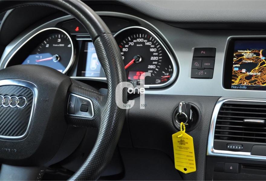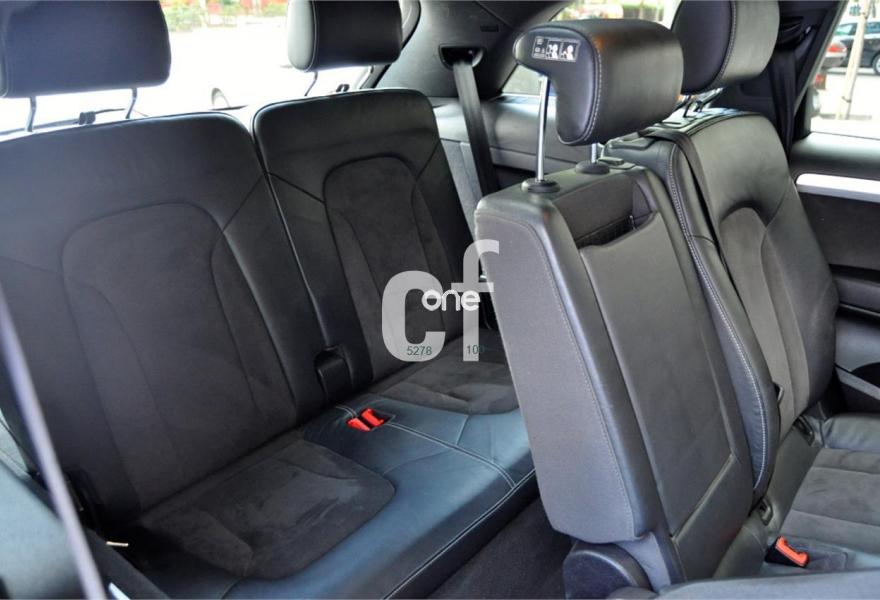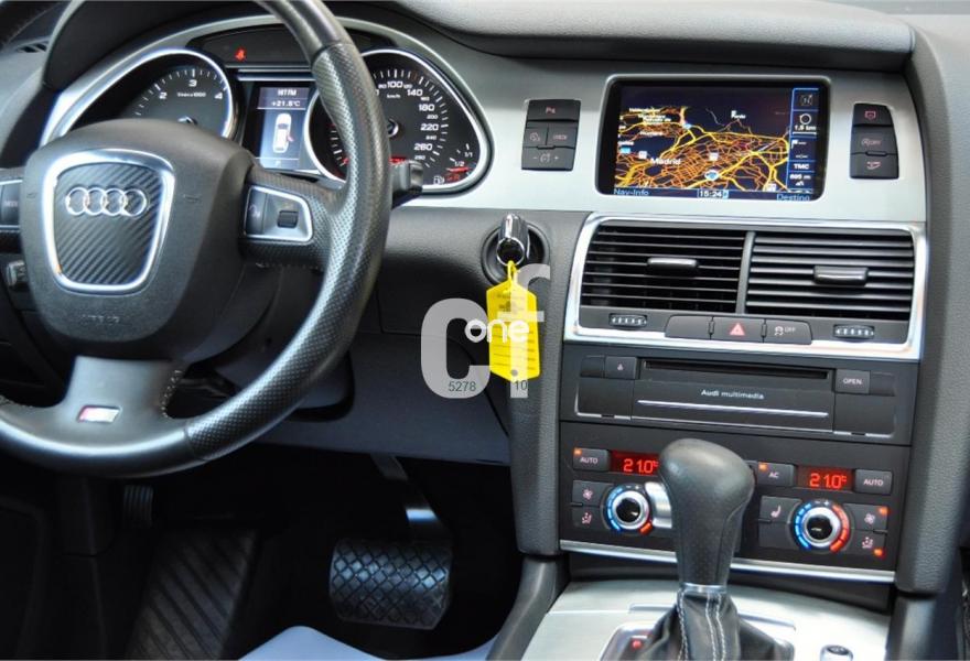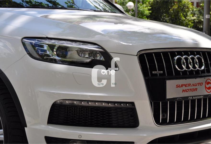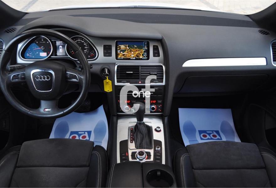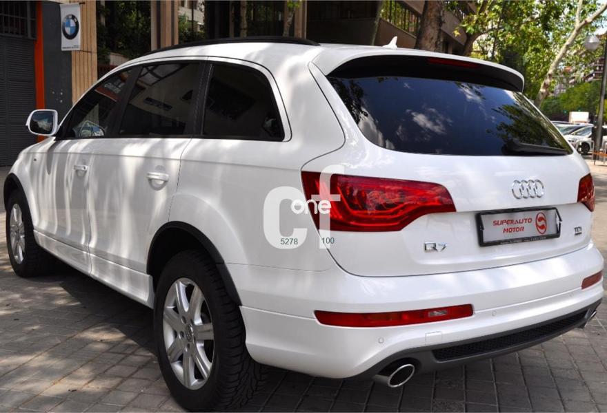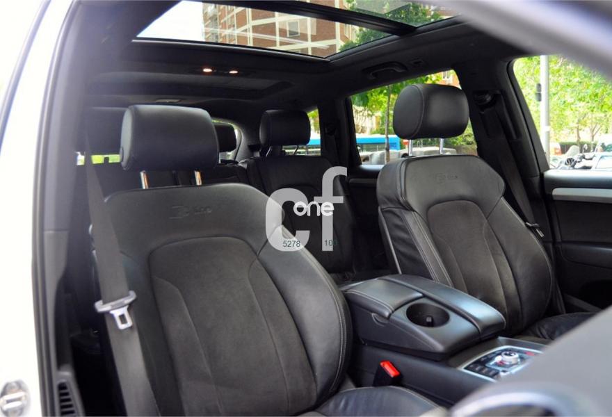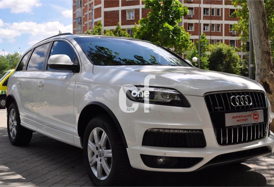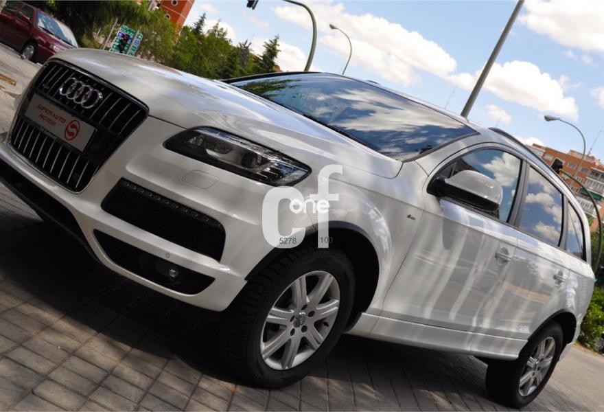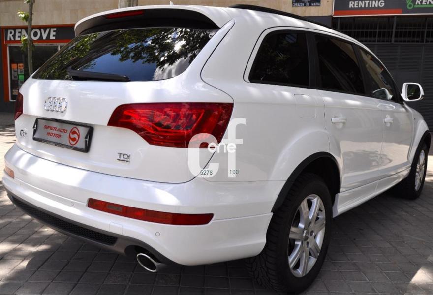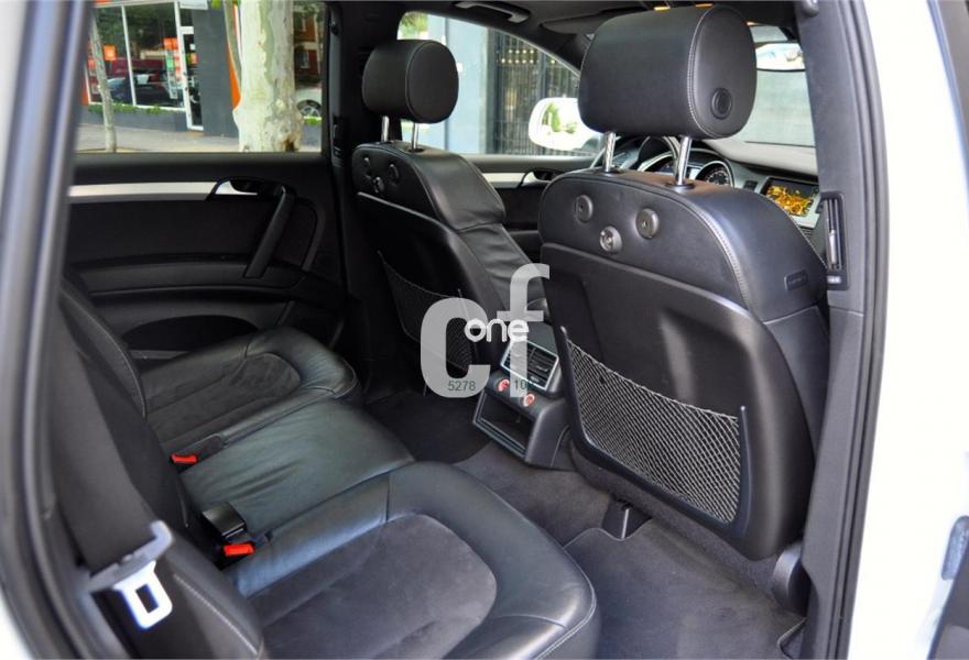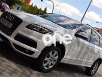 AUDI Q7, Diesel, año 2011, 98000 kilómetros, color Blanco , precio 35900€. Cristales con laminado doble y tintado oscuro,Lane assist + side assist,Asientos delanteros calefactables,Inserciones interiores en aluminio cepillado mate,Regulación longitudinal 2ª fila de asientos,Equipo de sonido BOSE Surround,Intercambiador de CD con MMI navegación plus,Intercambiador de CD,MMI navegación 3G plus,Preinstalación de teléfono móvil con kit de manos libres (Bluetooth) en el apoyabrazos central delantero de confort,Volante multifuncional de cuatro radios con levas para el cambio tiptronic y calefactable,3ª fila de asientos en cuero (7 plazas),Alcantara/Cuero Negro - Asientos Deportivos - Moqueta Velours,Asientos delanteros con regulación eléctrica y con memoria para asiento conductor,Control de presión de los neumáticos,Control de crucero adaptativo,Faros inteligentes "smart beam",Open sky system,Paquete exterior S line,Portón del maletero de accionamiento automático,Retrovisores exteriores plegables eléctricamente con función memoria,Blanco Ibis,Cristales tintados oscuros,Espejos retrovisores exteriores antideslumbrantes automáticos y plegables eléctricamente,Audi parking system plus con cámara visión trasera,Fijación para asientos infantiles ISOFIX y desactivador del airbag del acompañante. 7 PLAZAS