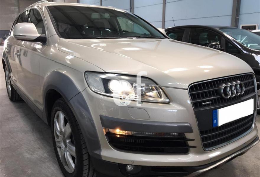 AUDI Q7, Diesel, año 2007, 343000 kilómetros, color Beige metalizado, precio 18500€. 3ª fila de asientos (cuero),Apoyabrazos central delantero confort,Cuero Cricket Negro,Inserciones en madera Tamo marrón oscuro,MMI,Sistema de navegación con DVD,Sistema información FIS+pantalla a color,Control automático de nivel de faros,Control automático de velocidad,Control de presión de neumáticos,Control de crucero adaptativo,Luz adaptativa "dynamic adaptive light",Paquete cuero plus,Portón maletero accionamiento automático,Retrovisor anti-deslumbramiento+brújula,Beige Bahía (metalizado),Cristales tintados oscuros,Espejos retrovisores antideslumb. plegab,Llantas de aleación 8J x 18 7 brazos,Pintura metalizada,Rueda deshinchada con compresor,Suspensión neumática adaptativa,Audi parking system advanced,ISOFIX+desactivador airbag acompañante. PRECIOSO IMPECABLE AUDI Q7 3.0TDI TRIPTRONIC 240CV 7PLAZAS NACIONAL DE FINALES DE 2007 FULL EQUIPE CUERO XENON SUSPENSION NEUMATICA PORTON TRAS ELECTRICO SISTEMA DE NAVEGACION CAMARA TRAS APARCAMIENTO ASIENTOS ELECTRICOS BLUETOOTH VOLANTE MULTIFUNCION LUZ DIURNA ETC...VEHICULO PROCEDENTE DE PARTICULAR UNICO PROPIETARIO MUY CUIDADO CON TODO EL MANTENIMIENTO AL DIA 343.000KMS MUY BIEN HECHOS PERFECTO ESTADO.**PRECIO CON UN AÑO DE GARANTIA COMPLETA EN TODA ESPAÑA Y CAMBIO DE NOMBRE INCLUIDO**FINANCIACION A SU MEDIDA*RECOJEMOS SU VEHICULO COMO PARTE DE PAGO**.