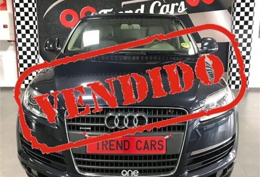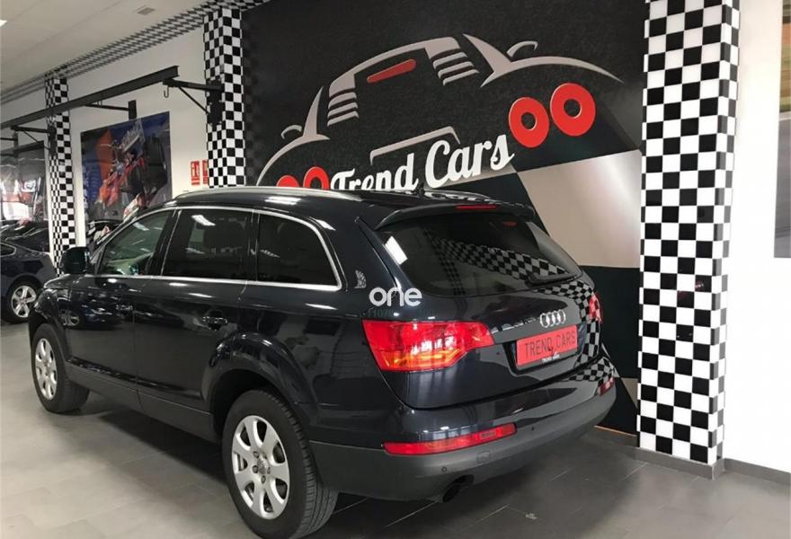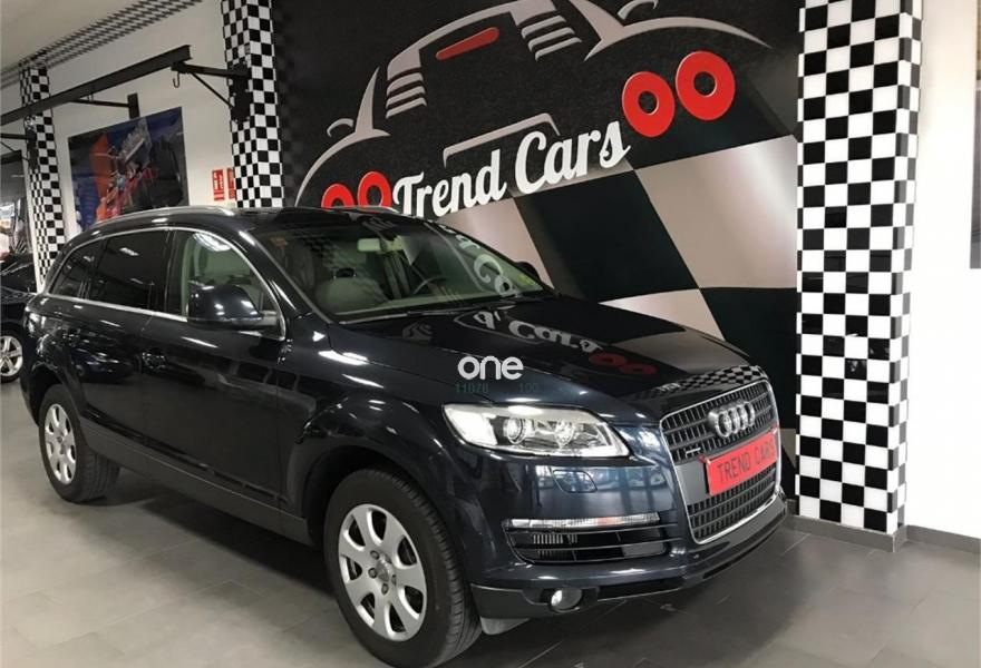 AUDI Q7, Diesel, año 2007, 105832 kilómetros, color Azul , precio 18890€. Trend Cars concesionario de referencia de la zona le ofrece un AUDI Q7 3.0TDI V6 QUATTRO 230CV , volante multifuncion, retrovisores electricos y abatibles, retrovisores anti-deslumbramiento, climatizador bizona, levas en volante, control de velocidad, sensor de luces y lluvia, sensores de aparcamiento, techo panoramico, 7 plazas, lunas tintadas, pre-instalacion navegador (Le falta cd de instalacion), DVD 3 zonas, cargador de CD, asientos electricos con memoria, Xenon, camara de aparcamiento, Llantas 18" etc... Lleveselo puesto a su nombre y con una año de garantía. Y si quiere financiarlo puede hacerlo con o sin entrada en cómodas cuotas. Ademas aceptamos su vehículo como parte de pago. No deje pasar esta oportunidad y póngase en contacto con nosotros o visite nuestras instalaciones donde estaremos encantados de atenderle.