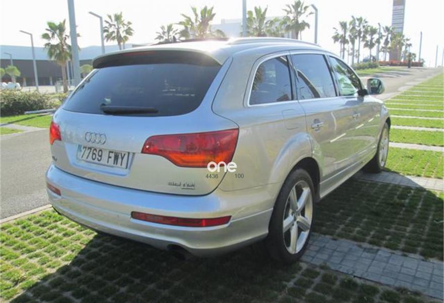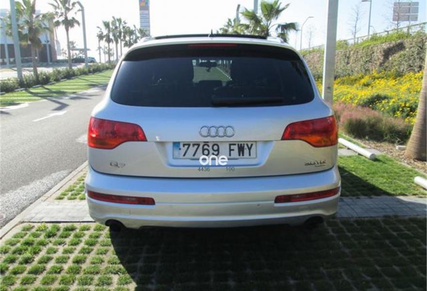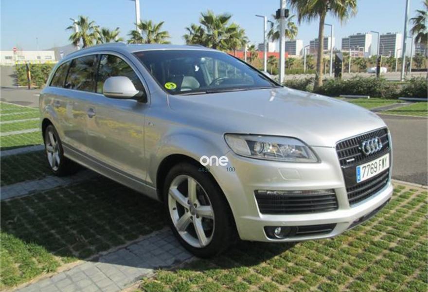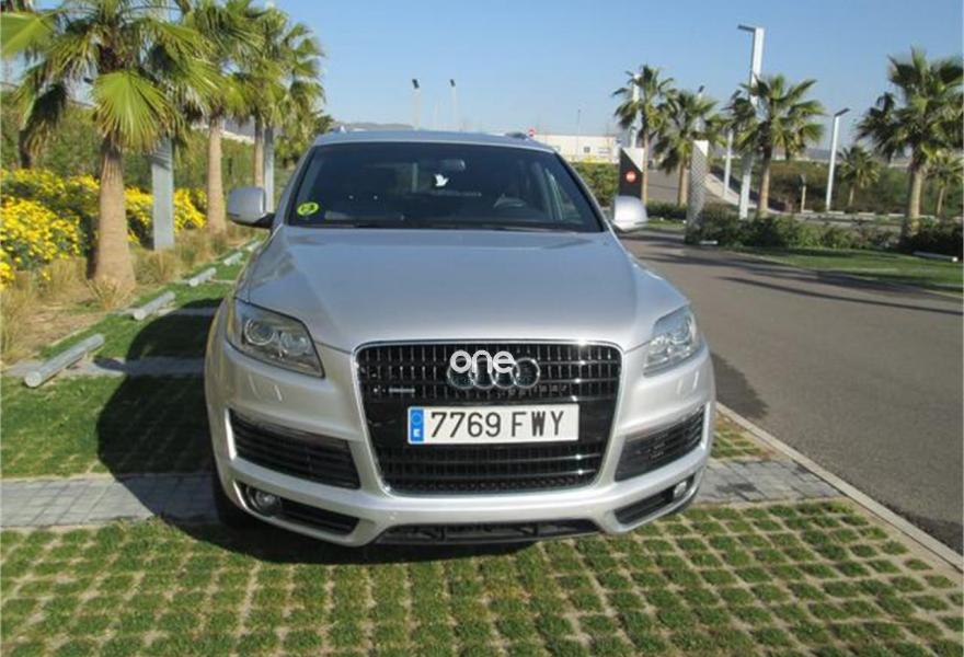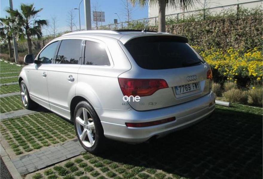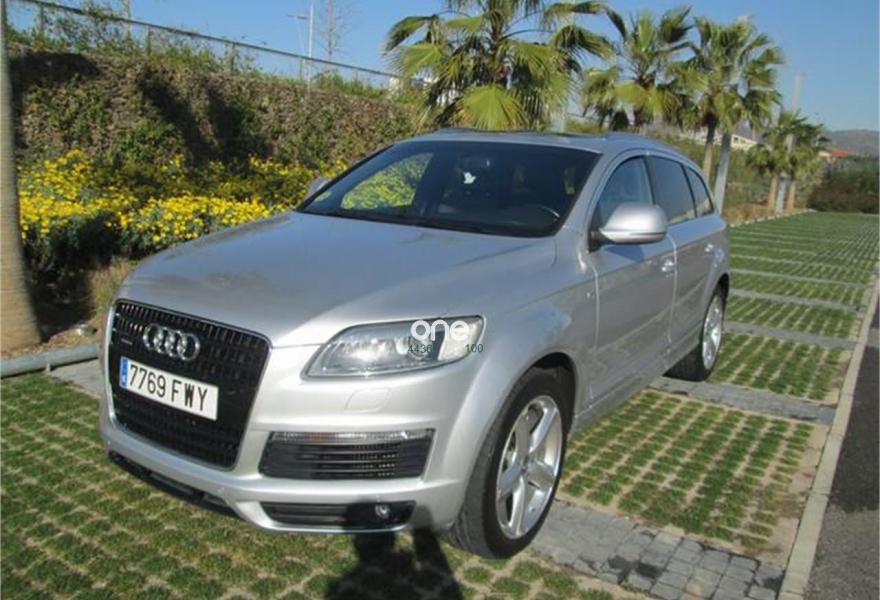 AUDI Q7, Diesel, año 2007, 220000 kilómetros, color Gris / Plata (impecable estado) metalizado, precio 12990€. Cristales laminado doble+tintado oscuro,3ª fila de asientos (cuero),Audi music interface,Sistema de navegación con CD,Faros de xenón plus,Volante deportivo multifuncional,Pintura metalizada,Suspensión deportiva S line,Audi parking system advanced,Paquete deportivo S line.