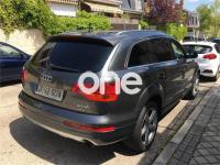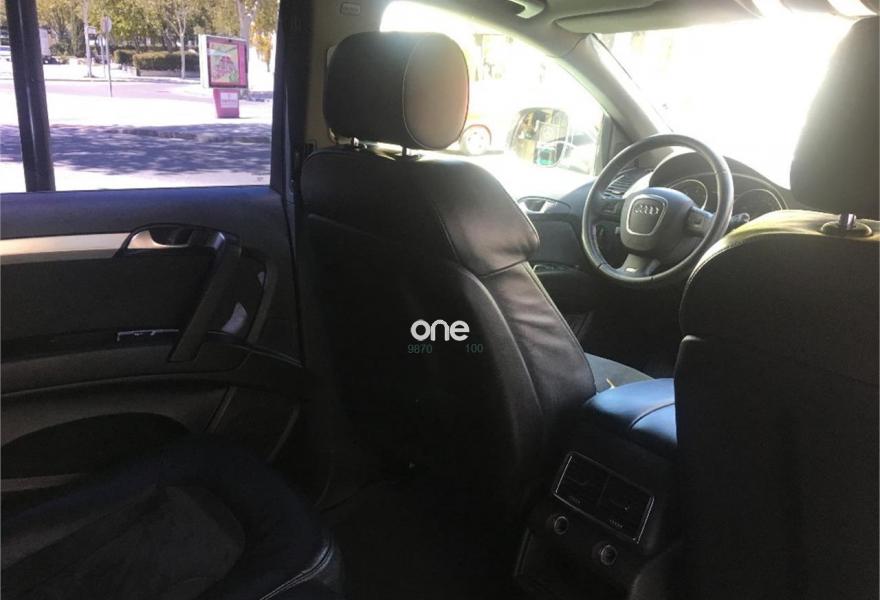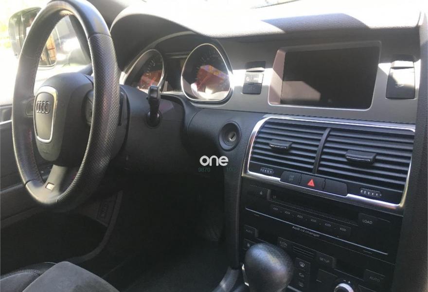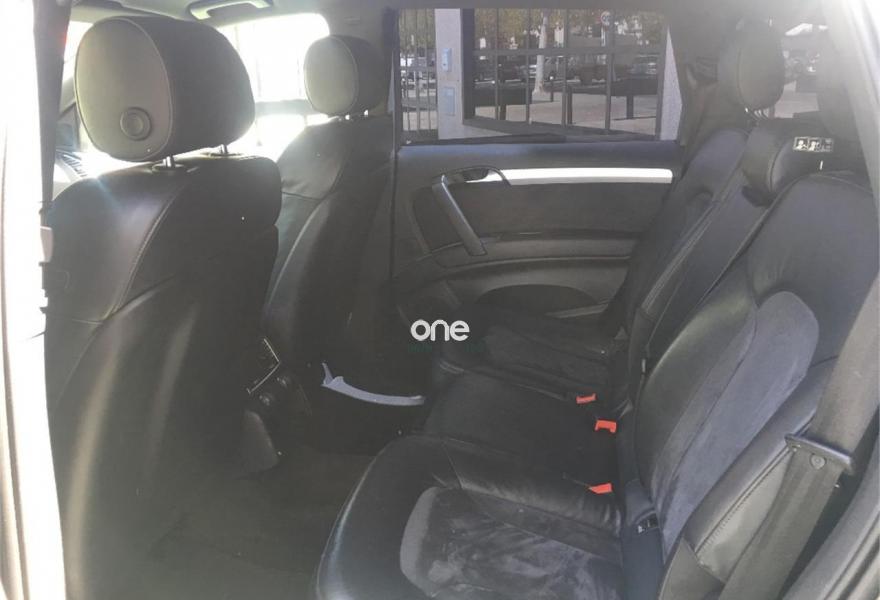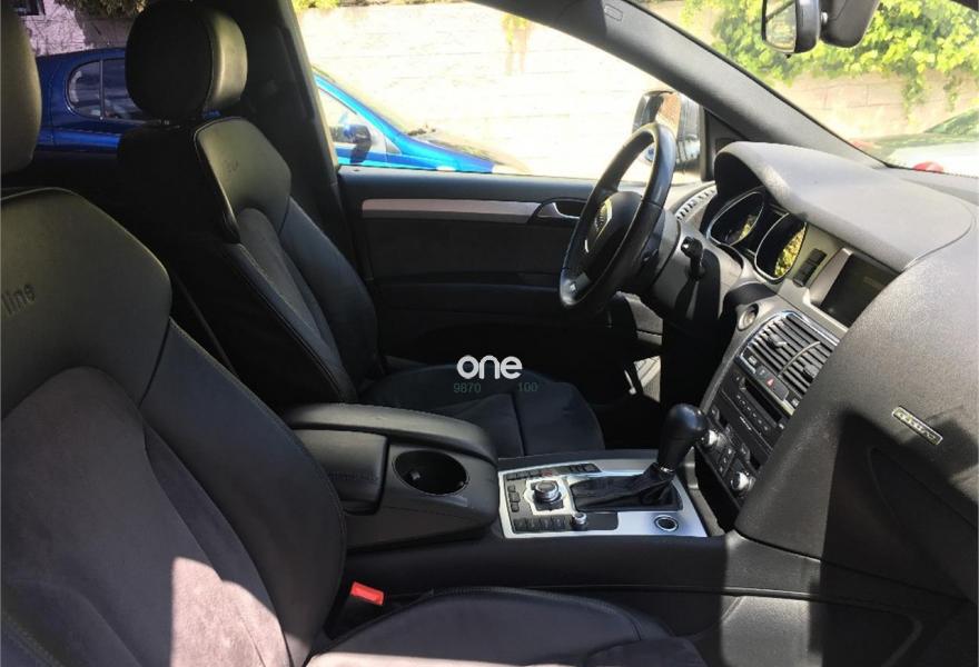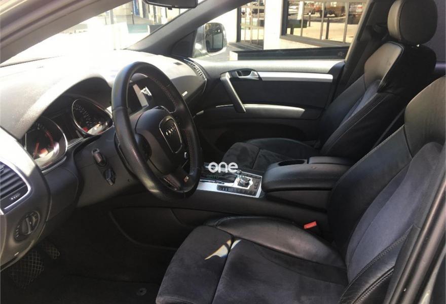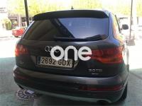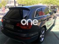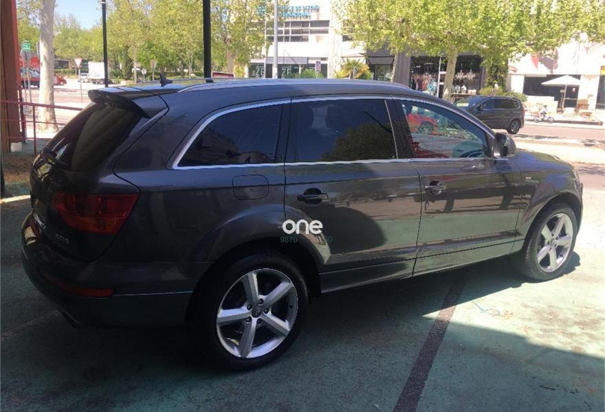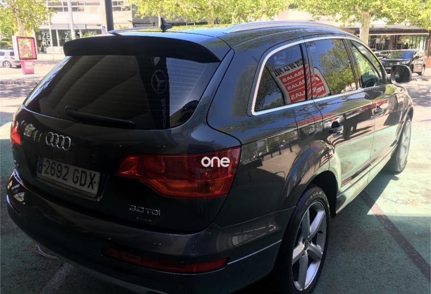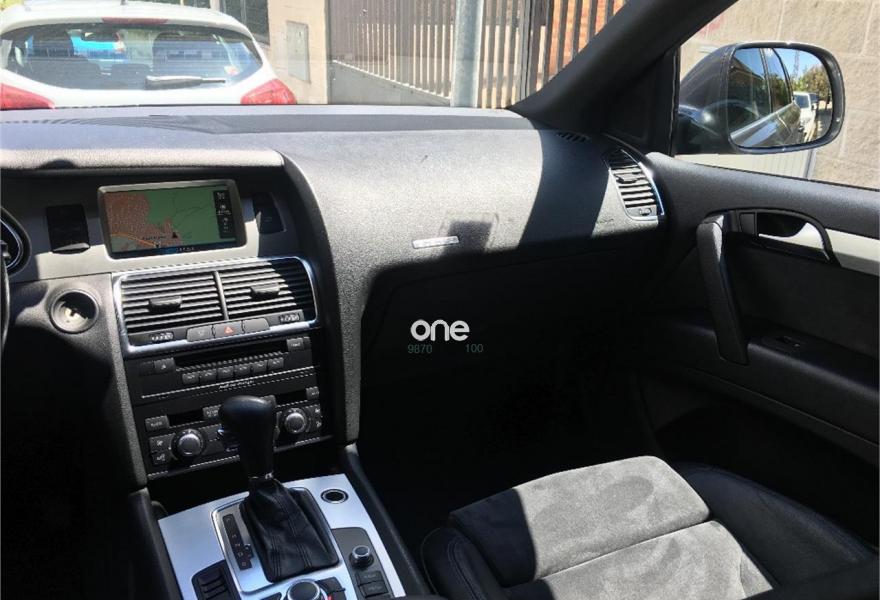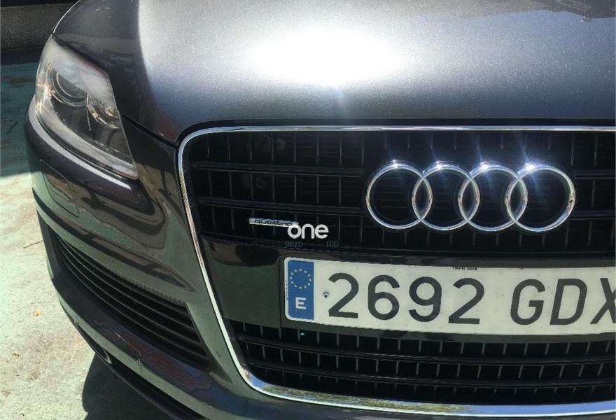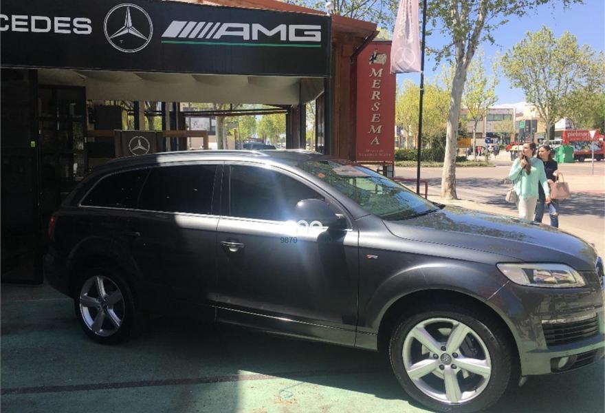 AUDI Q7, Diesel, año 2008, 267000 kilómetros, color Gris / Plata (GRIS TITANIO) metalizado, precio 15900€. Cristales laminado doble+tintado oscuro,Lane assist + side assist en combinación con Paquete S line,Alcántara/Cuero Negro - S Line,Asientos delanteros regulación eléctrica,Asientos delanteros con regulación lumbar eléctrica,Inseciones en aluminio Marlin plata,Paquete deportivo S line,Paquete diseño Alcantara/cuero Audi exclusive, con asientos deportivos color negro,Paquete portaobjetos,Tapicería de Alcantara/cuero color negro S line,Audi music interface,Intercambiador de CD para MMI basic plus,Preinstalación tfno móvil con bluetooth y apoyabrazos central confort,Sistema de navegación con DVD,Climatizador de confort de 4 zonas,Control automático de velocidad,Control de crucero adaptativo,Control de presión de neumáticos,Faros inteligentes "smart beam",Paquete exterior S line,Retrovisor interior anti-deslumbramiento,Volante multifuncional deportivo de cuero perforado, con levas y logotipo S line,Cristales tintados oscuros,Espejos exteriores retrovisores antideslumbrantes automáticos y plegables eléctricamente,Gris Cuarzo (metalizado),Llantas de aleación 9Jx20 5 brazos con neumáticos 275/45 R20,Retrovisores exteriores plegables eléctricamente con memoria,Suspensión deportiva S line,Audi parking system advanced. 7 PLAZAS ABATIBLES