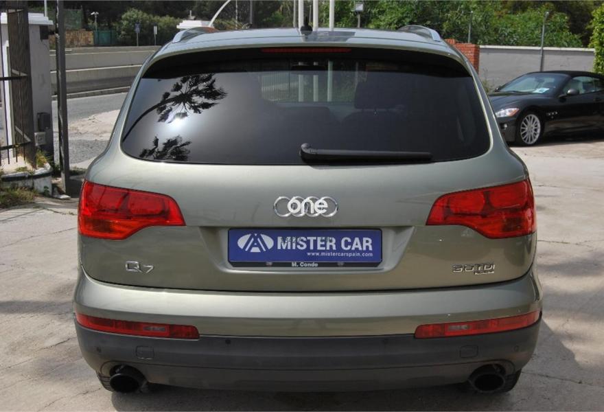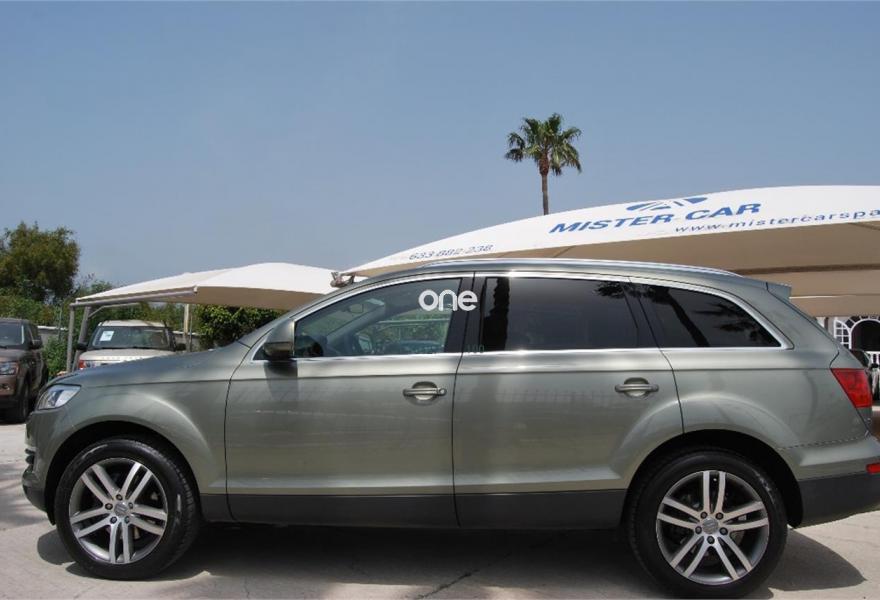 AUDI Q7, Diesel, año 2006, 84000 kilómetros, color Verde metalizado, precio 22900€. Cristales laminado doble+tintado oscuro,Paquete portaobjetos y mesas abatibles,Apoyabrazos central delantero confort,Cuero Cricket Verde Borneo,Parasoles dobles de confort,Audi music interface,Bolsa para CD,Equipo de sonido BOSE Surround,Intercambiador de CD para MMI basic plus,Preinstalación tfno móvil+bluetooth,Sistema de navegación con DVD,CD para sistema de navegación,Calefacción/ventilación programable,Pintura efecto perla,Pintura metalizada,Verde Platanero (metalizado). MISTER CAR. Ven a visitar nuestra amplia gama de vehículos en stock en nuestras instalaciones (Ctra. N-340, Km. 162, 5, salida Coto de la Serena, Estepona). Todos nuestros vehículos se entregan con 12 meses de garantía, revisión mecánica completa antes de la entrega y gestión completa de la documentación del vehículo. Consúltenos sobre facilidades de financiación y seguro de su vehículo. Posibilidad de entrega de vehículo como parte de pago. Servicios postventa: tras la compra del vehículoleofrecemos una amplia gama de servicios postventa para que pueda disfrutar de su compra en MISTER CAR (revisiones mecánicas periódicas, pre ITV e ITV, limpieza integral)..