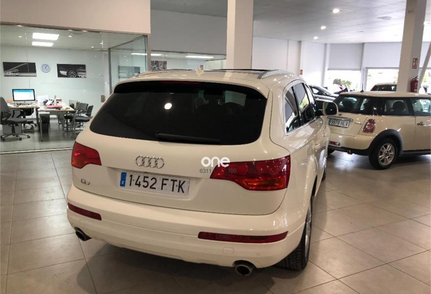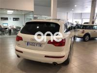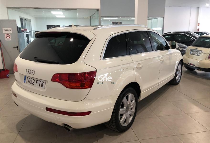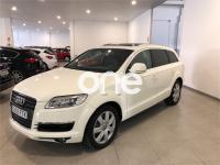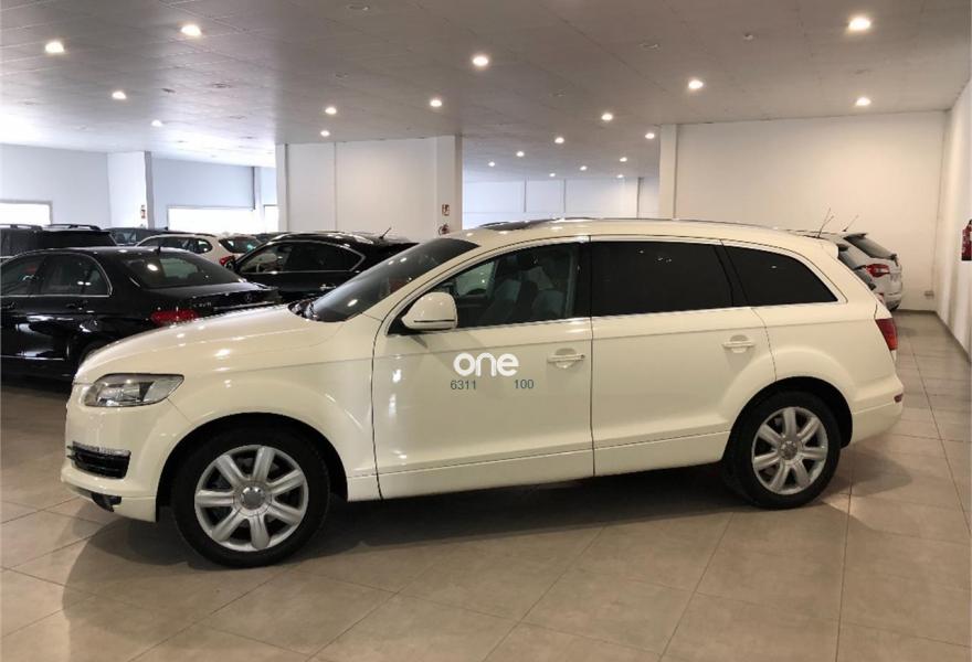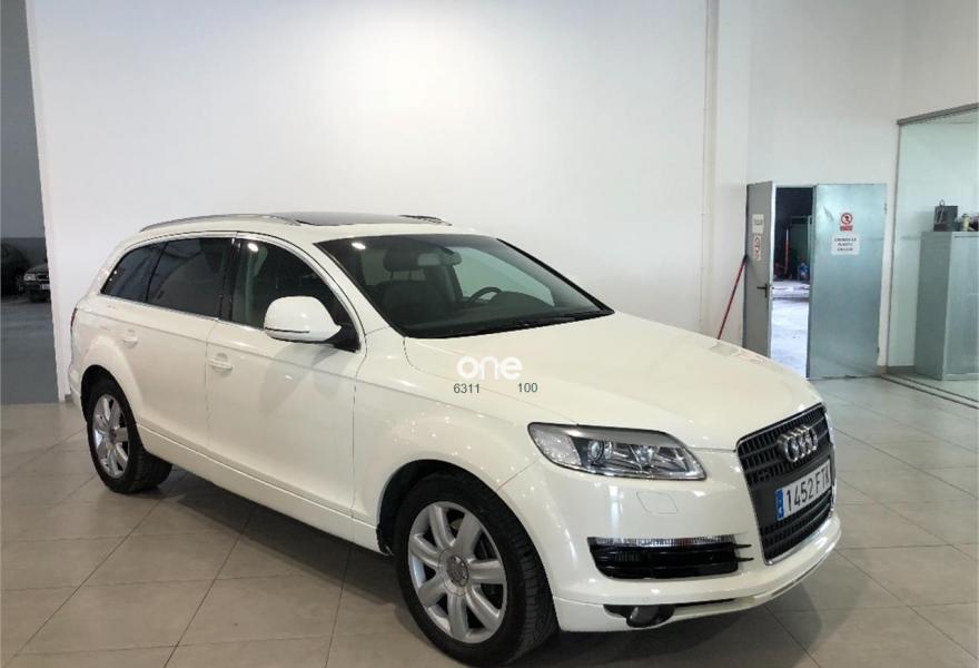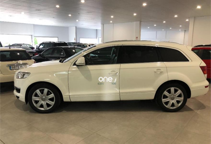 AUDI Q7, Diesel, año 2007, 99000 kilómetros, color Blanco metalizado, precio 19990€. Paquete deportivo S line,Paquete fumador,Regulación longitudinal 2ª fila asientos,Tapicería Alcantara/cuero S line,MMI,CD para sistema de navegación,Control de presión de neumáticos,Luz adaptativa "dynamic adaptive light",Portón maletero accionamiento automático,Volante deportivo multifuncional S line,Blanco Cala,Llantas de aleación 8,5 x 19 "Struktur",Audi parking system advanced,ISOFIX+desactivador airbag acompañante,Espejos retrovisores antideslumb. plegab. CONSULTE NUESTRA OFERTA DE FINANCIACION