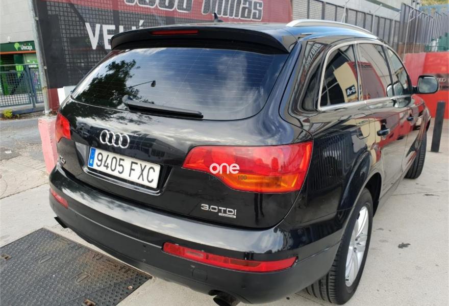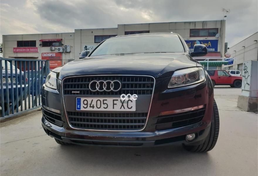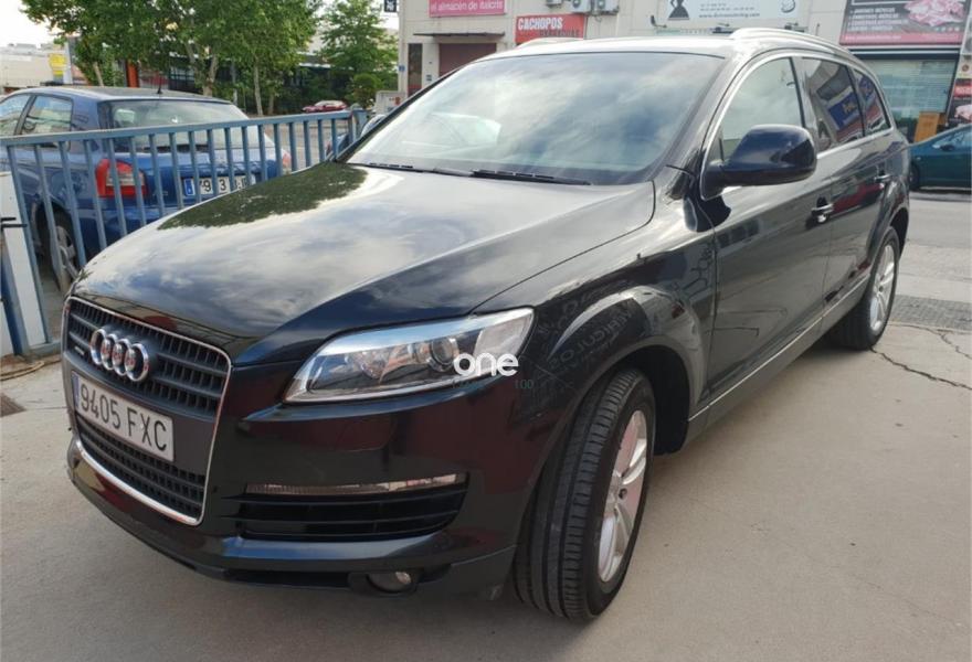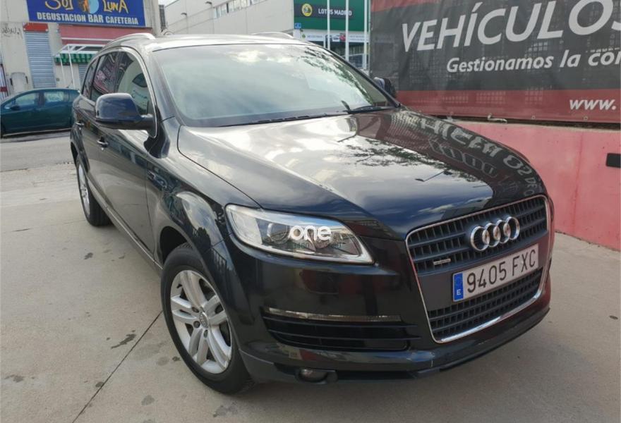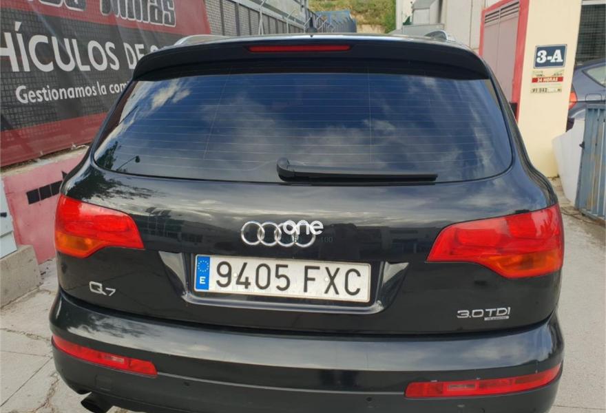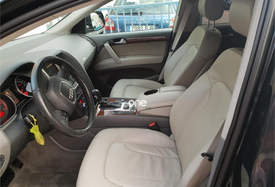 AUDI Q7, Diesel, año 2008, 195000 kilómetros, color Negro metalizado, precio 14900€. Cristales laminado doble+tintado oscuro,Cuero Cricket Gris Luz - Moqueta Fresco,Cuero Cricket Gris Luz - Moqueta Velours,Inserciones en madera Tamo marrón oscuro,Regulación longitudinal 2ª fila de asientos,Audi music interface,Intercambiador de CD para MMI basic plus,MMI,Sistema de navegación con CD,Climatizador de confort de 4 zonas,Volante deportivo multifuncional + levas,Volante deportivo multifuncional + levas,Cristales tintados oscuros,Espejos exteriores retrovisores antideslumbrantes automáticos y plegables eléctricamente,Llantas de aleación 8,5 x 18 5 radios dobles,Pintura metalizada,Suspensión neumática adaptativa,Audi parking system trasero,ISOFIX+desactivador airbag acompañante. VEHICULO PROCEDENTE DE PARTICULAR,CERTIFICACION DE KILOMETRAJE,7 PLAZAS,7 PLAZAS,7 PLAZAS,,UY EQUIPADO,CAMBIADO EL TURBO EN CONCESIONARIO OFICIAL AUDI ASI COMO EL COMPRESOR DEL AIREA CONDICIONADO,CON SU CORRESPONDIENTE FACTURA DE CONCESION AUDIA LOS 171000KMS,CCAMBIADO DISCOS PASTILLAS Y NEUMATICOS EN CONCESIONARIO OFICIAL AUDI CON SU CORRESPONDIENTE FACTURA,MUY EQUIPADO,NAVEGADOR MMI,VOLANTE MULTIFUNCION CON LEVAS EN EL VOLANTE,ASIENTOS DE CUERO,SUSPENSION NEUMATICA ADAPTATIVA EN TRES POSICIONES,CLIMATIZADOR EN TODO EL HABITACULO,NAVEGADOR,PARKTRONIC,ETC,ETC,LO ENTREGAMOS CON 12 MESES DE GARANTIA,12 MESES DE GARANTIA.