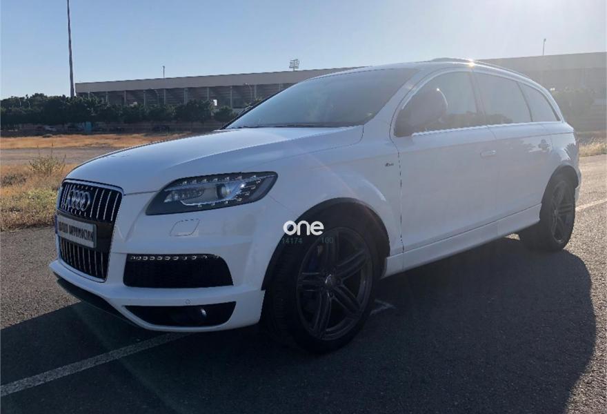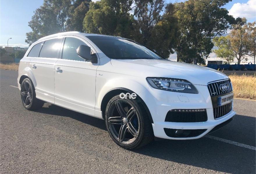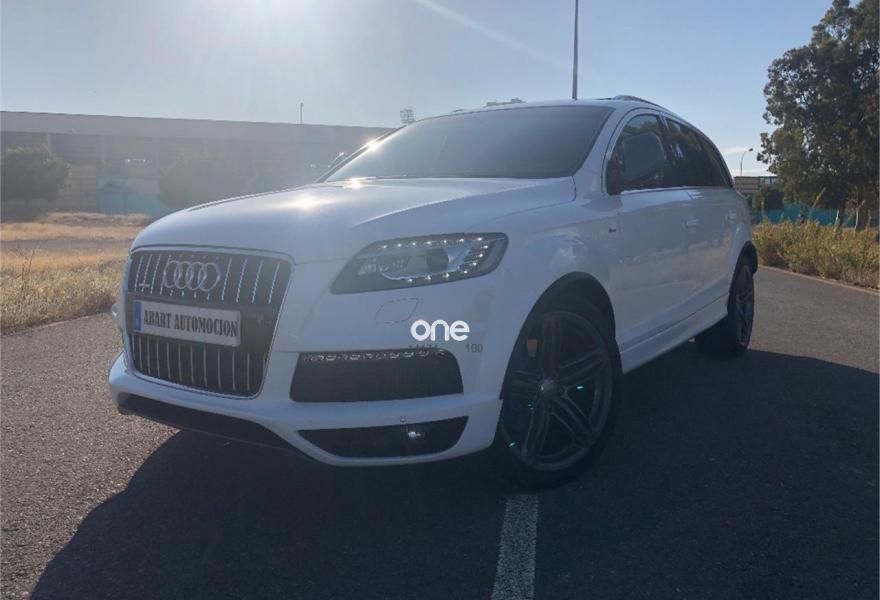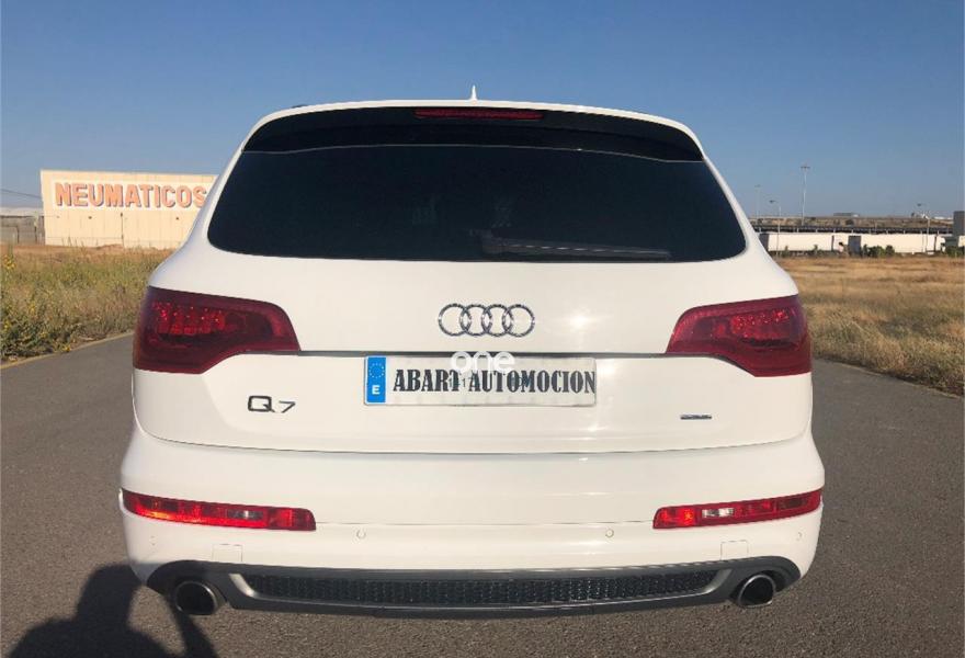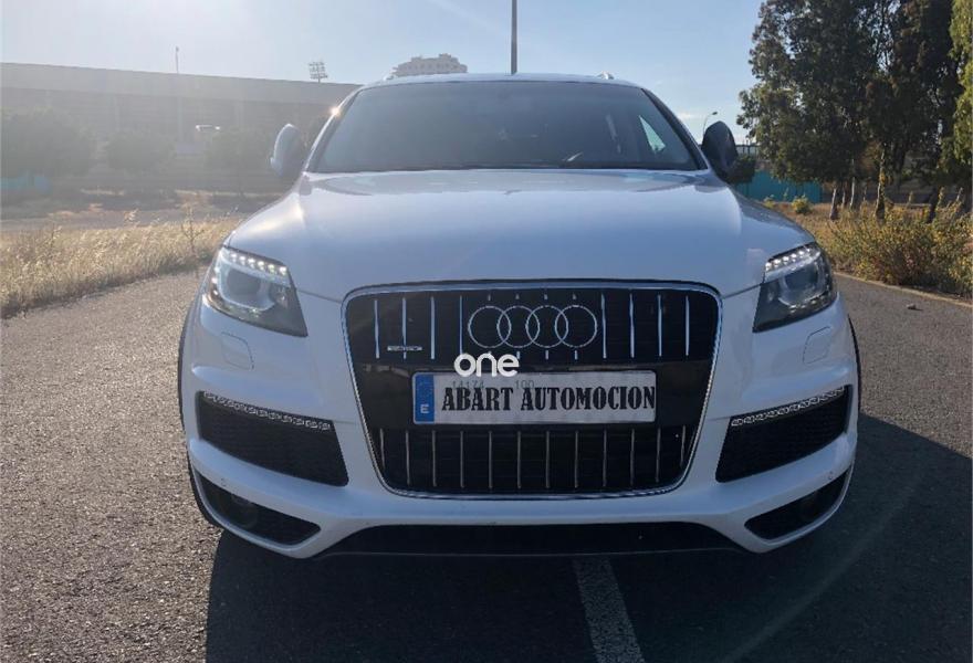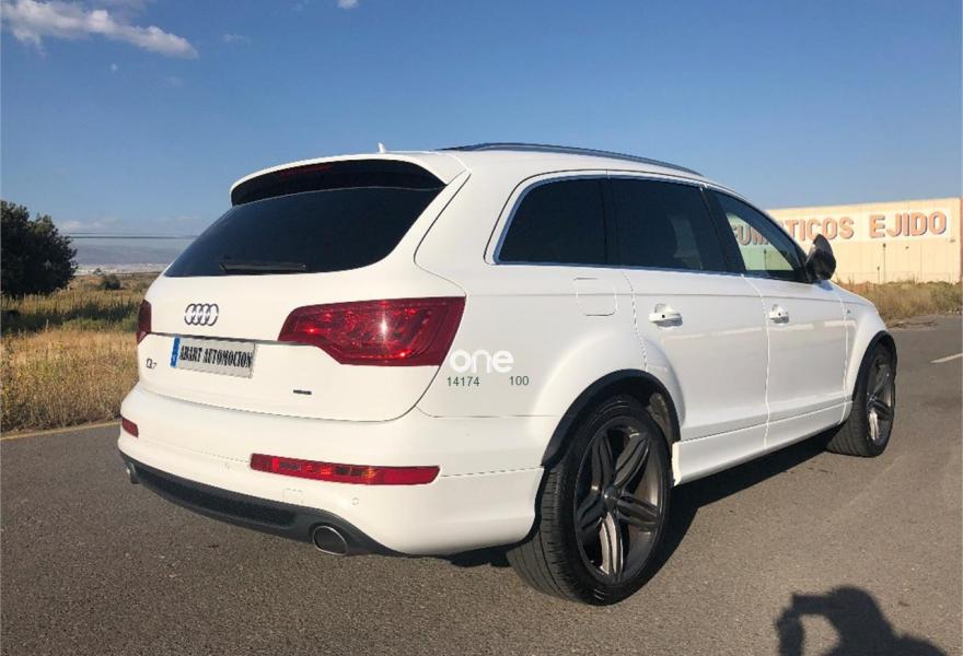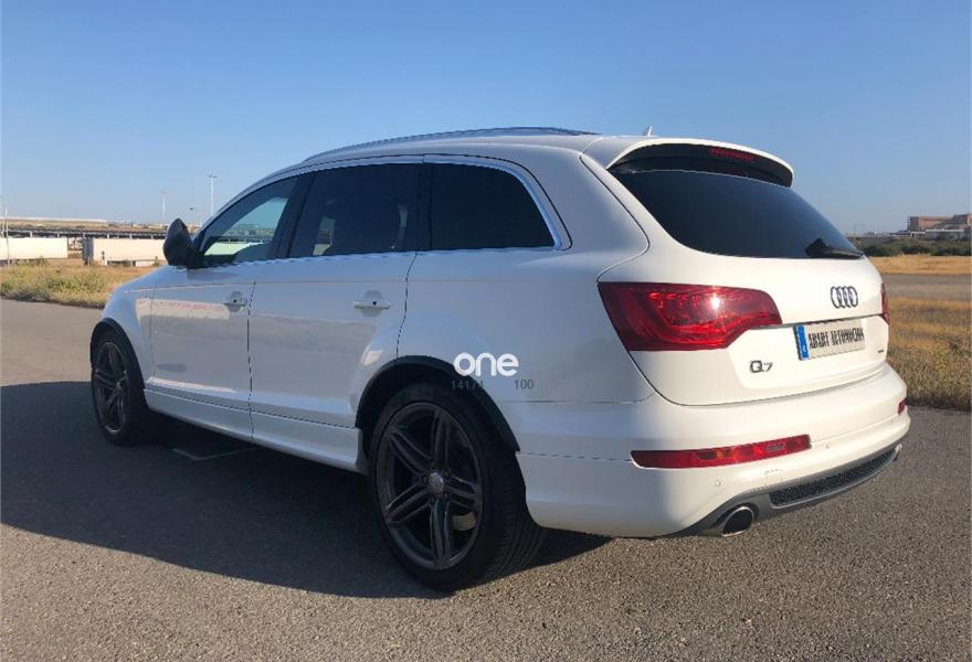 AUDI Q7, Diesel, año 2012, 176000 kilómetros, color Blanco metalizado, precio 37900€. AUDI Q7 SLINE 4.2 TDI 340CV,,,,,,sistema de apertura y arranque sin llaves,asientos deportivos s-line en piel bi-color eléctricos con todas las funciones, memoria de asientos, paquete de piel ampliado, control de velocidad con distronic, paquete s-line interior y exterior, llantas de 21 pulgadas s-line con neumaticos nuevos, suspensión neumática adaptativa, sistema de navegación panorámica, equipo de sonido bose, cargador de 6 CD y 6 DVD, entrada usb, tarjeta de memoria interna, televisión analógica para plazas delanteras, televisiones en cabeceros traseros, climatizador digital 4-zonas, calefacción y ventilación de asientos delanteros, portón trasero eléctrico con cámara de visión trasera, asistente para luz de carretera, sensor de cambio involuntario de carril, sensores de parking delanteros y traseros, techo en piel alcántara,techo panorámico de cristal,,,PARA UNA MEJORA ATENCIÓN NO DUDE EN PONERSE EN CONTACTO CON NUESTROS COMERCIALES .