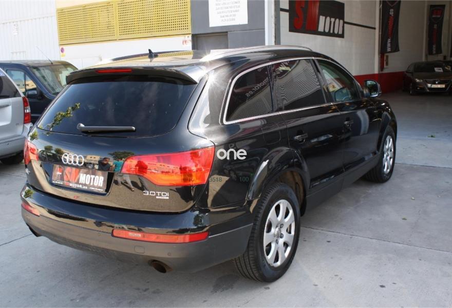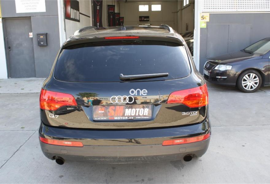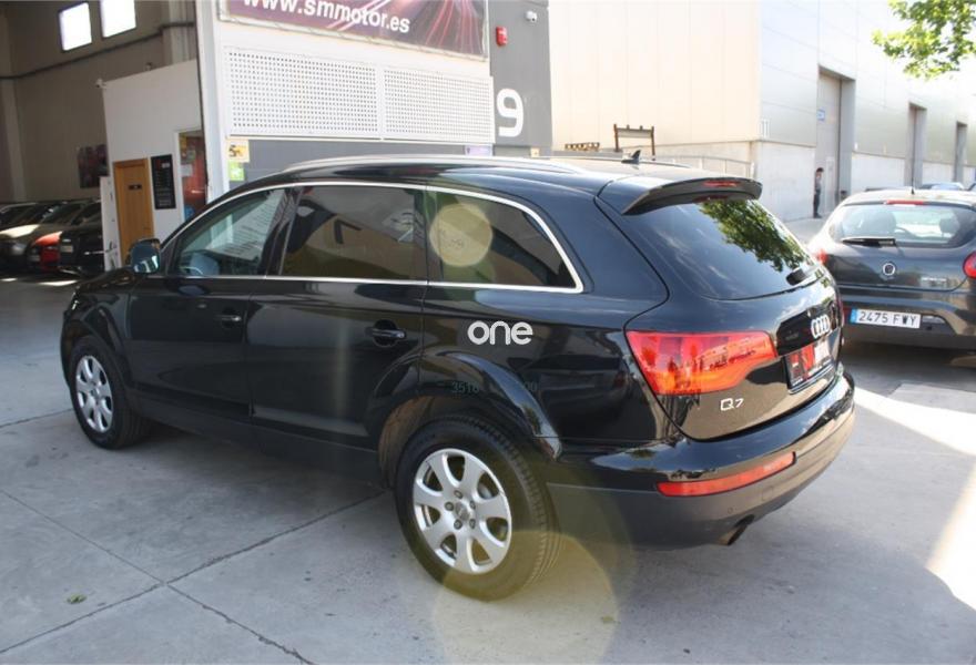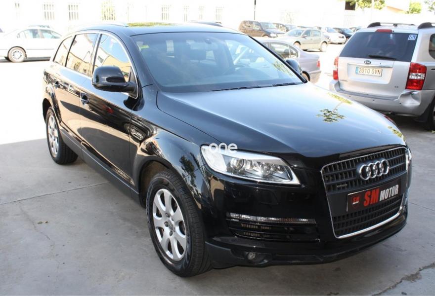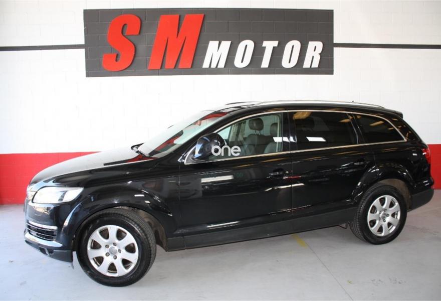 AUDI Q7, Diesel, año 2009, 164000 kilómetros, color Negro metalizado, precio 19690€. 3ª fila de asientos en cuero (7 plazas). 7 PLAZAS.EN MUY BUEN ESTADO EN GENERAL TANTO DE INTERIOR COMO DE EXTERIOR.MUCHISIMOS EXTRAS:TAPICERIA DE CUERO DAKOTA EN COLOR CHOCOLATE,NAVEGADOR DE PANTALLA GRANDE,DOBLE CLIMATIZADOR DIGITAL,LLANTAS DE ALEACION,7 PLAZAS,FAROS DE XENON CON LAVAFAROS,ORDENADOR DE ABORDO,DOBLE CLIMATIZADOR DIGITAL EN LAS PLAZAS TRASERAS,FAROS ANTINIEBLA DELANTEROS Y TRASEROS,CRISTALES TRASEROS TINTADOS Y HOMOLOGADOS,VOLANTE MULTIFUNCION,ESPEJOS ELECTRICOS,CIERRE CENTRALIZADO,DIRECCION ASISTIDA,SENSOR DE LUCES AUTOMATICAS,CAMBIO AUTOMATICO,ASIENTOS CON SISTEMA ISOFIX,ETC....................12 MESES DE GARANTIA NACIONAL EN TODOS VEHICULOS. -Admitimos su vehículo como parte de pago. -300 vehículos en stock -Vehículos revisados en 100 puntos ,limpios, aceites y filtros cambiados, con factura y documentación en regla. -Financiamos sin entrada y vehículos de cualquier año -Kilómetros certificados por CARFAX -1.000m2 de taller mecánico y 5.000m2 de exposición Gestión.