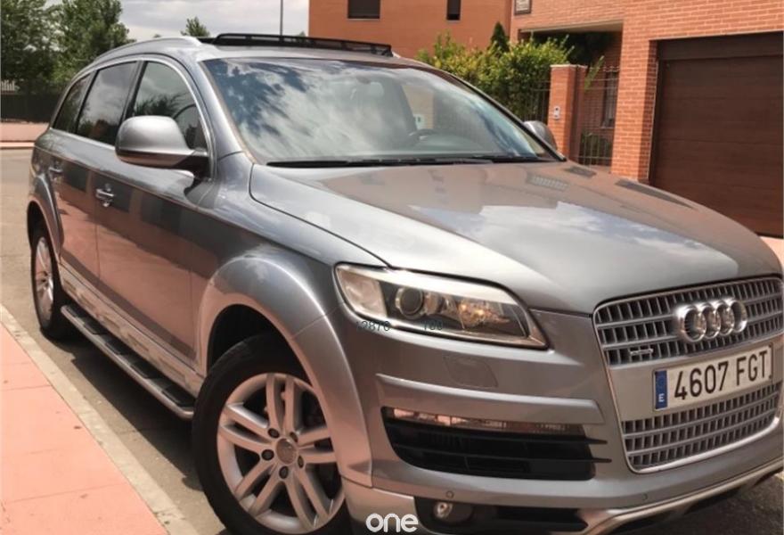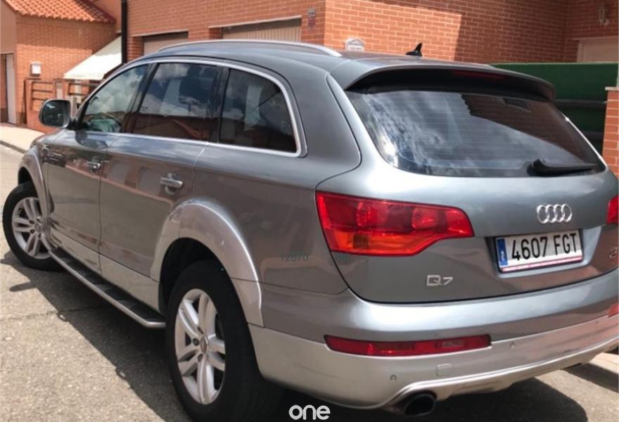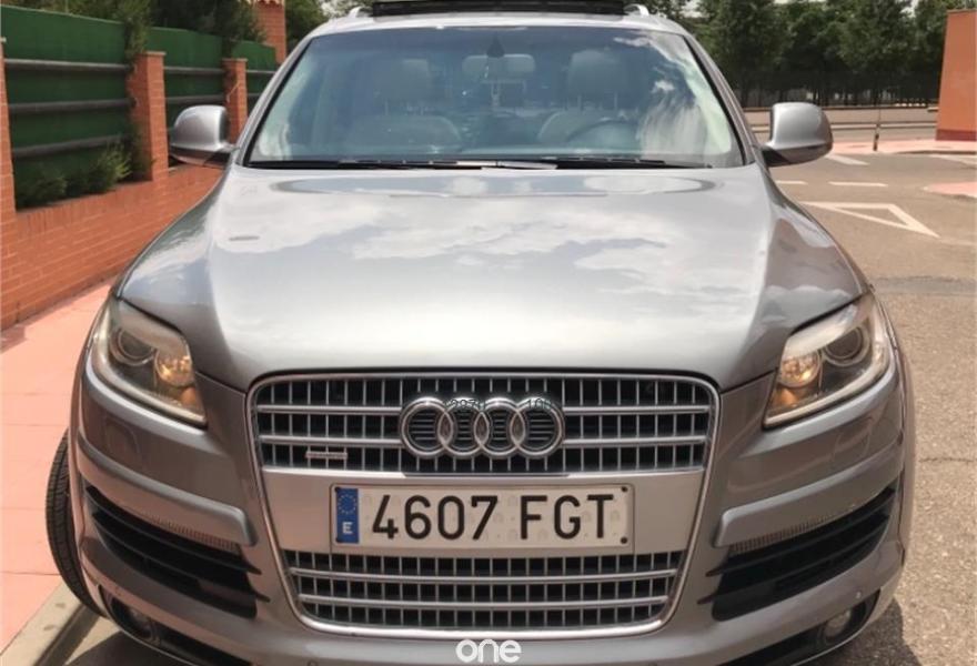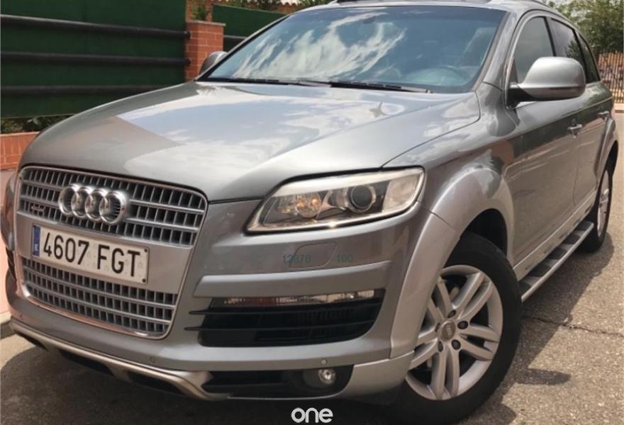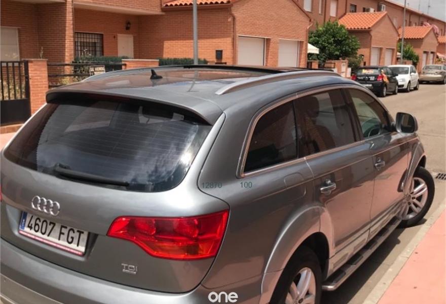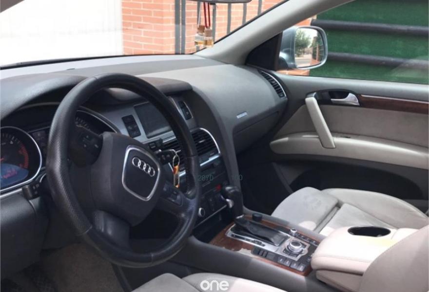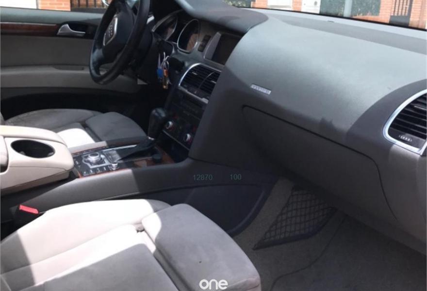 AUDI Q7, Diesel, año 2007, 248000 kilómetros, color Gris / Plata metalizado, precio 15700€. Cristales laminado doble+tintado oscuro,Receptor TV analógico digital+DAB,3ª fila de asientos (cuero),Alcántara/Cuero Gris Luz,Alfombrillas en color especial Audi exc.,Asientos delanteros regulación eléctrica,Asientos delanteros regulación lumbar,Audi exclusive line,Cubremaletero plegable,Cuero Verano Beige Cardamomo,Inserciones carbono Audi exclusive,Paquete deportivo S line,Paquete fumador,Parasoles dobles de confort,Regulación longitudinal 2ª fila asientos,Audi music interface,Bolsa para CD,Intercambiador de CD para MMI basic plus,Radio Digital DAB,Preinstalación tfno móvil+bluetooth,Receptor de TV analógico,Sistema información FIS+pantalla a color,Teléfono Audi Bluetooth GSM,Astos del eléctricos+memoria conductor,Control automático de nivel de faros,Control automático de velocidad,Control de presión de neumáticos,Paquete exterior S line,Retrovisor anti-deslumbramiento+brújula,Volante multifuncional con levas S line,Espejos retrovisores antideslumb. plegab,Cristales tintados oscuros,Gris Cóndor (metalizado),Llantas de aleación 8,5 x 18 5 radios,Rueda deshinchada con compresor. Nacional. Con todas las revisiones al día. Tiene estriberas originales de audi. Ningún problema y muy cuidado, acabado exterior paquete sline. Mejor ver ya que hay pocos q7 con las caracterisfmticad de este.