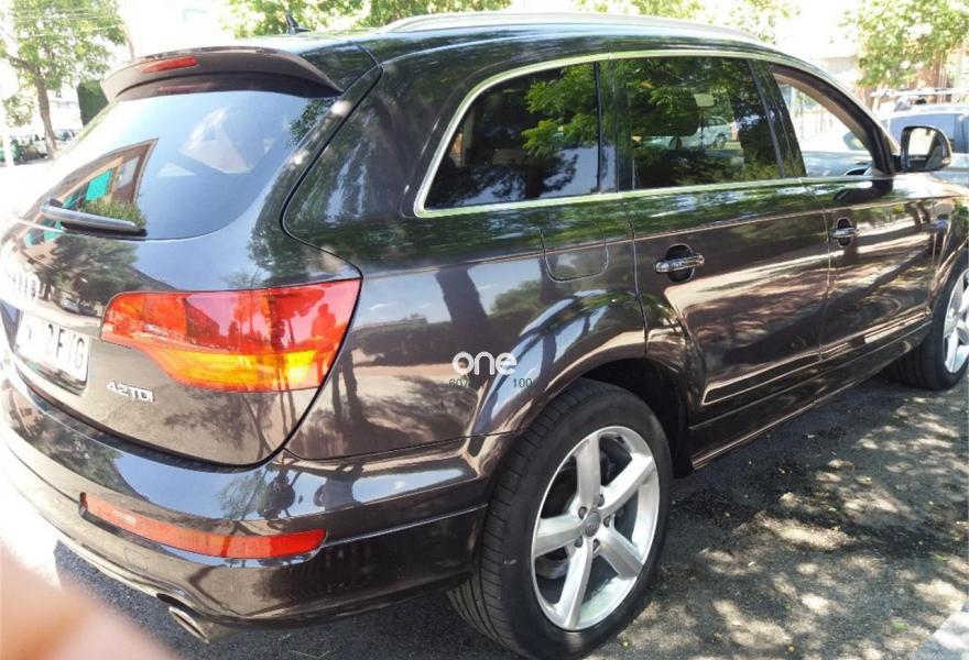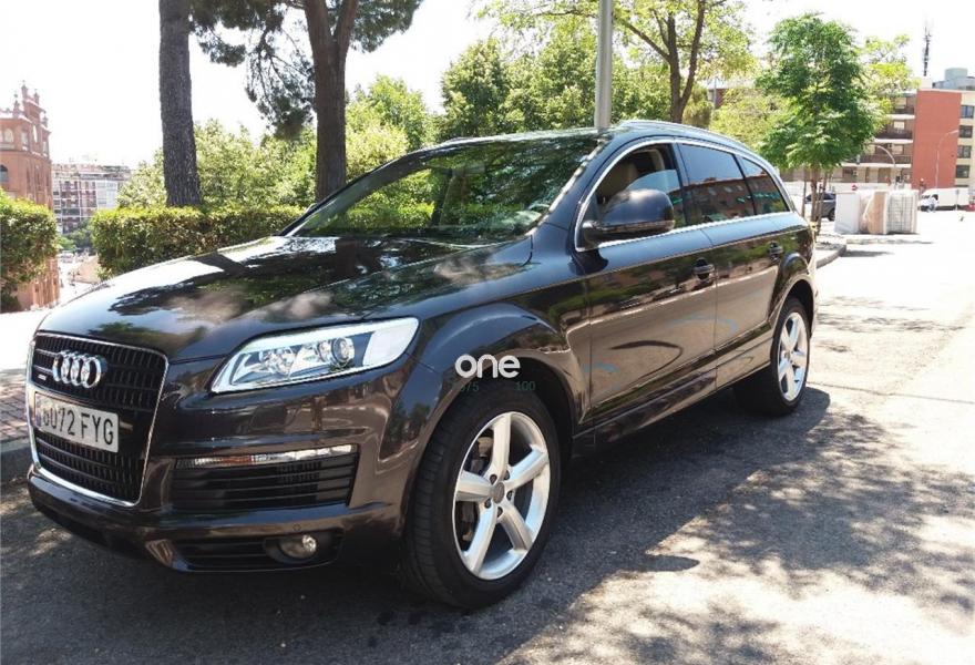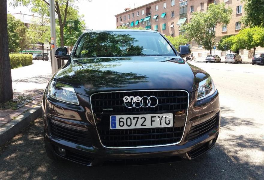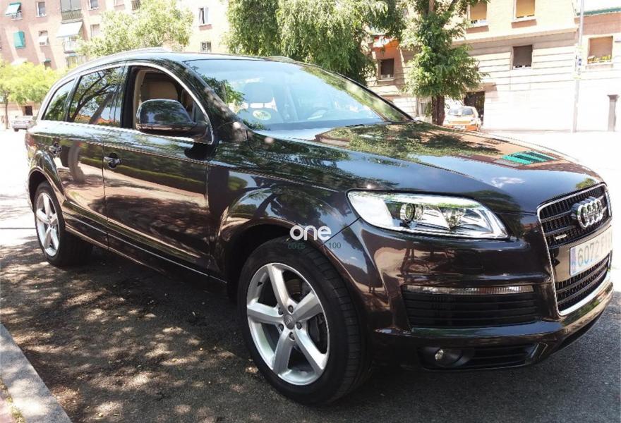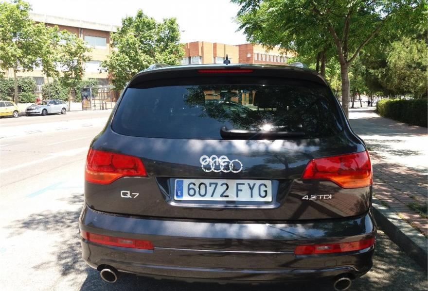 AUDI Q7, Diesel, año 2008, 290000 kilómetros, color Azul metalizado, precio 18000€. Cristales laminado doble+tintado oscuro,Paquete diseño exterior,3ª fila de asientos en cuero (7 plazas),Asientos delanteros calefactables,Asientos confort para la segunda fila en cuero (6 plazas),Asientos delanteros regulación eléctrica,Asientos delanteros y traseros calefactados,Cuero Cricket Beige Cardamomo (salpicadero beige pimienta/beige tara) - Moqueta Fresco,Inseciones en aluminio Marlin plata,Inserciones en madera Tamo marrón oscuro,Paquete cuero,Paquete deportivo S line,Pomo del cambio tiptronic en madera especial,Saco portaesquís,Audi music interface,Bolsa para CD,Equipo audiovisual "RSE Plus",Equipo de sonido BOSE Surround,Preinstalación tfno móvil con bluetooth y apoyabrazos central confort,Receptor de TV analógico y digital,Sistema de navegación con DVD,Astos delanteros eléctricos con memoria para conductor,CD para sistema de navegación,Columna de dirección eléctrica,Control de crucero adaptativo,Control de presión de neumáticos,Cortinilla manual en luneta posterior,Luces de lectura orientables para las plazas traseras Audi exclusive,Luz adaptativa "dynamic adaptive light",Paquete exterior S line,Portón maletero accionamiento automático,Retrovisor anti-deslumbramiento+brújula,Volante deportivo multifuncional + levas,Cristales tintados oscuros,Azul Cobalto (metalizado),Espejos retrovisores antideslumbrantes + memoria,Llantas de aleación 9 x 20 bicolor,Negro Phantom (efecto perla),ISOFIX+desactivador airbag acompañante,Audi parking system plus. Audi Q 7 4.2 Tdi tripme techo Dvd traseros 2.Navegador.xenon parktronic practicamente todos los extras.Increible motor y potencia.