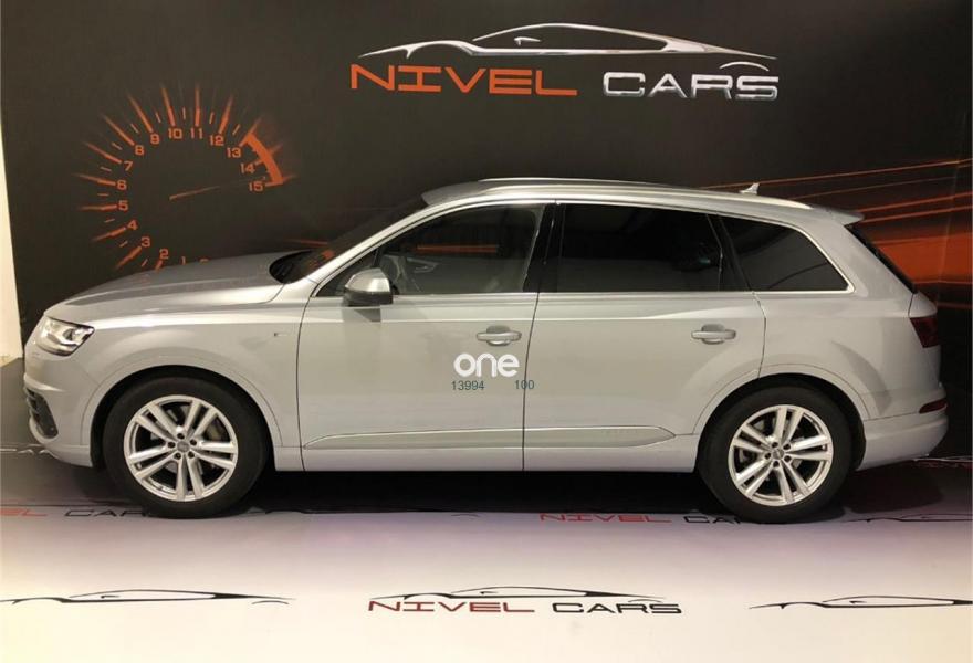 AUDI Q7, Diesel, año 2015, 51000 kilómetros, color Gris / Plata , precio 52800€. 7 PLAZAS, S-LINE INTERIOR Y EXTERIOR, CAMBIO AUTOMÁTICO CON LEVAS EN EL VOLANTE, SUSPENSIÓN NEUMÁTICA, NAVEGADOR MMI, RECONOCIMIENTO DE SEÑALES, ASIENTOS DE PIEL CON REGULACIÓN ELECTRICA, MEMORIA, CALEFACTABLES DELANTEROS Y TRASEROS, TELÉFONO, TAPICERÍA ALCANTARA, BI-XENON, LUZ DIURNA, PARK TRONIC DELANTERO Y TRASERO CON CAMARA DE MARCHA ATRAS, MALETERO ELÉCTRICO, CONTROL DE VELOCIDAD, SENSORES DE LUZ Y LLUVIA, ESPEJOS CON REGULACIÓN ELECTRICA, MUCHOS EXTRAS MÁS.....