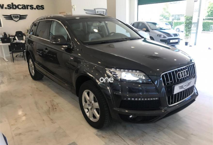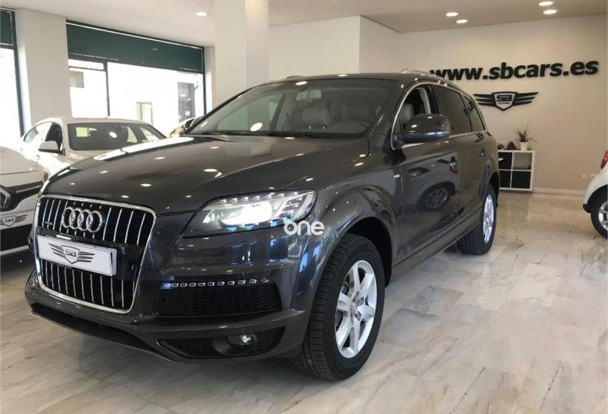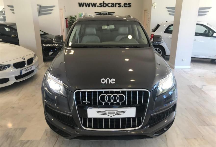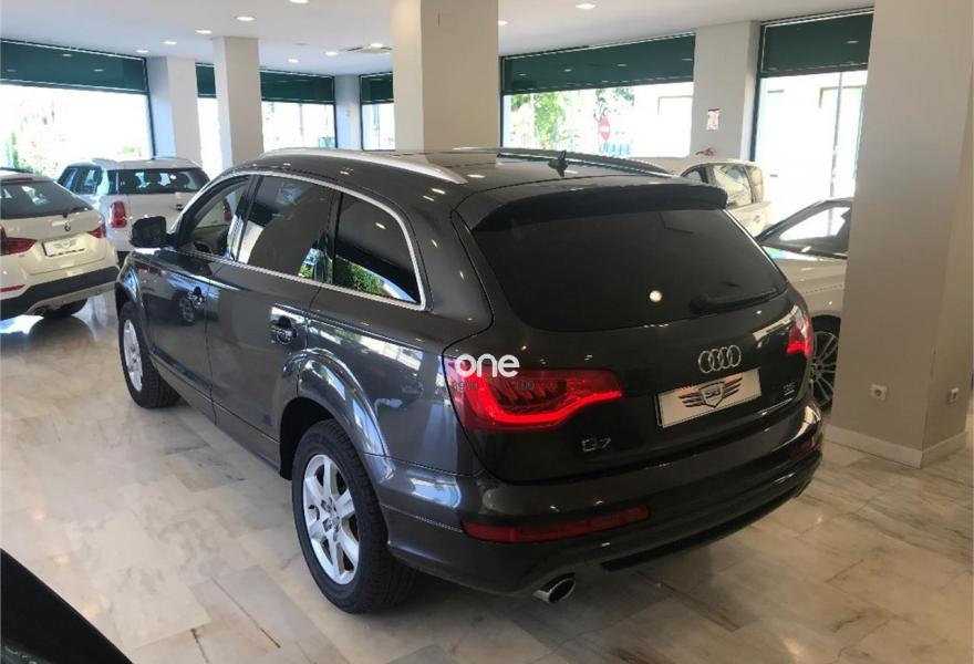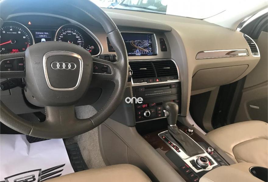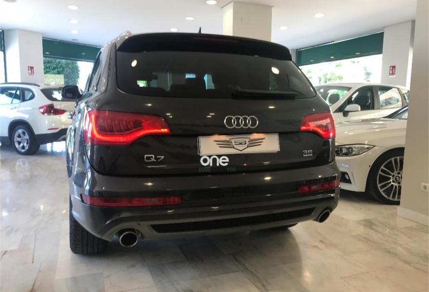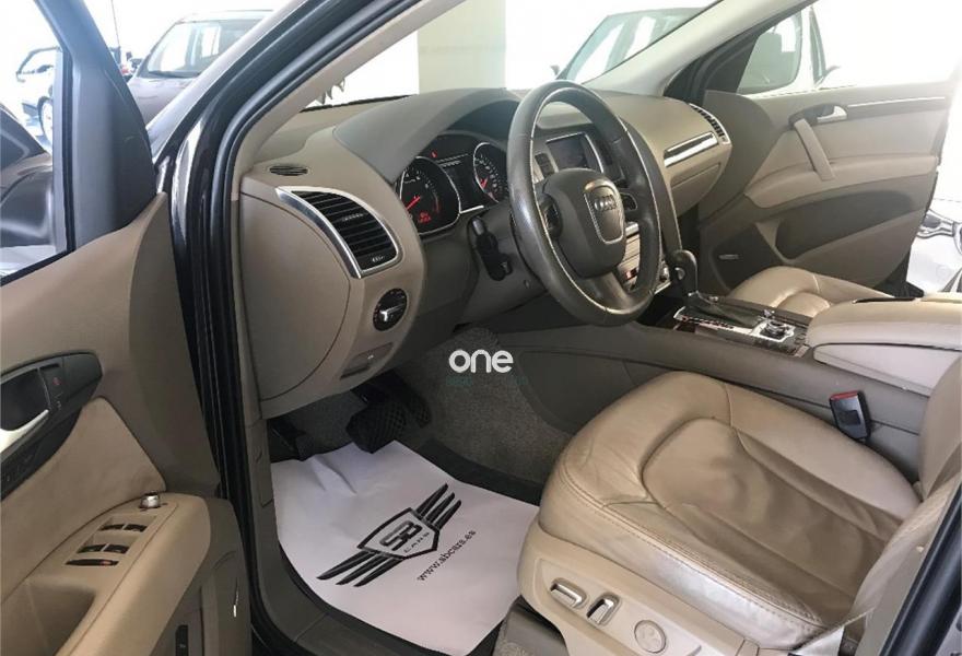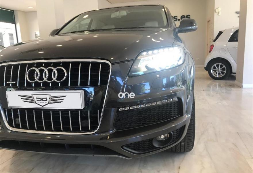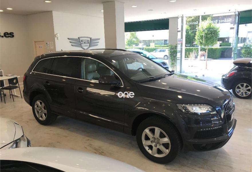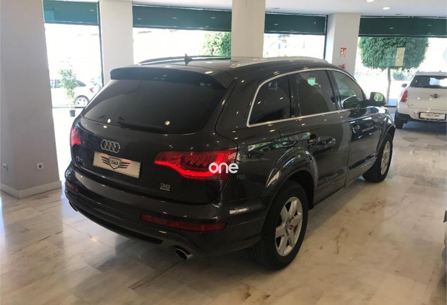 AUDI Q7, Gasolina, año 2009, 179000 kilómetros, color Gris / Plata metalizado, precio 21990€. Audi Q7 3.6 FSI Quattro 280cv Tiptronic 6 velocidades acabado S-Line 7 Plazas con 179.000kms de julio 2009. Nacional. Dos únicos dueño. Revisiones al día. Libro de mantenimiento sellado y facturas de mantenimiento. Lleva cadena. Impecable. Magnífico estado exterior e interior. Equipamiento: Faros Bixenon, Luces Led, Techo panorámico, Parktronic delantero y trasero, Cámara trasera, Navegador, TV, Asientos de piel, Asientos delanteros eléctricos y calefactables con ajuste lumbar, Volante multifunción con levas, Maletero con apertura y cierre eléctrico, Alarma, Bluetooth, Espejos plegables , Cristales tintados, etc... Precio final todo incluido. Incluye cambio de nombre, impuestos e IVA, revisión completa y 12 meses garantía ámbito nacional. Disponemos de financiación a su medida en cómodos plazos al interés más bajo. Recogemos su vehículo a cambio. Certificado de kilometraje. Certificado de ausencia de golpes y siniestros. Visite nuestras instalaciones en c/Manufactura .