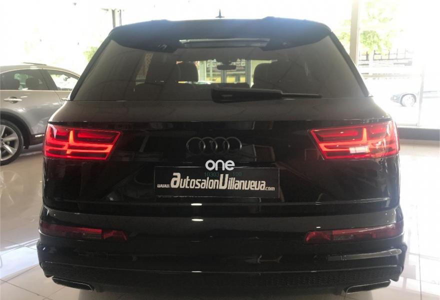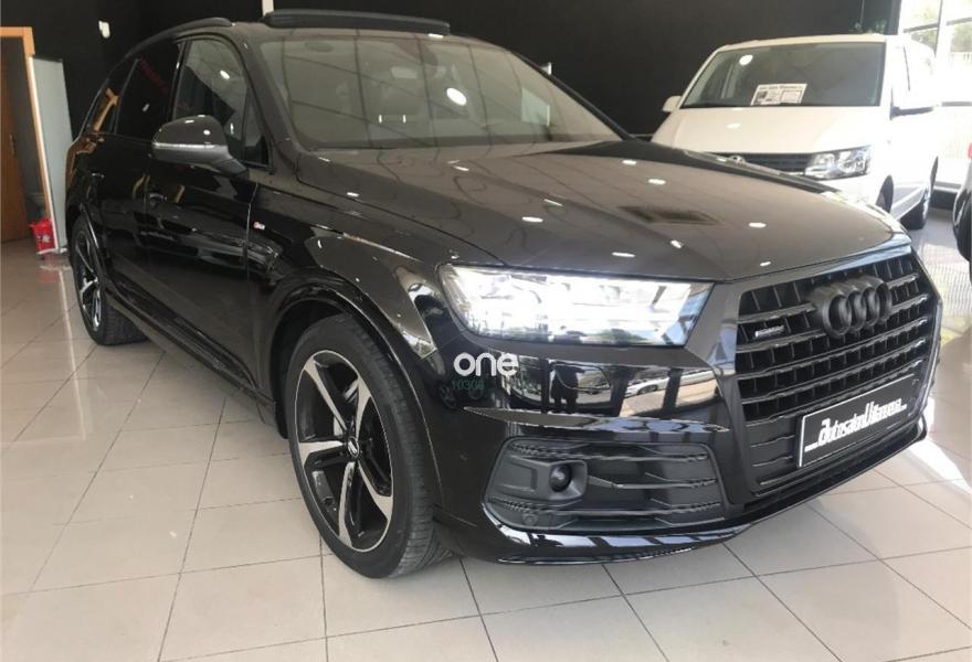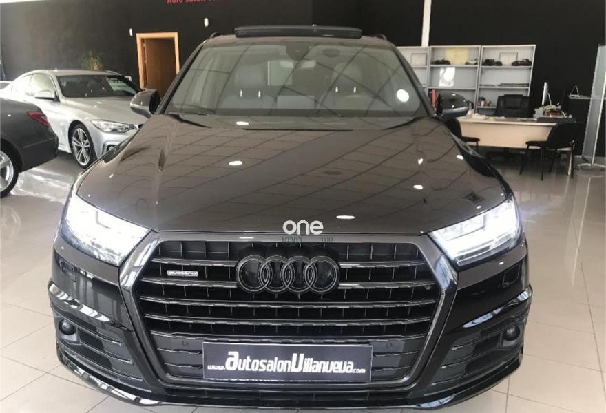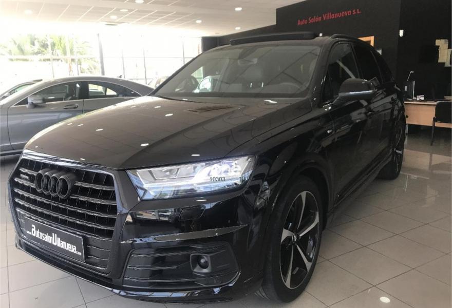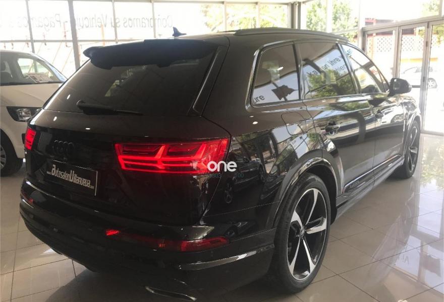 AUDI Q7, Diesel, año 2016, 44000 kilómetros, color Negro metalizado, precio 67900€. Audi Smartphone Interface,Paquete de asistentes City,Paquete de asistentes City con paquete de aparcamiento,Sistema de aviso de límite de velocidad por reconocimiento de señales,Alfombrilla reversible de maletero,Apoyabrazos central delantero de confort,Asientos calefactados delanteros,Asientos delanteros eléctricos confunción memoria para el conductor,Reposacabezas de confort,Tapicería en cuero Valcona con emblemas S line en asientos delanteros,Audi connect,Audi connect: Safety & Service,Audi Smartphone Interface con cambiador DVD,Cargador de 6 DVD / CD,Mando a distancia (HomeLink),MMI Navegación plus con MMI Touch,Receptor de radio digital,Receptor de TV digital y de radio digital,Ajuste eléctrico del volante,Alcantara Cuero S line Negro,Cable USB,Audi phone box,Calefacción/ventilación estacionaria,Climatizador automátco de cuatro zonas,Control de presión de neumáticos plus,Cuero Valcona S line Negro,Eje trasero direccional,Espejos retrovisores exteriores antideslumbrantes automáticos, plegables eléctricamente y con función de memoria,Espejos retrovisores exteriores plegables eléctricamente con función de memoria,Faros Audi Matrix LED,Iluminación de ambiente,Llave de confort,Llave de confort (con alarma),Paquete de cuero,Paquete exterior S line,Sistema de alarma antirrobo,Techo panorámico eléctrico,Volante deportivo de cuero multifuncional de 3 radios con levas de cambio achatado,Capacidad del depósito de 85 l.,Cristal doble insonorizante y aislante delante y tintado detrás,Cristales tintados oscuros,Espejos retrovisores exteriores antideslumbrantes automáticos, plegables eléctricamente,Sin inscripción trasera de modelo y motor,Llantas de aleación 9,5 J x R 21 diseño de 5 radios óptica negro brillante con neumáticos 285/40 R 21,Suspensión neumática adaptativa,Suspensión neumática adaptativa deportiva,Set de reparación de neumáticos,Pre sense basic,Paquete de asistentes de aparcamiento,Cámara de visión trasera,Banqueta trasera plus,Audi parking system plus,Asistente de aparcamiento park assist. Audi q-7 paquete ABT power 3.0D 325cv.TODA LA CARTA DE EXTRAS!!