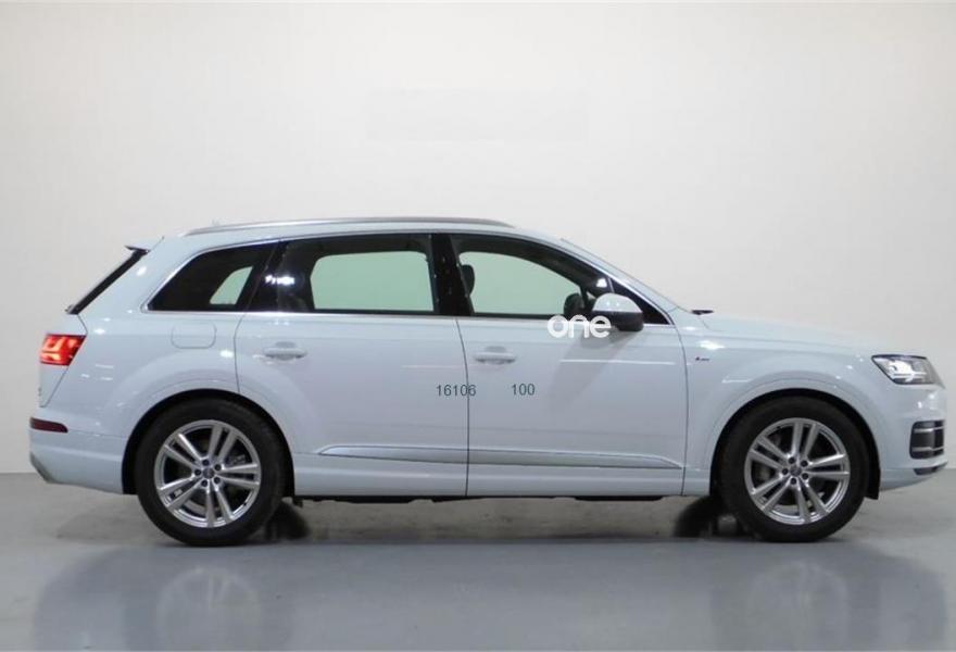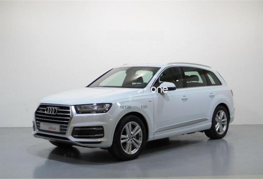 AUDI Q7, Diesel, año 2018, 15999 kilómetros, color Blanco (GLACIAR) metalizado, precio 70700€. Audi Smartphone Interface con cambiador DVD,MMI Navegación plus con MMI Touch,Audi connect con eSIM (3 años),Capacidad del depósito de 85 l.,Alcantara Cuero S line Negro,Volante deportivo de cuero multifuncional de 3 radios con levas de cambio,Faros Audi Matrix LED,Iluminación de ambiente,Climatizador automátco de cuatro zonas,Blanco Glaciar (metalizado),Set de reparación de neumáticos,3ª fila de asientos.