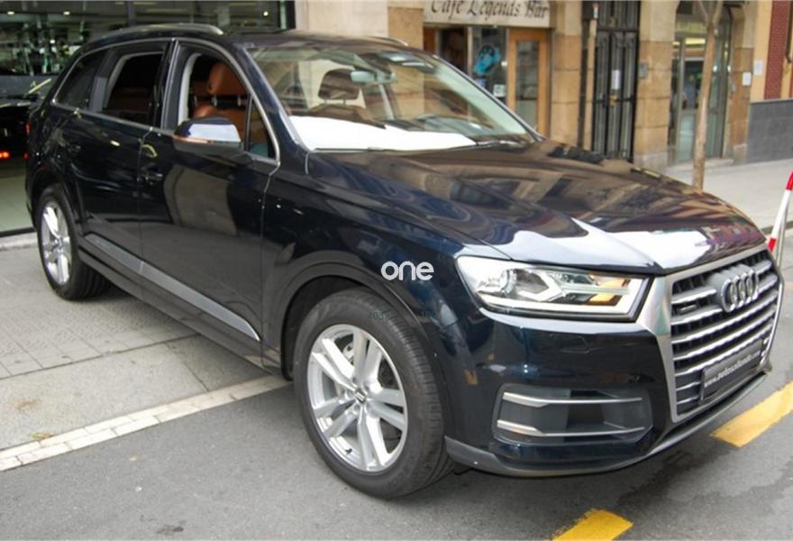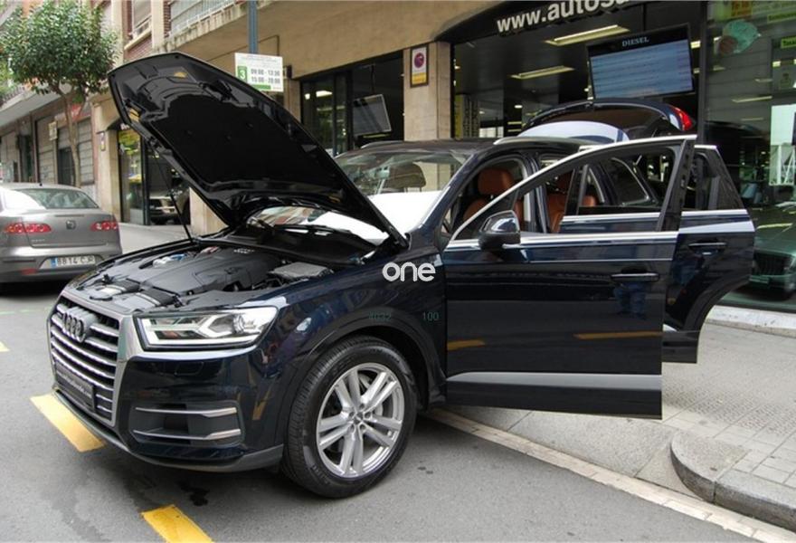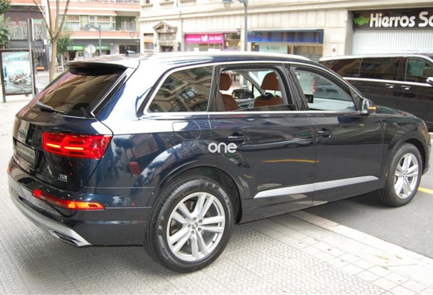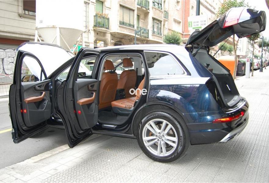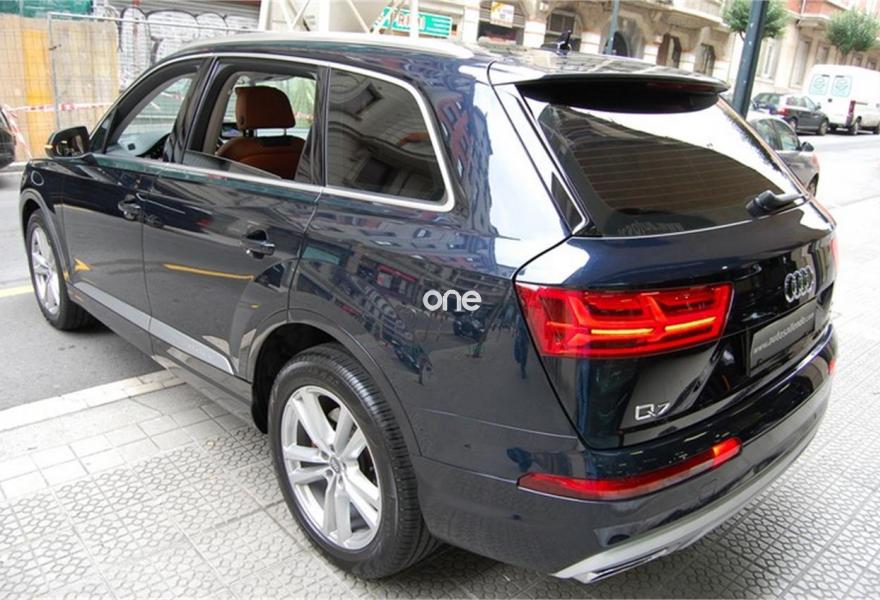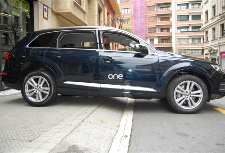 AUDI Q7, Diesel, año 2016, 73450 kilómetros, color Azul metalizado, precio 59999€. Audi Smartphone Interface,Paquete de asistentes City con paquete de aparcamiento,Sistema de aviso de límite de velocidad por reconocimiento de señales,Apoyabrazos central delantero de confort,Asientos calefactados delanteros,Asientos delanteros eléctricos con función memoria para ambos,Paquete fumador,Reposacabezas de confort,Revestimiento interior del techo en Alcantara negro,Superior aluminio cepillado / Beaufort-Aluminio,Tapicería en cuero Valcona con emblemas S line en asientos delanteros,Audi connect,Audi Smartphone Interface con cambiador DVD,Emergency call & MyService,Mando a distancia (HomeLink),MMI Navegación plus con MMI Touch,Receptor de radio digital,Audi phone box,Climatizador automátco de cuatro zonas,Control de presión de neumáticos plus,Cuero Valcona S line Negro,Espejos retrovisores exteriores antideslumbrantes automáticos, plegables eléctricamente y con función de memoria,Espejos retrovisores exteriores plegables eléctricamente con función de memoria,Iluminación de ambiente,Ionizador de aire delantero y trasero,Llave de confort,Llave de confort (con alarma),Paquete de cuero,Paquete de cuero ampliado,Paquete de cuero completo,Paquete exterior S line,Pintura exterior en contraste,Set de fijación para las guías del maletero,Sistema de alarma antirrobo,Capacidad del depósito de 85 l.,Azul Tinta (efecto perla),Barras longitudinales en negro,Cristales tintados oscuros,Espejos retrovisores exteriores antideslumbrantes automáticos, plegables eléctricamente,Llantas de aleación 9J x 20 diseño de 10 radios en Y con neumáticos 285/45 R 20,Pintura efecto perla,Pintura metalizada,3ª fila de asientos,Suspensión neumática adaptativa,Audi active lane assist,Paquete de asistentes Tour,Banqueta trasera plus,Cámara de visión trasera,Paquete de asistentes de aparcamiento. DISPONIBLE EN NUESTRA EXPOSICIÓN DEL CENTRO DE BILBAO PARA SU ENTREGA INMEDIATA.