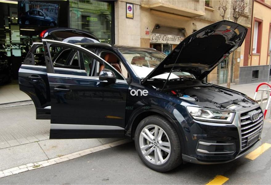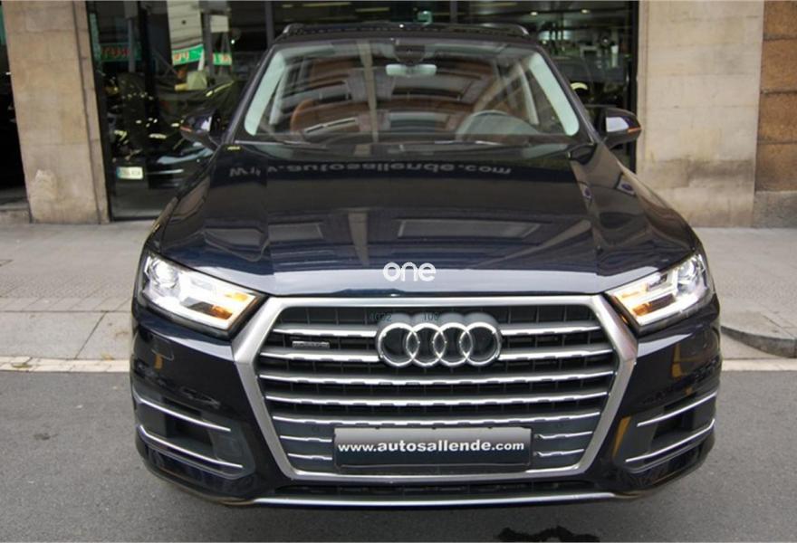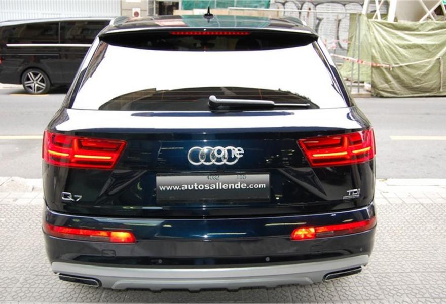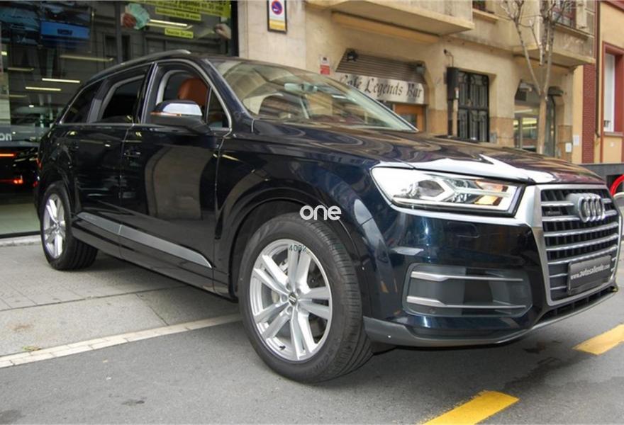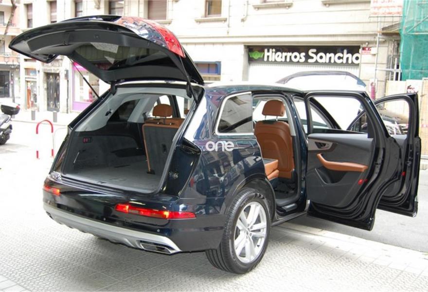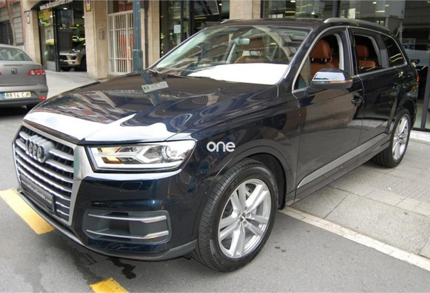 AUDI Q7, Diesel, año 2016, 73450 kilómetros, color Azul metalizado, precio 59999€. Audi Smartphone Interface,Paquete de asistentes City con paquete de aparcamiento,Sistema de aviso de límite de velocidad por reconocimiento de señales,Apoyabrazos central delantero de confort,Asientos calefactados delanteros,Asientos delanteros eléctricos con función memoria para ambos,Paquete fumador,Reposacabezas de confort,Revestimiento interior del techo en Alcantara negro,Superior aluminio cepillado / Beaufort-Aluminio,Tapicería en cuero Valcona con emblemas S line en asientos delanteros,Audi connect,Audi Smartphone Interface con cambiador DVD,Emergency call & MyService,Mando a distancia (HomeLink),MMI Navegación plus con MMI Touch,Receptor de radio digital,Audi phone box,Climatizador automátco de cuatro zonas,Control de presión de neumáticos plus,Cuero Valcona S line Negro,Espejos retrovisores exteriores antideslumbrantes automáticos, plegables eléctricamente y con función de memoria,Espejos retrovisores exteriores plegables eléctricamente con función de memoria,Iluminación de ambiente,Ionizador de aire delantero y trasero,Llave de confort,Llave de confort (con alarma),Paquete de cuero,Paquete de cuero ampliado,Paquete de cuero completo,Paquete exterior S line,Pintura exterior en contraste,Set de fijación para las guías del maletero,Sistema de alarma antirrobo,Capacidad del depósito de 85 l.,Azul Tinta (efecto perla),Barras longitudinales en negro,Cristales tintados oscuros,Espejos retrovisores exteriores antideslumbrantes automáticos, plegables eléctricamente,Llantas de aleación 9J x 20 diseño de 10 radios en Y con neumáticos 285/45 R 20,Pintura efecto perla,Pintura metalizada,3ª fila de asientos,Suspensión neumática adaptativa,Audi active lane assist,Paquete de asistentes Tour,Banqueta trasera plus,Cámara de visión trasera,Paquete de asistentes de aparcamiento. DISPONIBLE EN NUESTRA EXPOSICIÓN DEL CENTRO DE BILBAO PARA SU ENTREGA INMEDIATA.