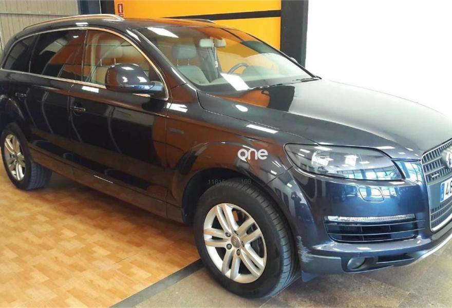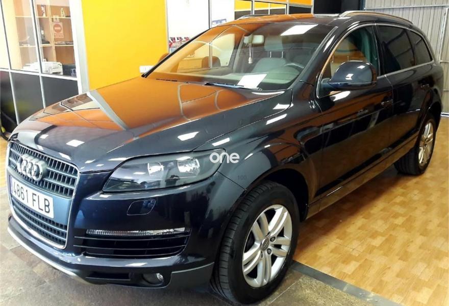 AUDI Q7, Diesel, año 2007, 199000 kilómetros, color Gris / Plata metalizado, precio 13900€. Cristales laminado doble+tintado oscuro,Alfombrilla maletero reversible,Apoyabrazos central delantero confort,Asientos confort segunda fila (cuero),Asientos delanteros calefactables,Asientos delanteros regulación eléctrica,Asientos delanteros regulación lumbar,Inseciones en aluminio Marlin plata,Intercambiador de CD para MMI basic plus,Sistema de navegación con DVD,Sistema información FIS+pantalla a color,Climatizador confort 4 zonas,Control automático de nivel de faros,Gris Cuarzo (metalizado),Suspensión neumática adaptativa,Audi parking system plus. Perfecto estado, totalmente nuevo, 12 meses de garantia,mucho equipo techo panorámico , faros de xenon, cuero, navegación mmi color, etc..., atiendo todos los dias solo con cita previa..