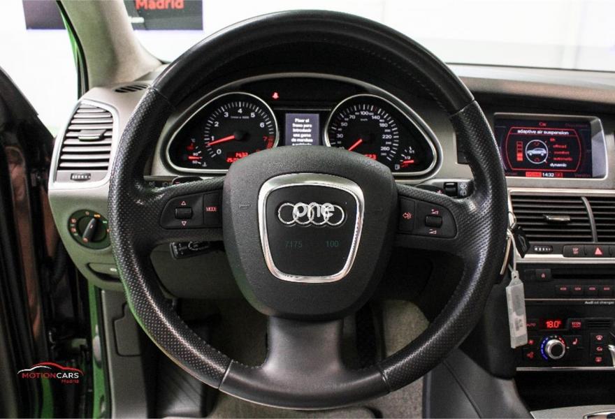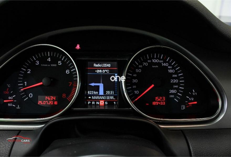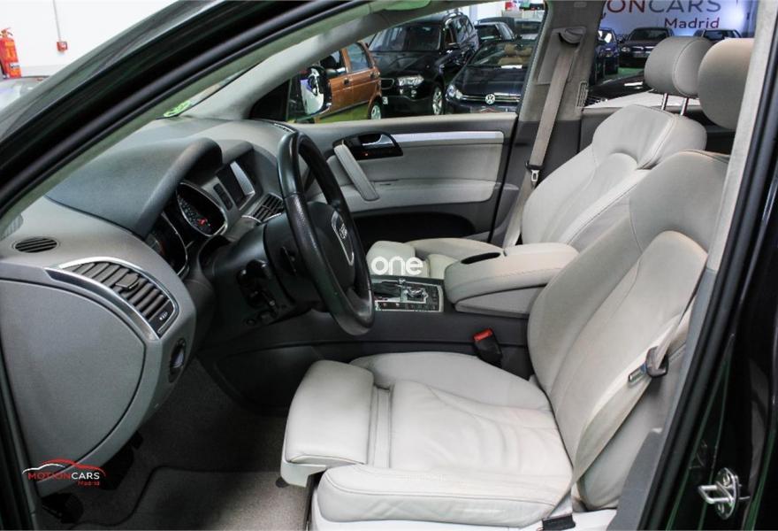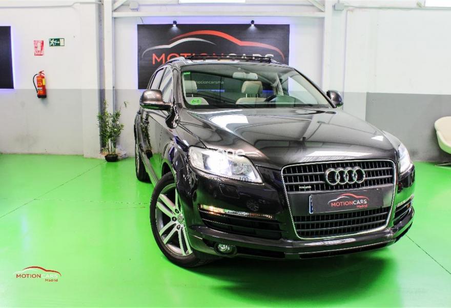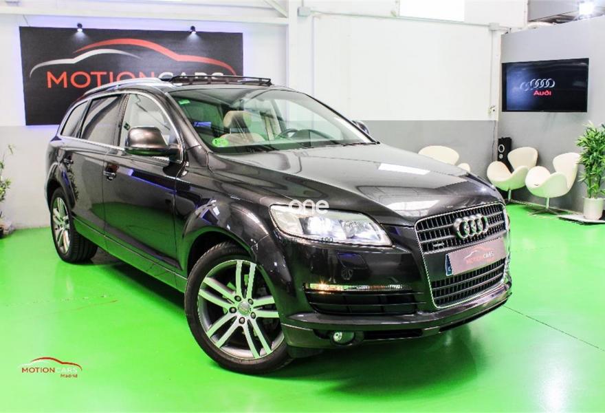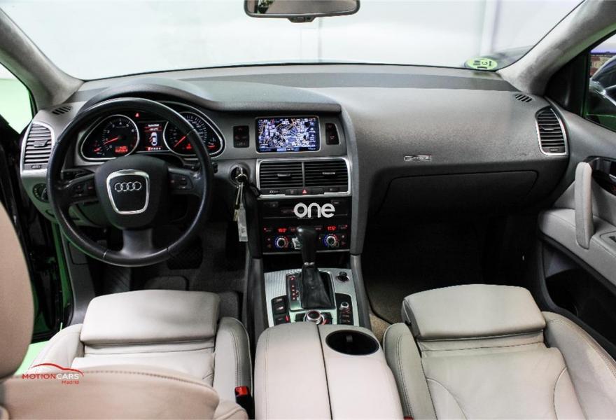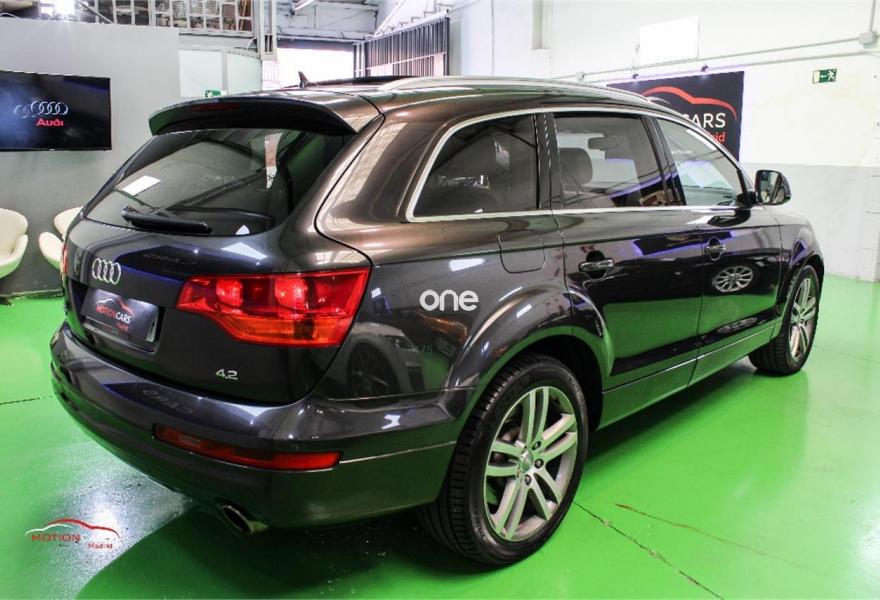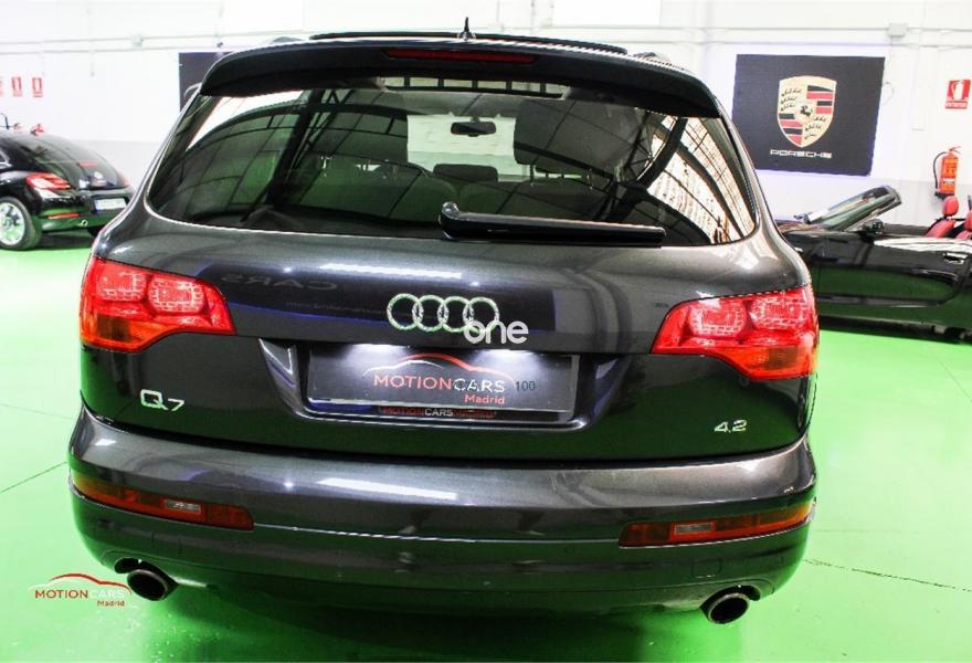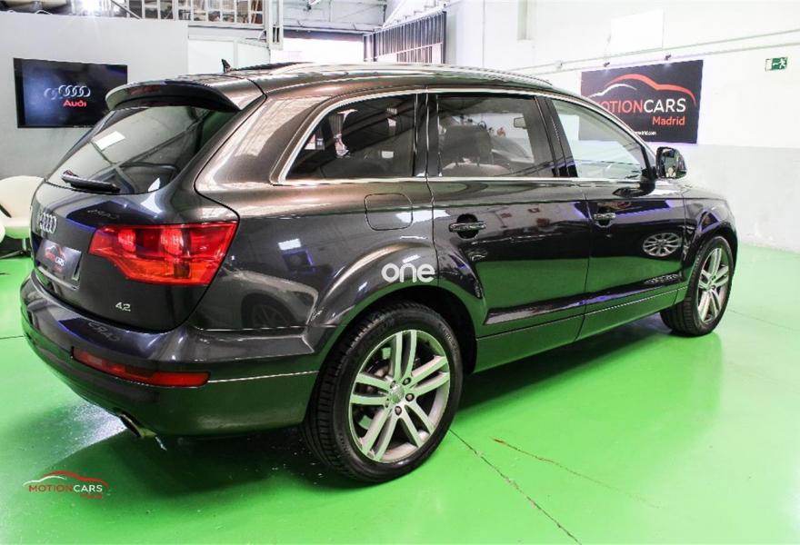 AUDI Q7, Gasolina, año 2006, 189000 kilómetros, color Gris / Plata metalizado, precio 16000€. 3ª fila de asientos,Asientos confort para la segunda fila,Paquete diseño sport,Regulación longitudinal 2ª fila asientos,Revestimiento interior techo alcantara,Equipo de sonido BOSE Surround,Mando a distancia (Homelink),MMI,Preinstalación tfno móvil+bluetooth,Sistema de navegación con DVD,Sistema información FIS+pantalla a color,Teléfono Audi Bluetooth GSM,Astos del eléctricos+memoria conductor,Astos delanteros eléctricos+memoria,Climatizador confort 4 zonas,Columna de dirección eléctrica,open sky system,Retrovisor anti-deslumbramiento+brújula,Portón maletero accionamiento automático,Retrovisores antideslumbrantes+memoria,Sistema apertura y arranque sin llave,Volante deportivo con levas para cambio,Volante deportivo m-funcional+levas,Volante deportivo multifuncional,Gris Lava (efecto perla),Llantas de aleación 9 x 20 5 brazos,Suspensión neumática adaptativa,Audi parking system plus,Audi parking system advanced,ISOFIX+desactivador airbag acompañante. AUDI Q7 4.2 FSI 350cv 7 plazas