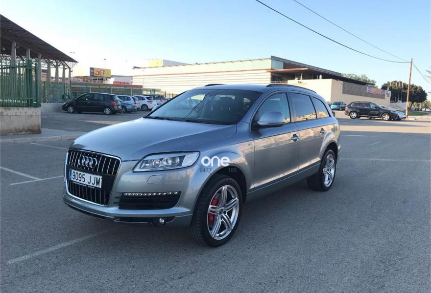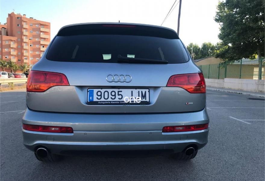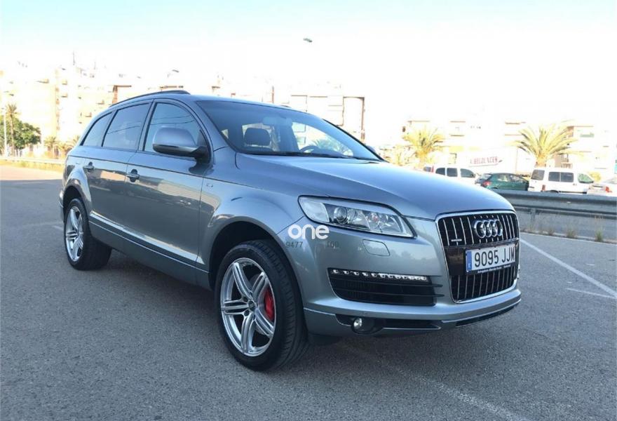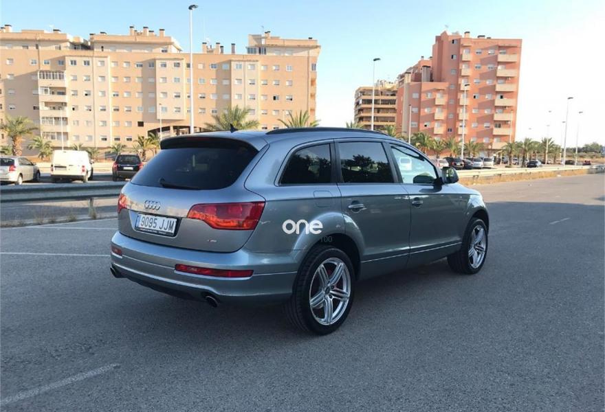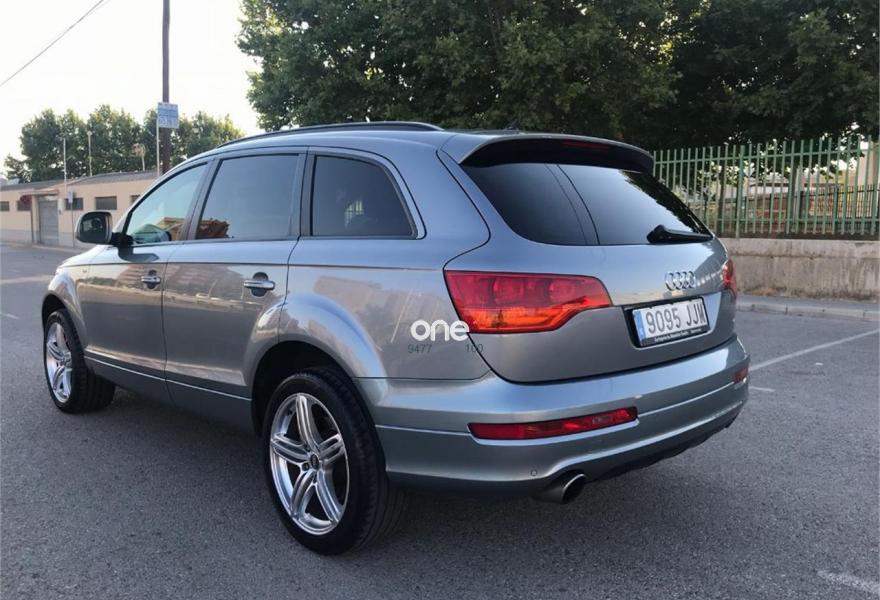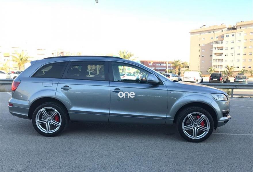AUDI Q7, Diesel, año 2007, 180000 kilómetros, color Azul metalizado, precio 16500€. Cristales laminado doble+tintado oscuro,lane assist + side assist,Receptor TV analógico digital+DAB,3ª fila de asientos (cuero),Alcántara/Cuero Negro,Alcántara/Cuero Negro - S Line,Alfombrilla maletero reversible,Apoyabrazos central delantero confort,Asientos confort segunda fila (cuero),Asientos delanteros calefactables,Asientos delanteros regulación eléctrica,Asientos delanteros regulación lumbar,Audi exclusive line,Audi exclusive line con asientos deport.,Cuero Verano Negro,Cuero Verano Negro - S Line,Moqueta piso en color especial Audi exc.,Paq diseño cuero plus con as. deportivos,Paquete deportivo S line,Paquete diseño sport,Tapicería de cuero Verano para S line,Audi music interface,Equipo de sonido BOSE Surround,MMI,Preinstalación tfno móvil+bluetooth,Radio Digital DAB,Sistema de navegación con CD,Teléfono Audi Bluetooth GSM,Calefacción/ventilación programable,CD para sistema de navegación,Climatizador confort 4 zonas,Columna de dirección eléctrica,Control automático de nivel de faros,Control automático de velocidad,Control de crucero adaptativo,Control de presión de neumáticos,Cortinilla manual en luneta posterior,Luz adaptativa "dynamic adaptive light",Paquete cuero,Paquete cuero plus,Paquete exterior S line,Pintura de contraste,Portón maletero accionamiento automático,Volante 4 radios multifuncional + levas,Volante deportivo con levas para cambio,Volante deportivo multifuncional,Volante deportivo multifuncional S line,Volante multifuncional con levas S line,Azul Cobalto (metalizado),Cristales con laminado doble,Cristales tintados oscuros,Neumáticos todo terreno 235/60 R18,Pintura metalizada,Retrovisores exter plegables con memoria,Suspensión deportiva S line,Suspensión neumática adaptativa,lane assist (asistente mantenim. carril),Audi parking system plus,Audi parking system trasero,ISOFIX+desactivador airbag acompañante. SE VENDE AUDI Q7 STRONIC QUATTRO DEL AÑO 2007, VEHÍCULO PROCEDENTE DE UN CONCESIONARIO EN PERFECTAS CONDICIONES TANTO MOTOR, INTERIOR COMO EXTERIOR.