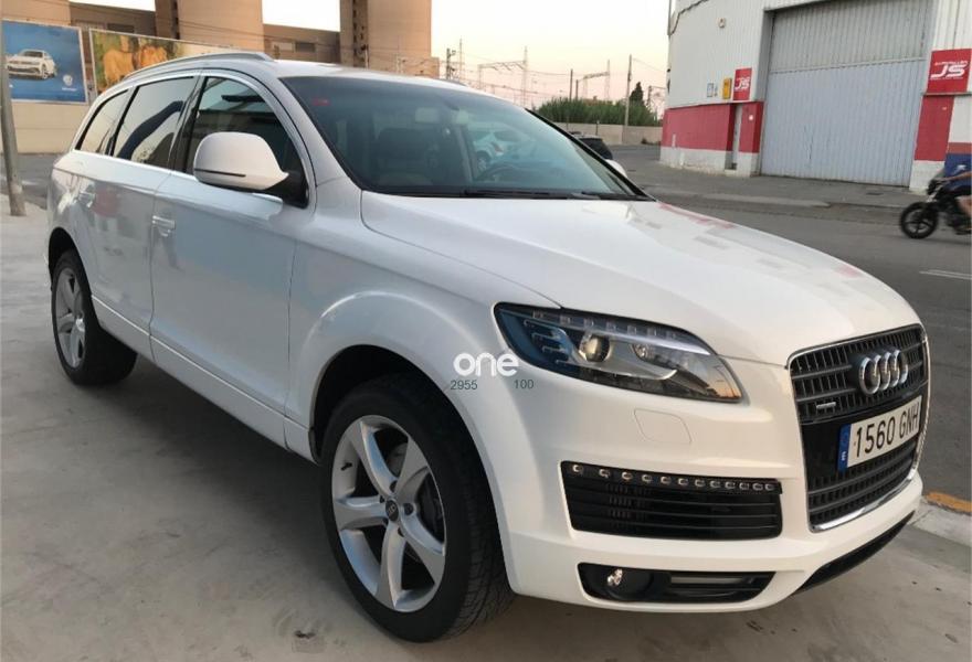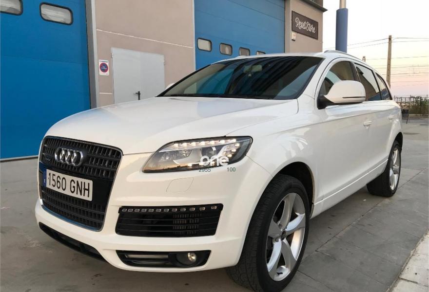 AUDI Q7, Diesel, año 2007, 156000 kilómetros, color Blanco metalizado, precio 16400€. Coche en perfectas condiciones! como extra lleva morro de serie 2011 con leds bi xenón e intermitentes largos, faros traseros 2011, navegador piel llantas 20 pulgadas! entrego revisado con facturas! itv recien pasada! mejor ver y probar acepto coche como parte de pago!.