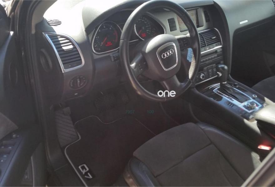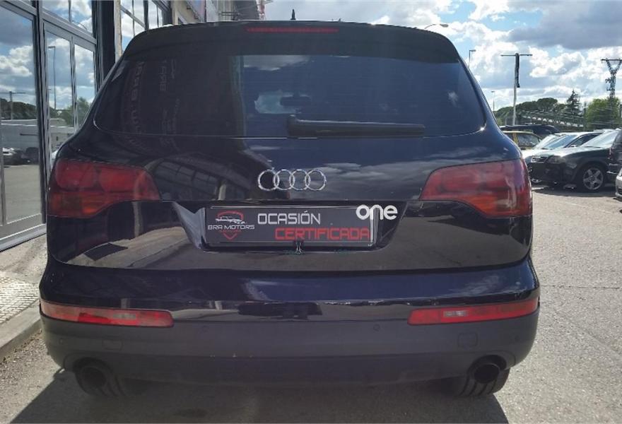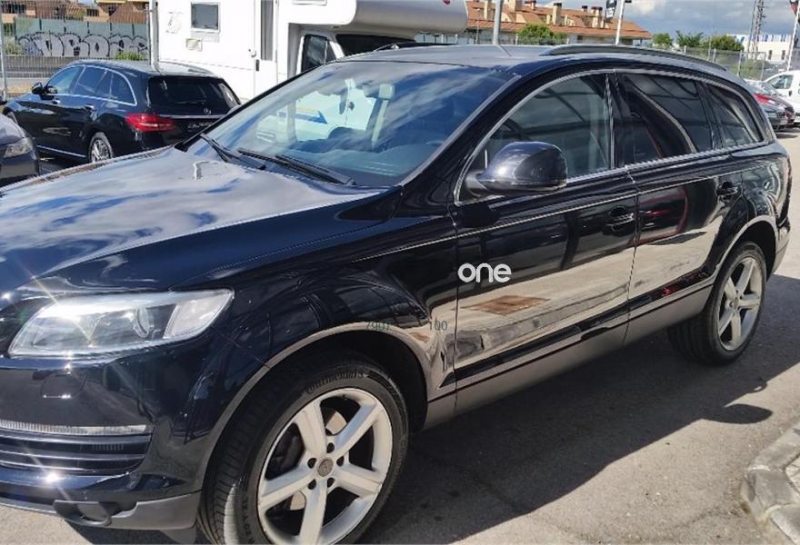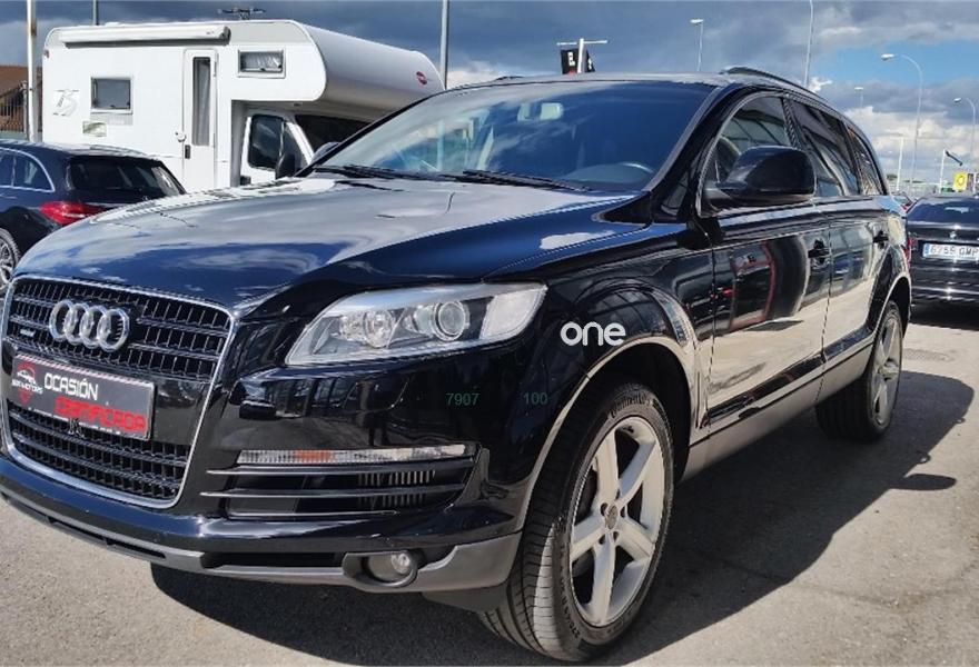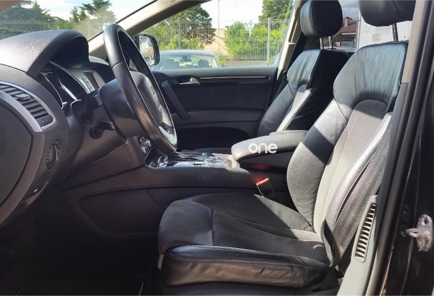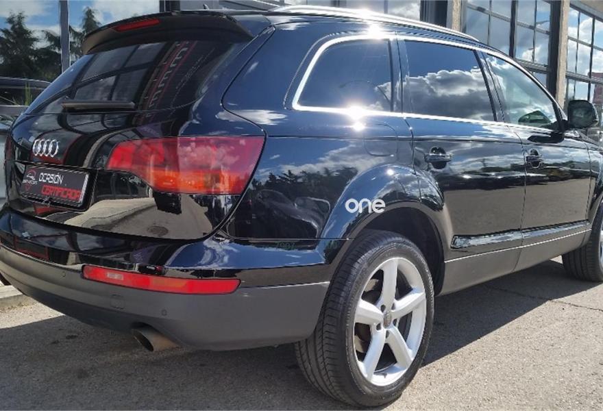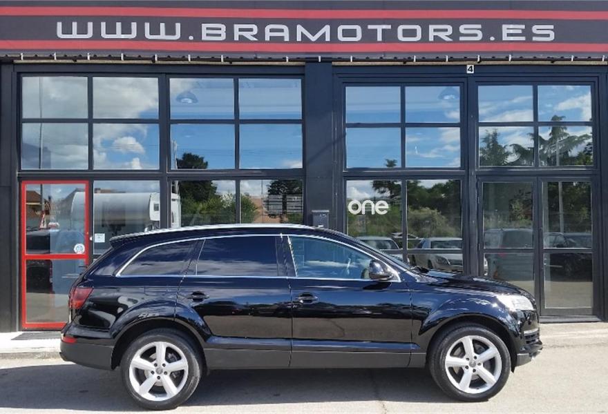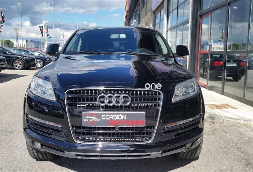 AUDI Q7, Diesel, año 2008, 179000 kilómetros, color Negro metalizado, precio 16950€. Cristales laminado doble+tintado oscuro,Alcantara/Cuero Negro (S line),Apoyabrazos central delantero confort,Asientos delanteros calefactables,Asientos delanteros con regulación lumbar eléctrica,Asientos delanteros regulación eléctrica,Inserciones interiores en aluminio cepillado mate,Mesas abatibles,Paquete deportivo S line,Paquete portaobjetos,Regulación longitudinal 2ª fila de asientos,Revestimiento del techo de tela de color negro,Tapicería de Alcantara/cuero color negro S line,Equipo audiovisual "RSE Plus",Intercambiador de CD para MMI basic plus,MMI,Sistema de navegación con DVD,CD para sistema de navegación,Control automático de velocidad,Control de presión de neumáticos,Luz adaptativa "dynamic adaptive light",Paquete exterior S line,Volante deportivo de 3 radios multifuncional,Cristales con laminado doble,Cristales tintados oscuros,Espejos exteriores retrovisores antideslumbrantes automáticos y plegables eléctricamente,Llantas de aleación 9Jx20 5 brazos con neumáticos 275/45 R20,Negro Phantom (efecto perla),Sin inscripción trasera de cilindrada,Sin inscripción trasera de modelo y cilindrada,Suspensión deportiva S line,Audi parking system plus,Fijación para asientos infantiles ISOFIX y desactivador del airbag del acompañante,Tyre mobility system. Vehículo PREMIUN, Unico propietario, IMPECABLE estado, con libro de mantenimiento, última revisión recién efectuada.