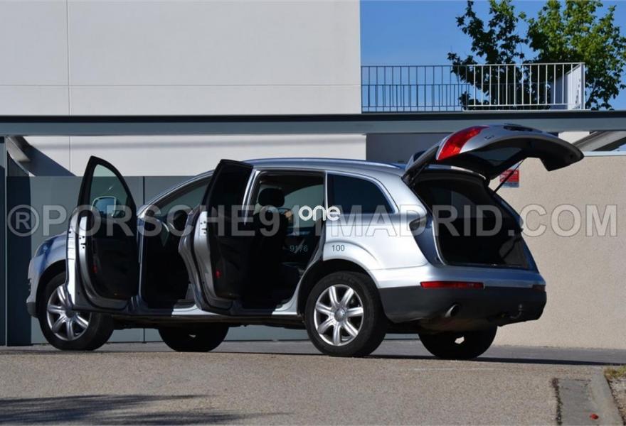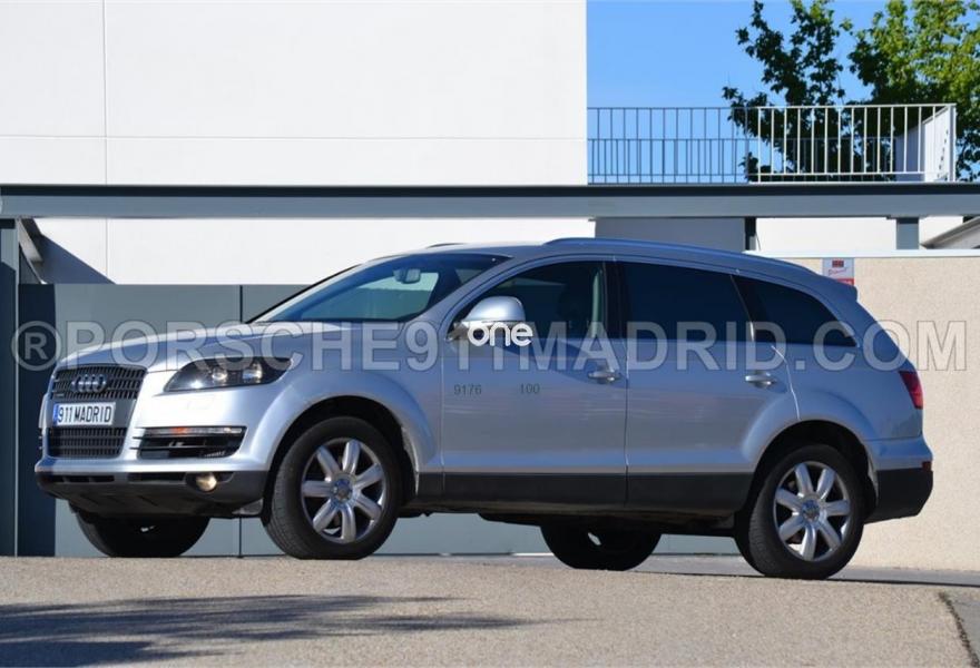 AUDI Q7, Diesel, año 2007, 149700 kilómetros, color Gris / Plata metalizado, precio 13990€. Cristales laminado doble+tintado oscuro,Alfombrillas en color especial Audi exc.,Apoyabrazos central delantero confort,Asientos confort segunda fila (cuero),Cubremaletero plegable,Cuero Cricket Negro,Inseciones en aluminio Marlin plata,Moqueta piso en color especial Audi exc.,Paquete diseño cuero,Paquete portaobjetos,Parasoles dobles de confort,Saco portaesquís,Audi music interface,Bolsa para CD,Intercambiador de CD para MMI basic plus,MMI,Preinstalación tfno móvil+bluetooth,Radio Digital DAB,Sistema de navegación con CD,Sistema información FIS+pantalla a color,Teléfono Audi Bluetooth GSM,Calefacción/ventilación programable,CD para sistema de navegación,Climatizador confort 4 zonas,Control automático de nivel de faros,Control automático de velocidad,Control de crucero adaptativo,Control de presión de neumáticos,Elementos de control en cuero especial,Luz adaptativa "dynamic adaptive light",Moldura umbral puertas inserciones metal,Paquete cuero,Retrovisor interior anti-deslumbramiento,Set de fijación para maletero,Volante deportivo multifuncional,Gris Cóndor (metalizado),Llantas de aleación 8,5 x 19 "Struktur",Pintura metalizada,Plata Hielo (metalizado),Audi parking system plus,ISOFIX+desactivador airbag acompañante. LIBRO TOTALMENTE SELLADO,(REVISIÓN DE 4.000eur.) CUATRO RUEDAS NUEVAS,DISCOS DE FRENOS NUEVOS,TRANSFER Y DIFERENCIALES RECIÉN DESMONTADOS Y CON PLAN DE MANTENIMIENTO AUDI, ETC,,, ES NUESTRO VEHICULO PARTICULAR DE USO EN FIN DE SEMANA (PORSCHE911MADRID.COM).NOS DEDICAMOS A PORSCHE DESDE 1.990 PERO USAMOS Q7 COMO NUESTRO VEHICULO PRIVADO. RECIEN REVISADO LONG LIFE PARA 30.000KM E ITV RECIENTE,GAS DEL CLIMA RECIEN CARGADO,ETC.GANCHO DE REMOLQUE DESMONTABLE (Solo se ha usado dos veces para moto de trial de 80kg),CUERO EN ESTADO OPTIMO Y SIN DESGASTES DE BOTONES Y EMBELLECEDORES,GPS,XENON,TELEFONO MANOS LIBRES AUDI Y MUSICA POR BLUETOOTH, ETC...VAMOS A BUSCAR AL COMPRADOR AL AVE/AEROPUERTO, DEJAMOS EL VEHICULO ASEGURADO PARA SU REGRESO POR CARRETERA,SE ENTREGA INFORME DE LA DGT CON KILOMETRAJE CERTIFICADO AÑO A AÑO. SOLO LLAMADAS DE TELÉFONO POR FAVOR,LE INVITAMOS A ENTRAR EN LA SECCIÓN DE TALLER DE NUESTRA WEB OFICIAL PARA QUE COMPRUEBE NUESTRO PROTOCOLO DE REVISIONES PRE-VENTA..