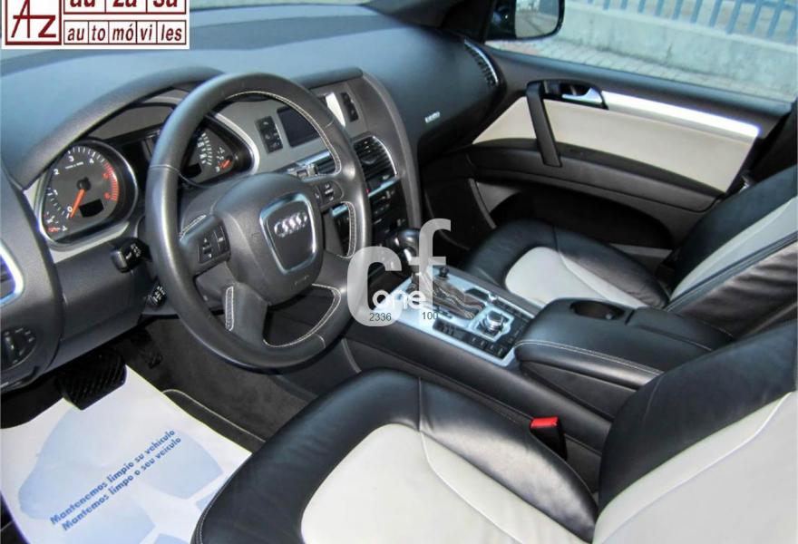 AUDI Q7, Diesel, año 2009, 118000 kilómetros, color Negro metalizado, precio 24600€. Paquete técnico,Apoyabrazos central delantero confort,Alfombrillas en color especial Audi exclusive,Asientos delanteros con regulación lumbar eléctrica,Asientos delanteros regulación eléctrica,Audi exclusive line,Audi exclusive line con asientos deportivos,Cuero Napa Fina Asientos Blanco/Negro - Audi exclusive,Inserciones interiores en aluminio cepillado mate,Moqueta del piso en color especial Audi exclusive,Paquete cuero plus Audi exclusive,Paquete diseño cuero plus Audi exclusive con asientos deportivos,Paquete portaobjetos,Equipo audiovisual "RSE" para asientos traseros,Intercambiador de CD para MMI basic plus,MMI,Preinstalación tfno móvil con bluetooth y apoyabrazos central confort,Teléfono Audi Bluetooth GSM,Climatizador de confort de 4 zonas,Control automático de velocidad,Cortinilla manual en luneta posterior y en ventanillas traseras,open sky system,Portón maletero accionamiento automático,Preparación para equipo RSE (Accesorios),Retrovisor interior anti-deslumbramiento,Sistema de control por voz,Espejos exteriores retrovisores antideslumbrantes automáticos y plegables eléctricamente,Llantas de aleación 8,5 x 18 5 radios dobles,Pintura personalizada Audi exclusive,Pintura efecto perla,Audi parking system plus,Fijación para asientos infantiles ISOFIX y desactivador del airbag del acompañante. p.v.p Nuevo: 78.800 €