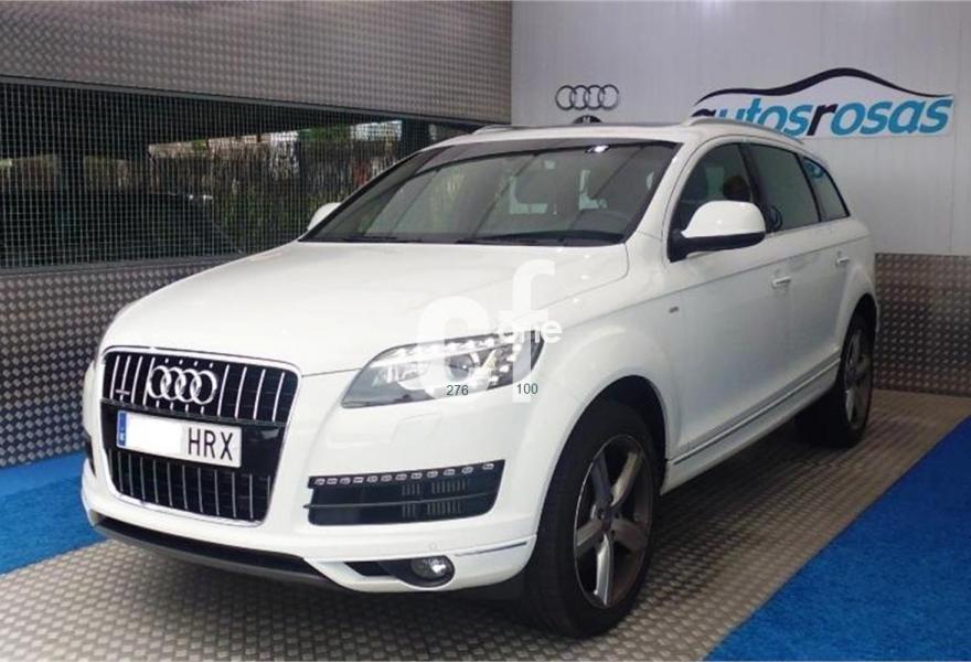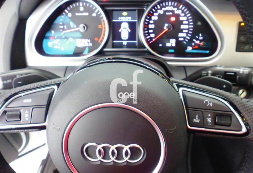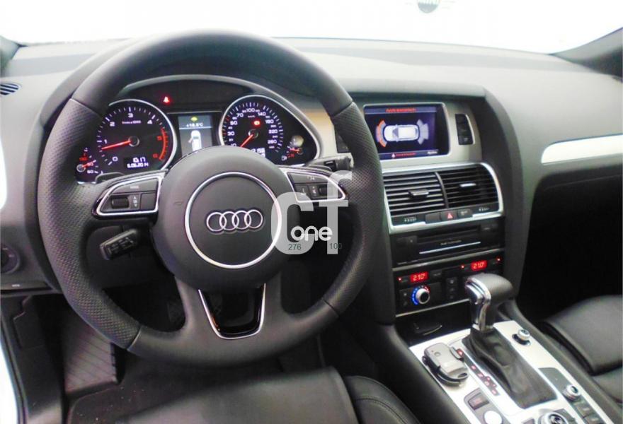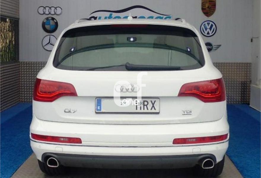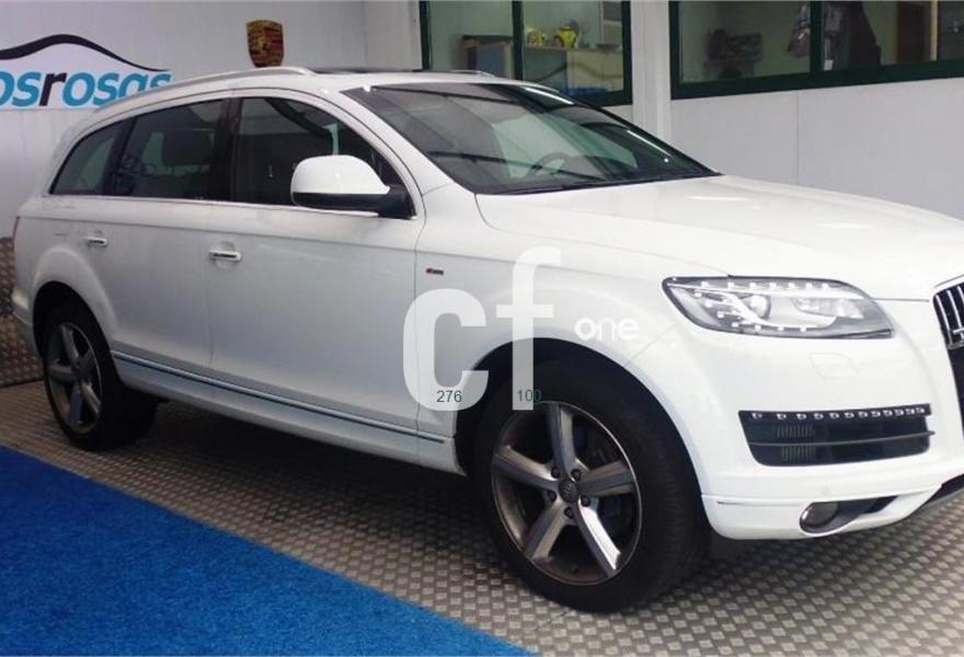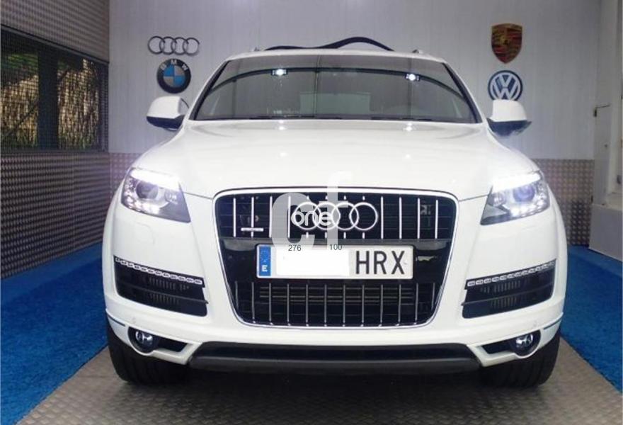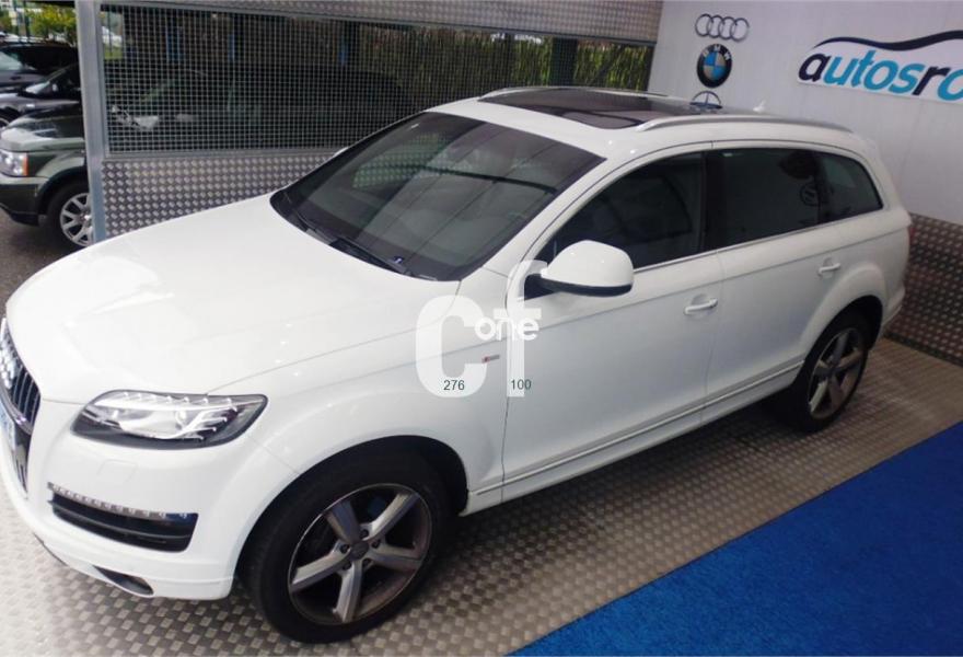 AUDI Q7, Diesel, año 2013, 13000 kilómetros, color Blanco , precio 49000€. Regulación longitudinal 2ª fila de asientos,Tapicería de cuero Verano color negro S line,Intercambiador de CD con MMI navegación plus,Teléfono Audi Bluetooth GSM,3ª fila de asientos en cuero (7 plazas),Climatizador de confort de cuatro zonas,Control de crucero adaptativo,Control de presión de los neumáticos,Cortinilla manual en luneta posterior y en las ventanillas traseras,Cuero Verano Negro- Asientos Deportivos - Moqueta Velours,Luz adaptativa "dynamic adaptive light",Open sky system,Paquete cuero advanced,Espejos retrovisores exteriores antideslumbrantes automáticos y plegables eléctricamente,Llantas de aleación 9J x 20 diseño de 5 brazos en óptica titanio con neumáticos 275/45 R 20 (Audi exclusive),Paquete exterior S line,Audi parking system plus,Fijación para asientos infantiles ISOFIX y desactivador del airbag del acompañante. Vehículo vendido, para solicitar presupuesto de su Audi Q7, por favor póngase en contacto con nosotros. .