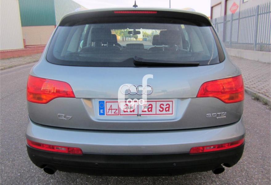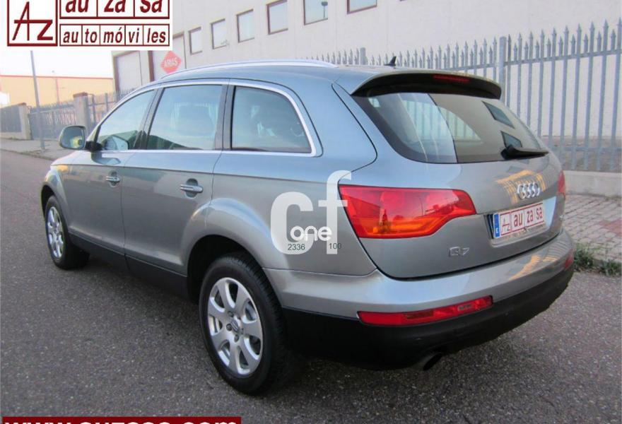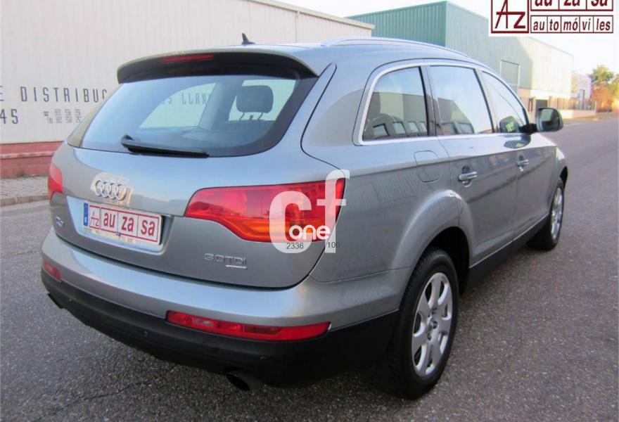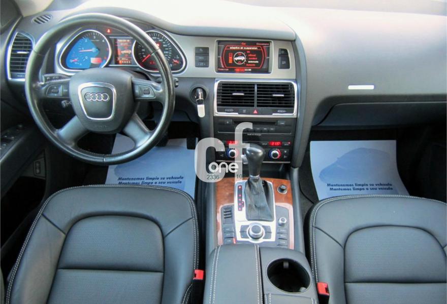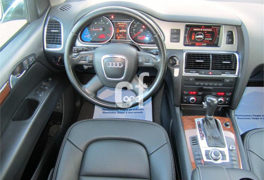 AUDI Q7, Diesel, año 2007, 118000 kilómetros, color Gris / Plata (GRIS PLOMO metalizado) metalizado, precio 26500€. Apoyabrazos central delantero confort,Moqueta piso en color especial Audi exc.,Paquete diseño cuero,Paquete portaobjetos,MMI,Intercambiador de CD para MMI basic plus,Sistema de navegación con DVD,Sistema información FIS+pantalla a color,Teléfono Audi Bluetooth GSM y auricular,Control automático de velocidad,Faros de xenón plus,Lavafaros,Luz adaptativa "dynamic adaptive light",Luz de marcha diurna,Paquete cuero plus,Retrovisor interior anti-deslumbramiento,side assist (asistente cambio de carril),Sistema de control por voz,Cristales con laminado doble,Espejos retrovisores antideslumb. plegab,Gancho remolque bola ocultable eléctrico,Llantas de aleación 8J x 18 7 brazos,Pintura metalizada,Suspensión neumática adaptativa,Audi parking system advanced,ISOFIX+desactivador airbag acompañante,Cuero Verano Negro. P.V.P nuevo: 77.000 €