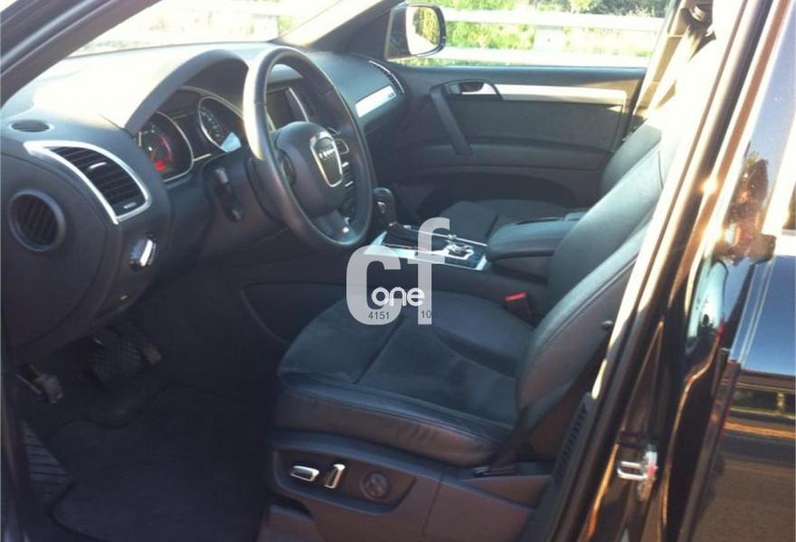 AUDI Q7, Diesel, año 2010, 52000 kilómetros, color Negro , precio 39200€. Cristales con laminado doble y tintado oscuro,Inserciones interiores en aluminio cepillado mate,Tapicería de cuero Verano color negro S line,MMI Navigation con DVD,Faros inteligentes "smart beam",Open sky system,Retrovisor interior con regulación anti-deslumbramiento automática con brújula,Llantas de aleación 10J x 21 diseño de 7 radios dobles pulidas brillantes con neumáticos 295/35 R 21 (Audi exclusive),Audi parking system advanced,Audi parking system plus,Audi parking system trasero,Fijación para asientos infantiles ISOFIX y desactivador del airbag del acompañante. Vehiculo nacional con completo historia en AUDI españa....modelo 2010de 245 cv con fecha de primera matriculacion en diciembre del 2009.Acabado interior y exterior SLINE....Vehiculo con IVA deducible en factura.....demostracion fisica sin compromiso posibilidad de financiacion en santander CONSUMER en hasta 5 años.....