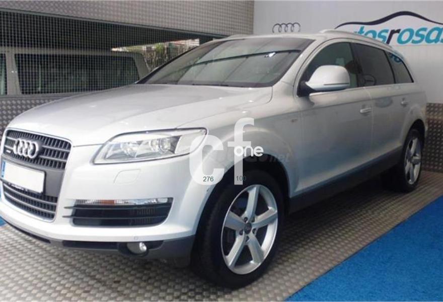AUDI Q7, Diesel, año 2008, 140000 kilómetros, color Gris / Plata , precio 19999€. Alcántara/Cuero Negro - Moqueta Fresco,Apoyabrazos central delantero confort,Paquete deportivo S line,Paquete diseño sport,Tapicería de Alcantara/cuero color negro S line,Sistema de navegación con DVD,Paquete exterior S line,Volante deportivo multifuncional tres radios en cuero perforado negro S line,Llantas de aleación 9Jx20 5 brazos con neumáticos 275/45 R20,Pintura metalizada,Plata Hielo (metalizado),Suspensión deportiva S line,Audi parking system advanced. Espectacula SUV, muy equipado.