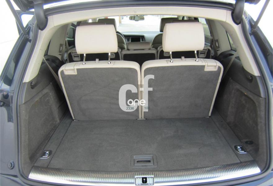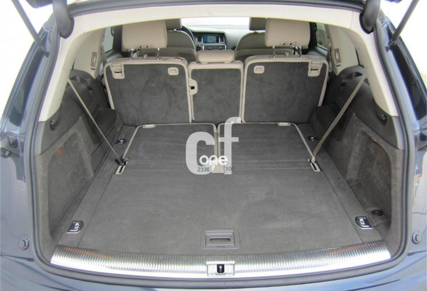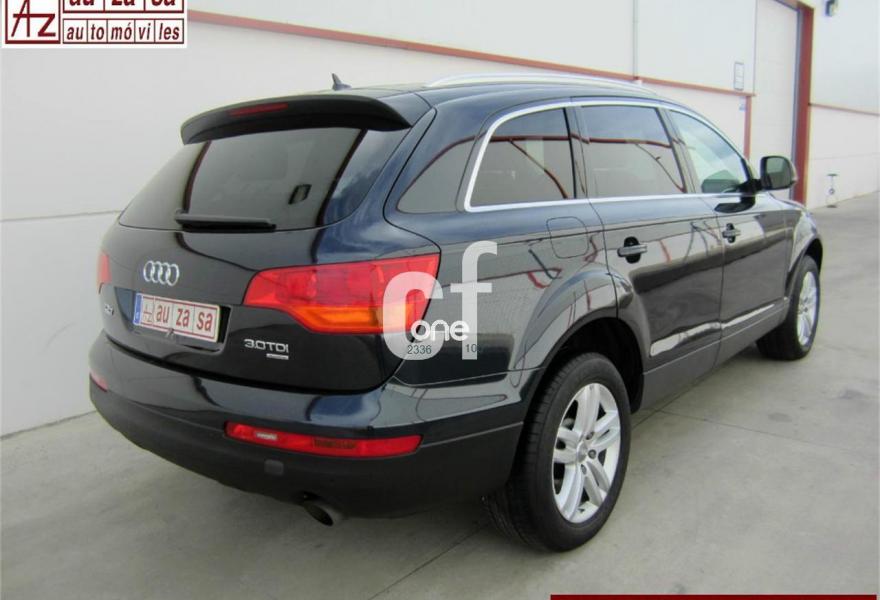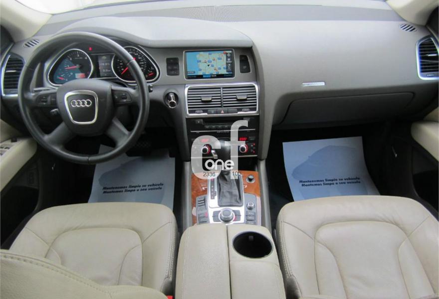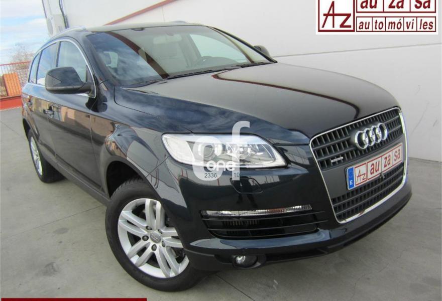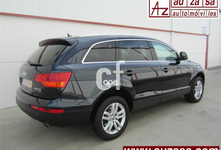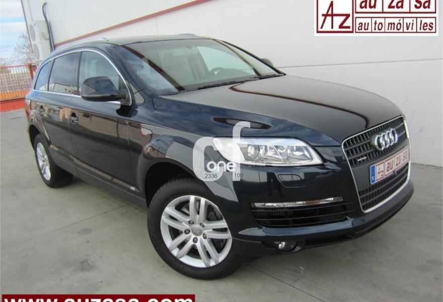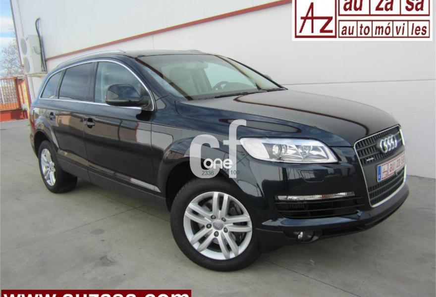 AUDI Q7, Diesel, año 2009, 121000 kilómetros, color Azul metalizado, precio 26200€. Cristales con laminado doble y tintado oscuro,Paquete técnico,3ª fila de asientos en cuero (7 plazas),Apoyabrazos central delantero de confort,Asientos delanteros con regulación eléctrica,Asientos delanteros con regulación lumbar eléctrica,Cuero Cricket Beige Cardamomo (salpicadero negro/verde borneo) - Moqueta Velours,Paquete cuero,Regulación longitudinal 2ª fila de asientos,Audi music interface,Equipo de sonido BOSE Surround,Intercambiador de CD para MMI basic plus,MMI,Preinstalación tfno móvil con bluetooth y apoyabrazos central confort,Radio Digital DAB,Sistema de navegación con DVD,Teléfono Audi Bluetooth GSM con auricular inalámbrico en el apoyabrazos central delantero de confort,Sistema información FIS con pantalla a color,Climatizador de confort de 4 zonas,Control automático de velocidad,Control de presión de neumáticos,Nevera,Retrovisor interior con regulación anti-deslumbramiento automática,Sistema de control por voz,Espejos exteriores retrovisores antideslumbrantes automáticos y plegables eléctricamente,Llantas de aleación 8,5J x 18 diseño de 5 radios dobles con neumáticos 255/55 R 18,Pintura metalizada,Sin inscripción trasera de modelo y cilindrada,Rueda deshinchada con compresor,Audi parking system plus,Fijación para asientos infantiles ISOFIX y desactivador del airbag del acompañante,Faros inteligentes "smart beam". COMO NUEVO - Nacional. Junio-2009