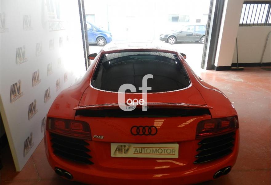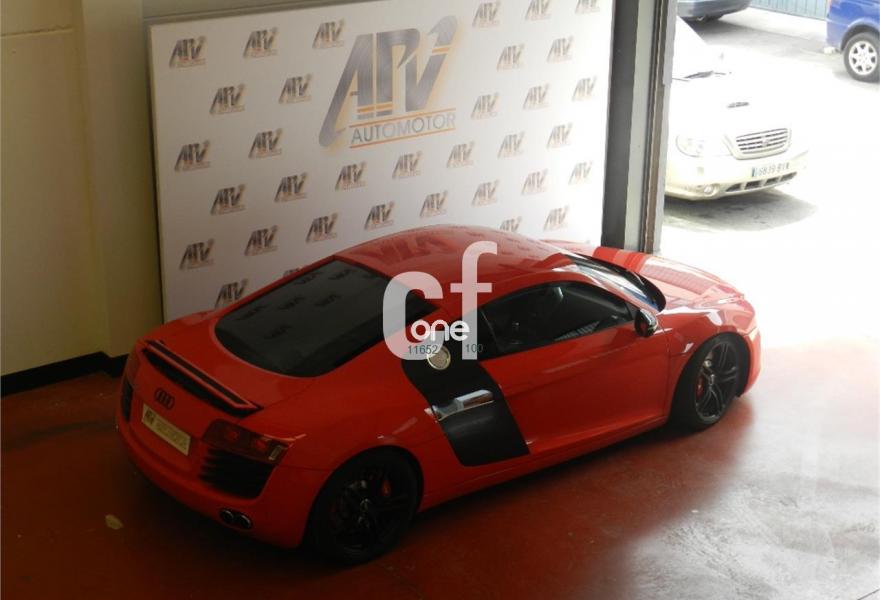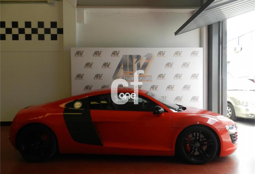 AUDI R8, Gasolina, año 2008, 60000 kilómetros, color Rojo metalizado, precio 54990€. Faros completos con tecnología LED,Cuero Completo Negro (Costuras Gris) - Techo Negro,Alfombrillas Audi exclusive,Asientos delanteros bucket,Interior Completo en cuero nappa,Pedales y apoyapiés en acero pulido,Intercambiador de CD,Preinstalación de teléfono móvil con kit manos libres (bluetooth),Sistema de navegación con DVD,Sistema de sonido Bang & Olufsen,Compartimento del motor en carbono Sigma,Consola central y panel de la radio en cuero napa fina Audi exclusive,Costuras en color de los asientos para interior completo en cuero nappa,Tapicería cuero Audi exclusive (paquete 2),Techo en cuero napa fina Audi exclusive,Monoposto en cuero Audi exclusive,Paquete carbono Audi exclusive,Paquete portaobjetos,Retrovisor interior antideslumbrante automático con brújula,Llantas de aleación 8,5Jx19 delante, 11Jx19 detrás, diseño 5 radios dobles pulido brillante con neumáticos 235/35 delante, 305/30 R19 detrás,Pintura metalizada,Rojo Brillante,Audi parking system delantero y trasero Advanced. En venta Audi R8 4.2 FSI V8 Quattro R Tronic 60.000km 420cv interior en cuero negro, automático R tronic, exterior Rojo Rosso y negro, llanta 19, SUSPENSIÓN MAGNÉTICA Magnetic Ride, IMPRESCINDIBLE EN ESTE TIPO DE VEHÍCULO, equipo de sonido Bang & Olufsen, pomo de aluminio, tarjeta de memoria, pedales en aluminio, climatizador, 4 airbags, Revisiones Anuales Audi al día, faros de xenon plus, sistema PDC delantero y trasero, navegación MMI plus, asientos eléctricos y calefactables, Parktronic delantero y trasero, etc. Garantía de 12 meses, financiación en 24 horas, levas en volante, entrega inmediata. Precio final traspasado llaves en mano. No dejes de venir a vernos en APV Automotor..