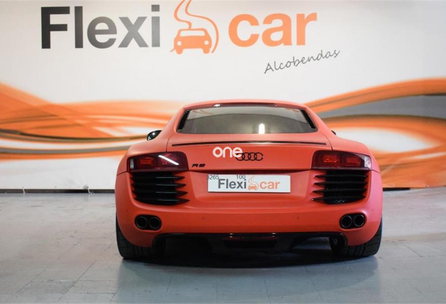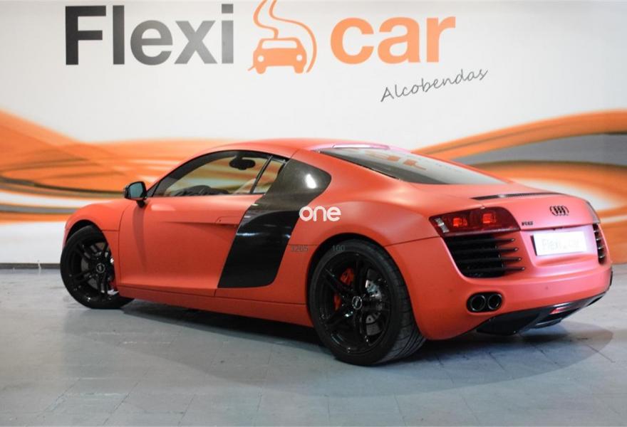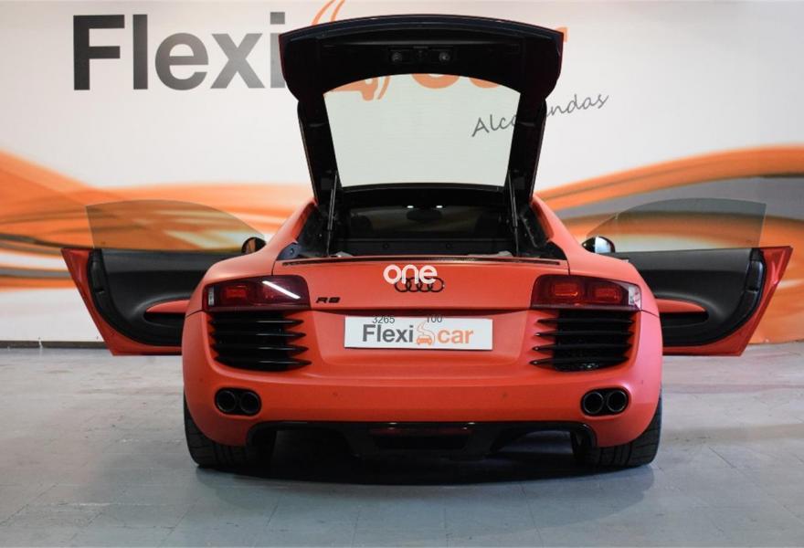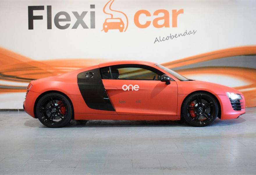 AUDI R8, Gasolina, año 2008, 97000 kilómetros, color Rojo metalizado, precio 51000€. Faros completos con tecnología LED,Alfombrillas Audi exclusive,Audi exclusive line,Cuero Completo Rojo (Costuras Rojo) - Techo Negro,Pedales y apoyapiés en acero pulido,Intercambiador de CD,Sistema de sonido Bang & Olufsen,Compartimento del motor en carbono Sigma,Paquete portaobjetos,Pintura personalizada Audi exclusive,Frenos cerámicos,Audi Magnetic Ride. FLEXICAR: Más de 1500 coches en stock.